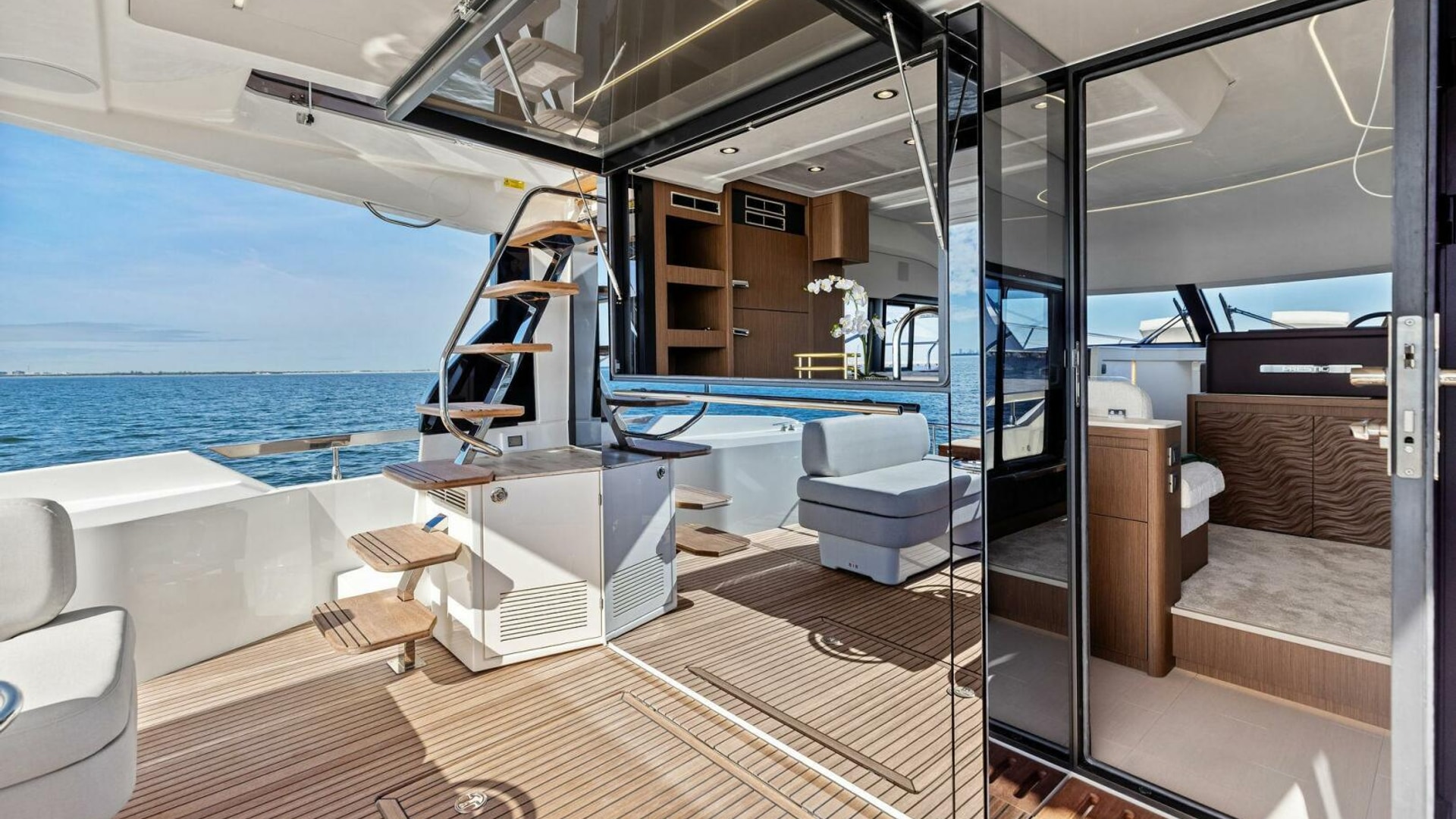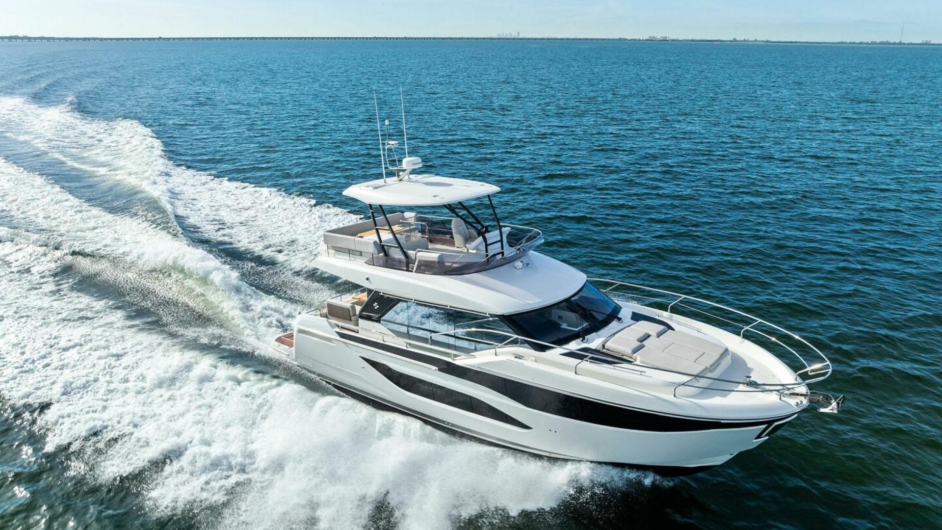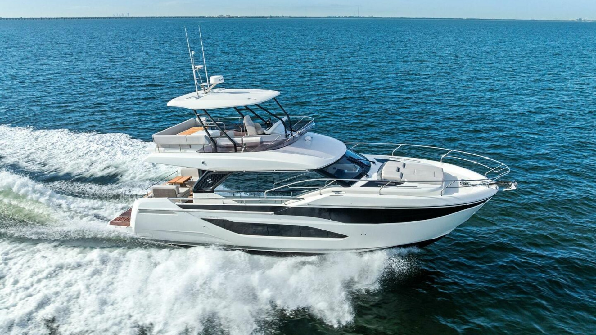 2026 49 Prestige F4.9 Motor Yacht for sale (PR26WM-057). The 2026 Prestige F4.9 Motor Yacht marks the debut of a new generation in the F-Line series, showcasing innovative design and exquisite craftsmanship. Thoughtfully crafted with luxurious materials such as natural stone, sculpted woodwork, and wicker, the F4.9 embodies sophistication at every turn.