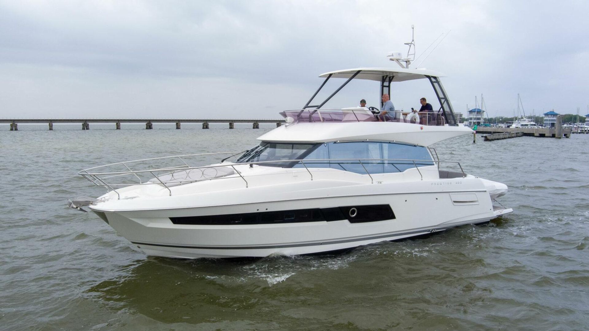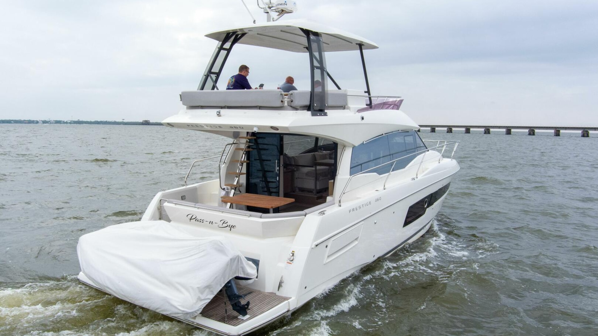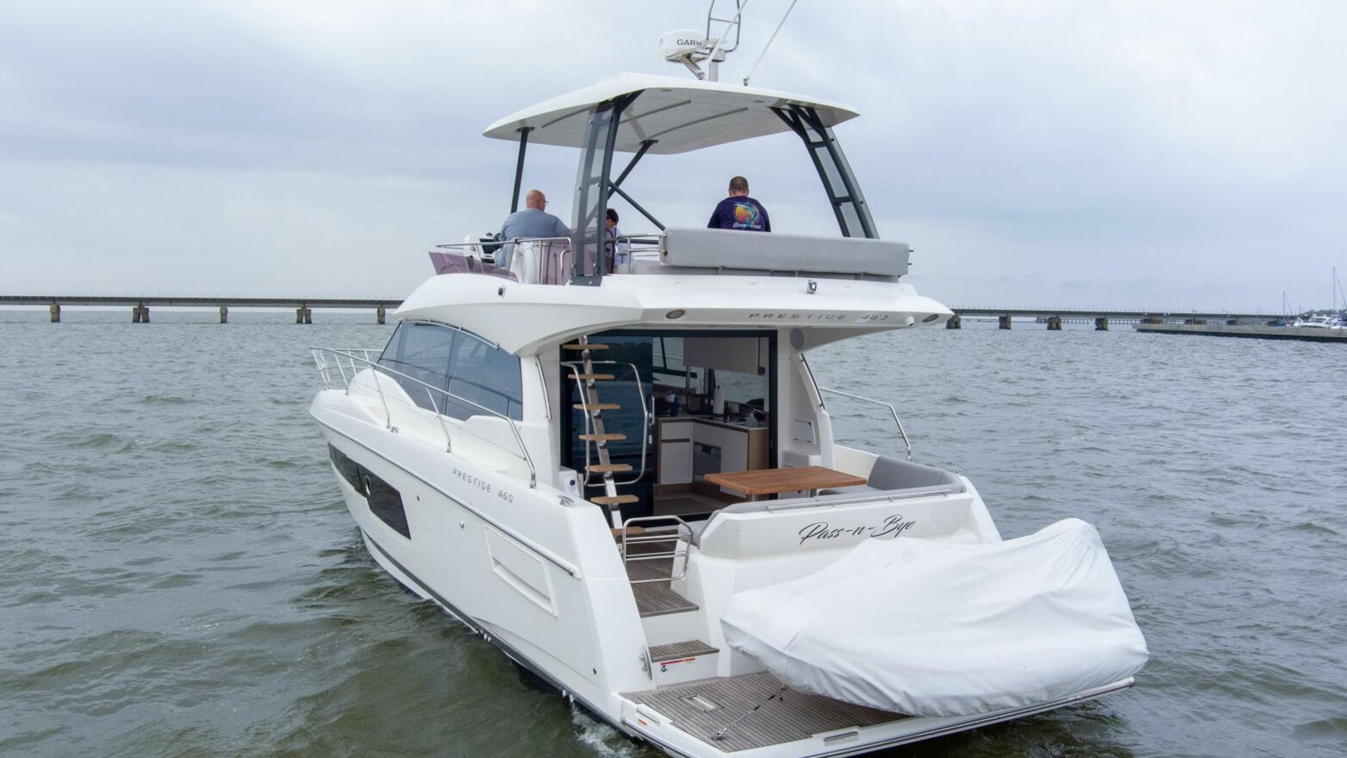 Experience unparalleled luxury on the water with Pass N Bye, an exquisitely equipped and meticulously maintained Prestige 460 Fly. This stunning vessel boasts a range of premium features designed for comfort, safety, and ease of navigation.