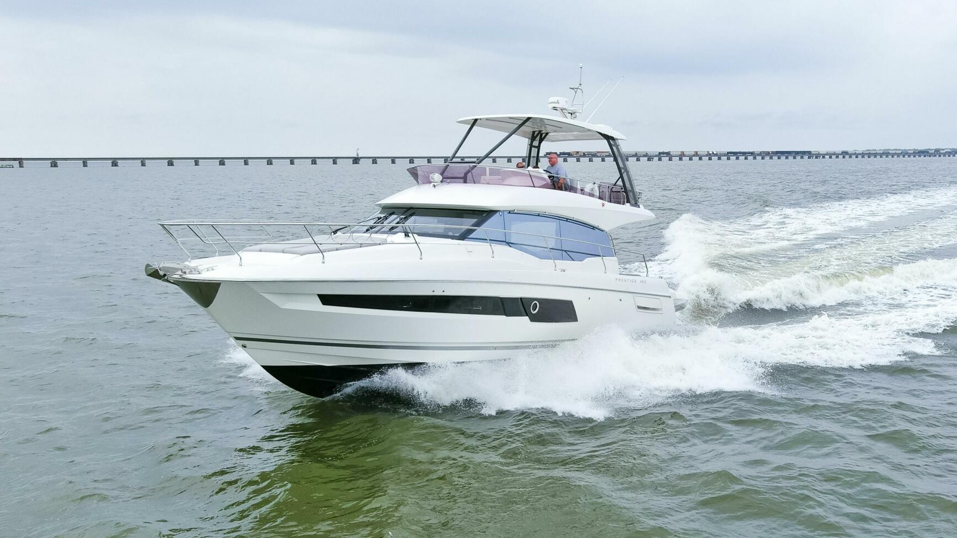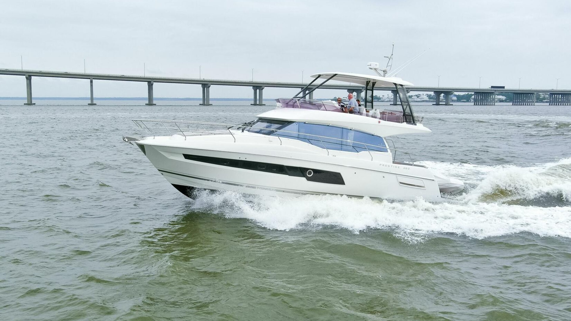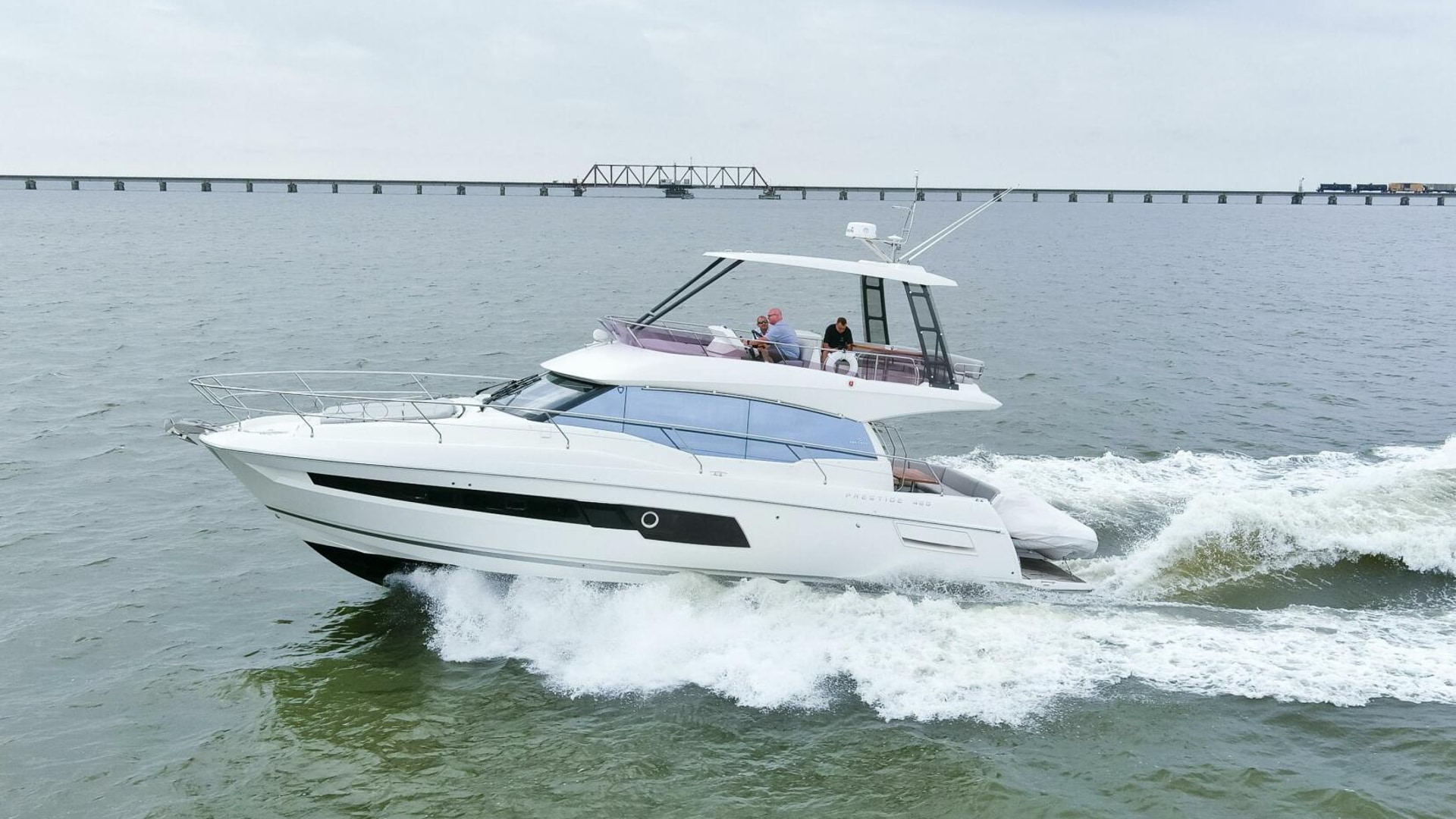 Experience unparalleled luxury on the water with Pass N Bye, an exquisitely equipped and meticulously maintained Prestige 460 Fly. This stunning vessel boasts a range of premium features designed for comfort, safety, and ease of navigation.