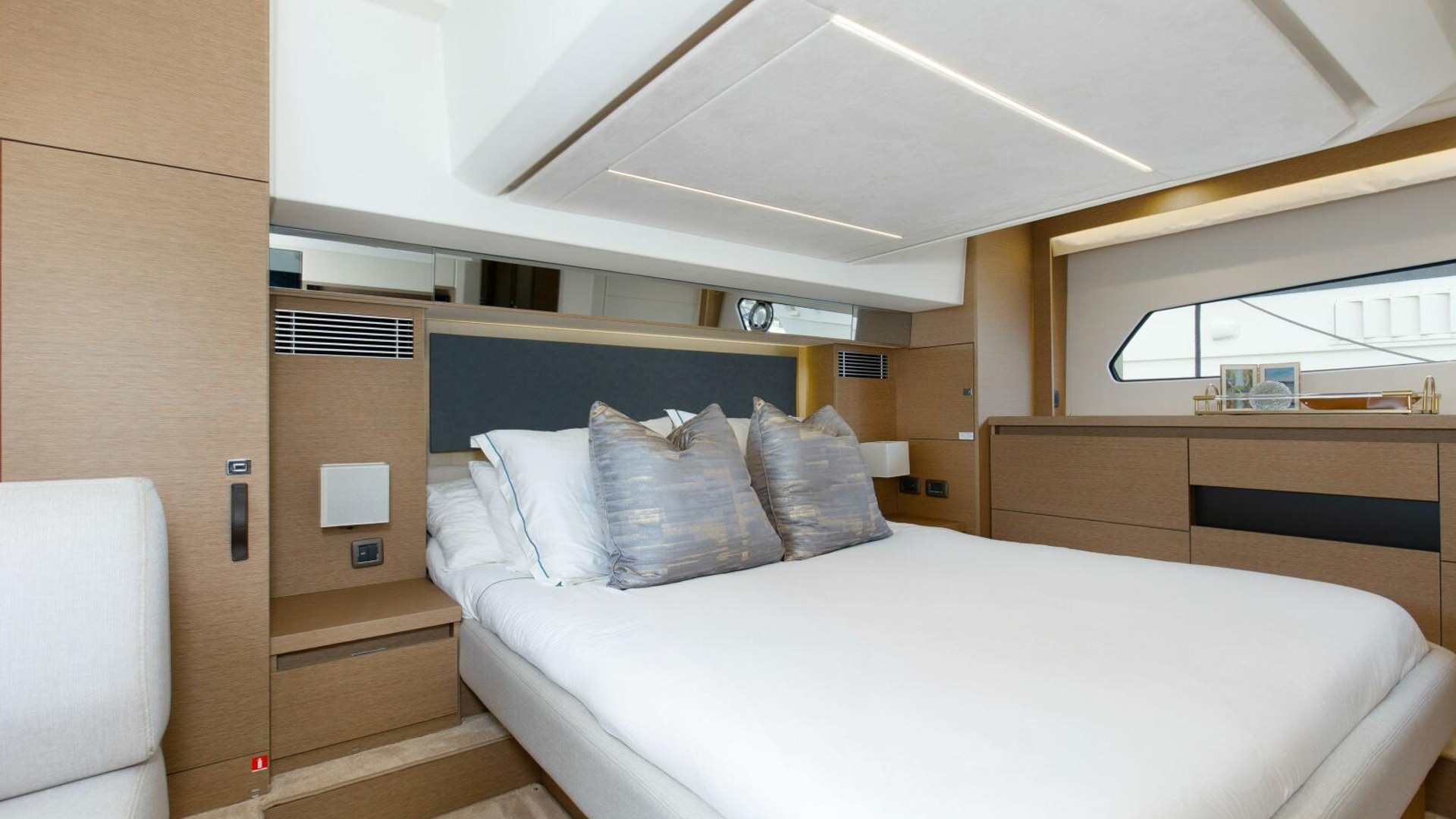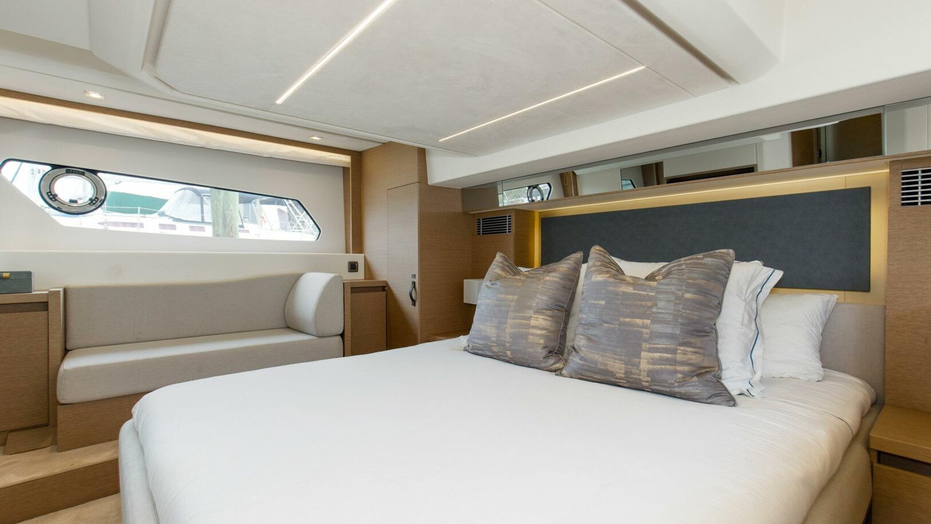 This season's must-have model, the PRESTIGE 460 integrates the flybridge range. The PRESTIGE 460 reinvents life on board on 46' models. Outside, the PRESTIGE 460 adopts the signature of the latest Prestige and displays the immense continuous and enlarged hull glazing. Easy to maneuver, this new model benefits from the dual VOLVO IPS 600 engines, with indisputable performance. On board, everything is optimized to offer unequaled comfort and space. Combining the design of Garroni Design and signed JP Concepts, this Flybridge meets the brand's latest requirements and benefits from the Prestige Yachts DNA.