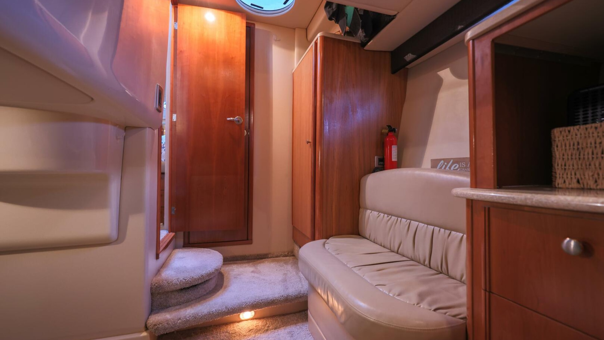 - Split Design with Shower to Starboard & Head & Vanity to Port