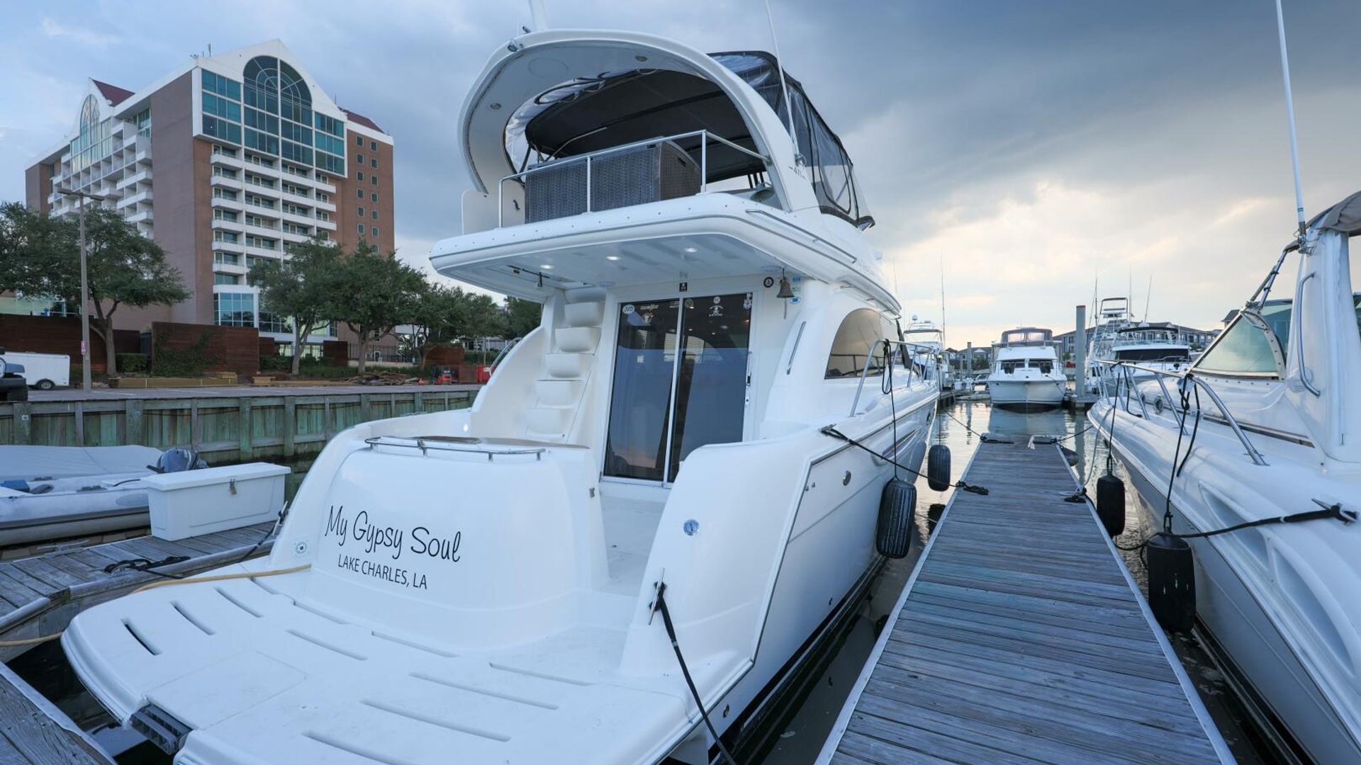 “My Gypsy Soul” has had loving owners for the past 9 years. She did sustain an under water collision which damaged the running gear. All was preplaced properly with receipts by qualified vendors. Also this boat had termites in stringers. The boat was fumigated, inspected and all repairs done accordingly. Please feel free to reach out to listing broker for all details and information.