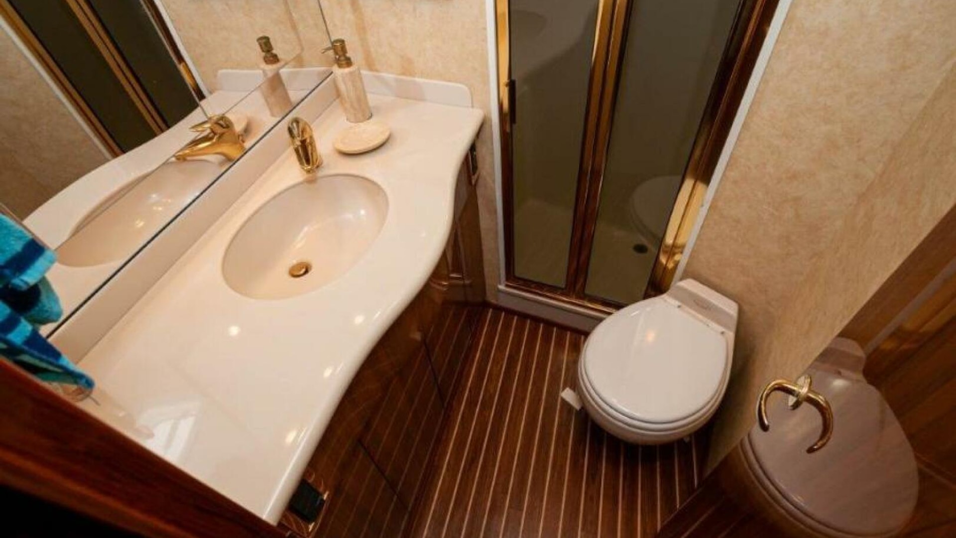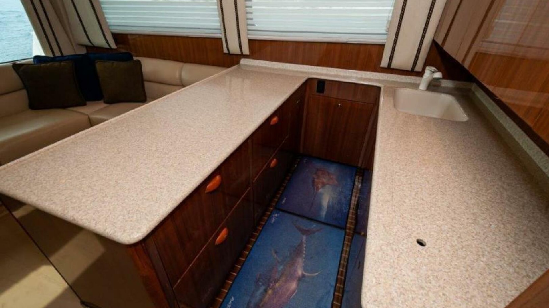 - Teak on aft-facing galley island