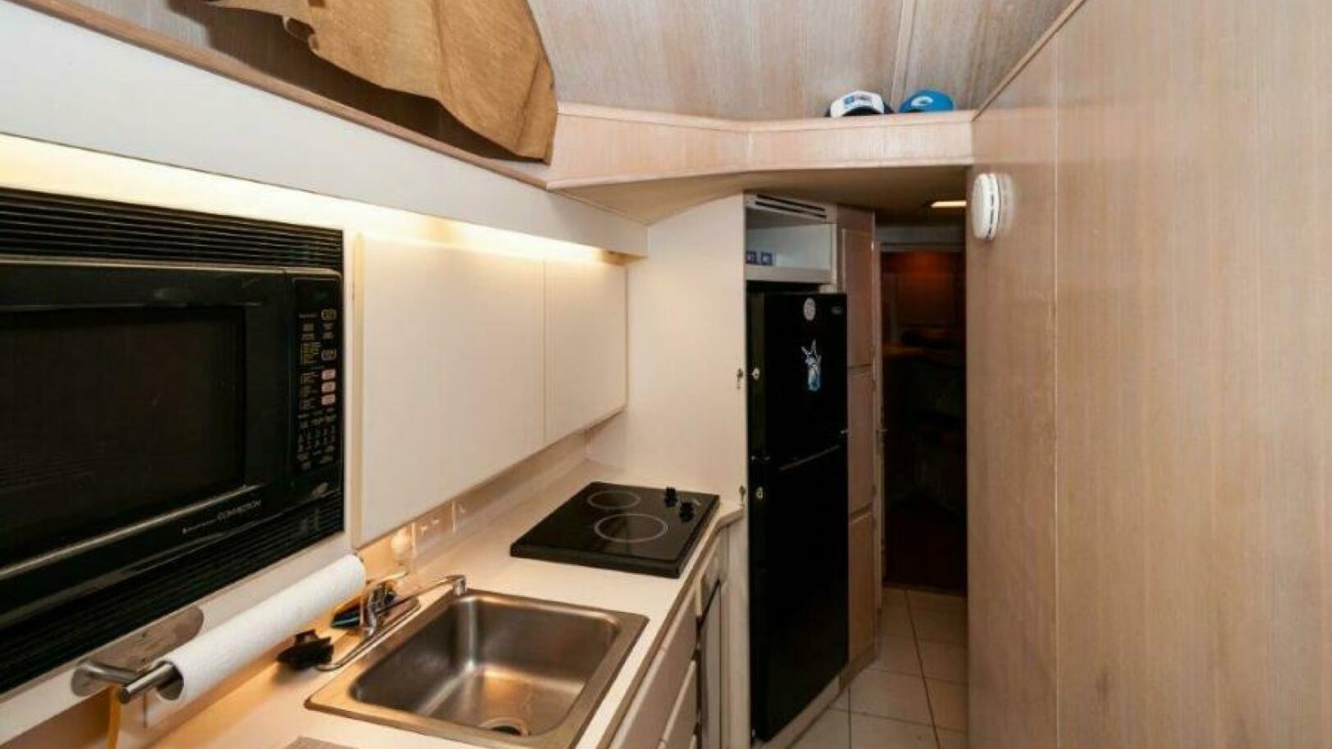 - Cockpit freezer to port (nonfunctional but holds ice for days)