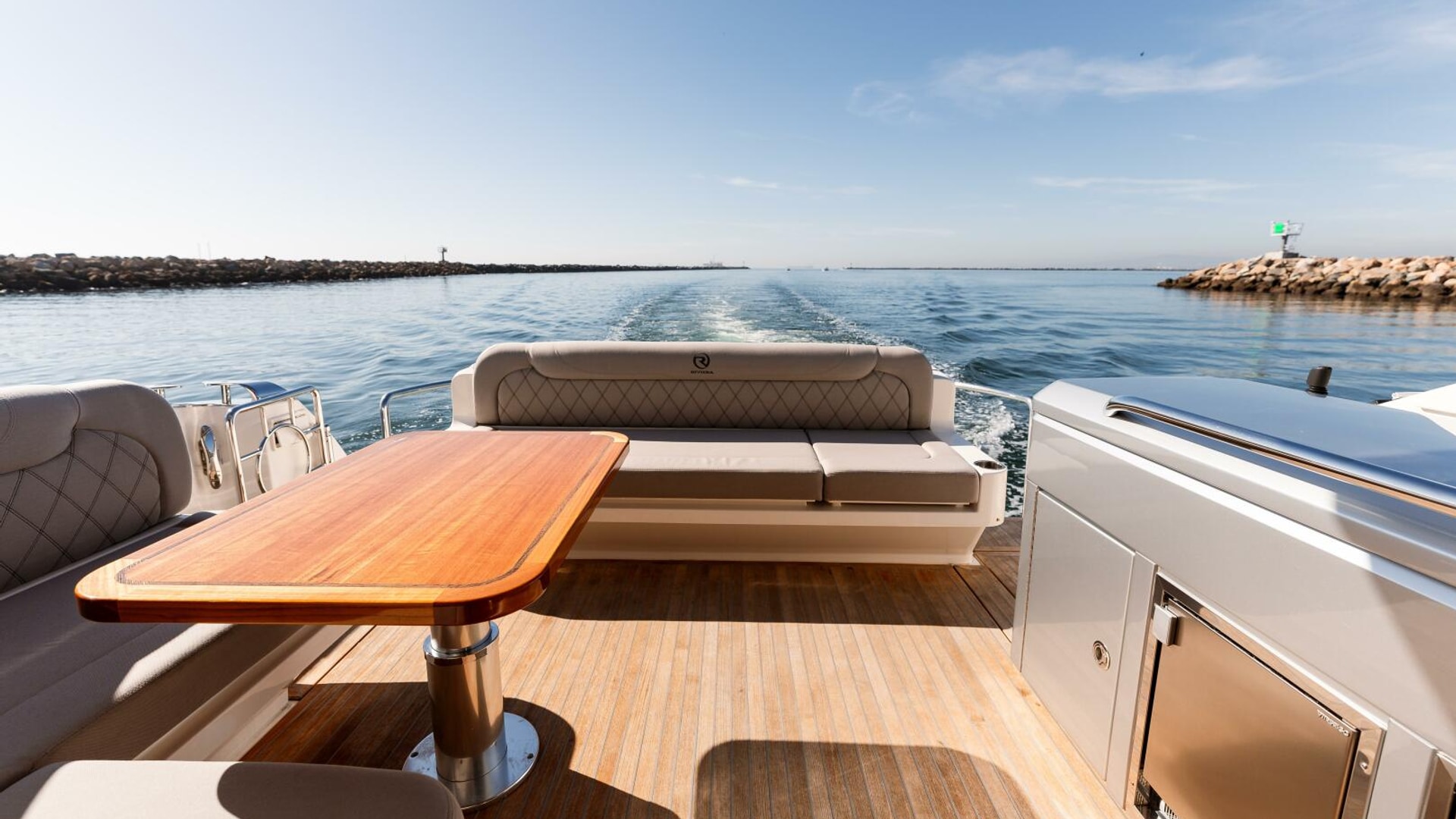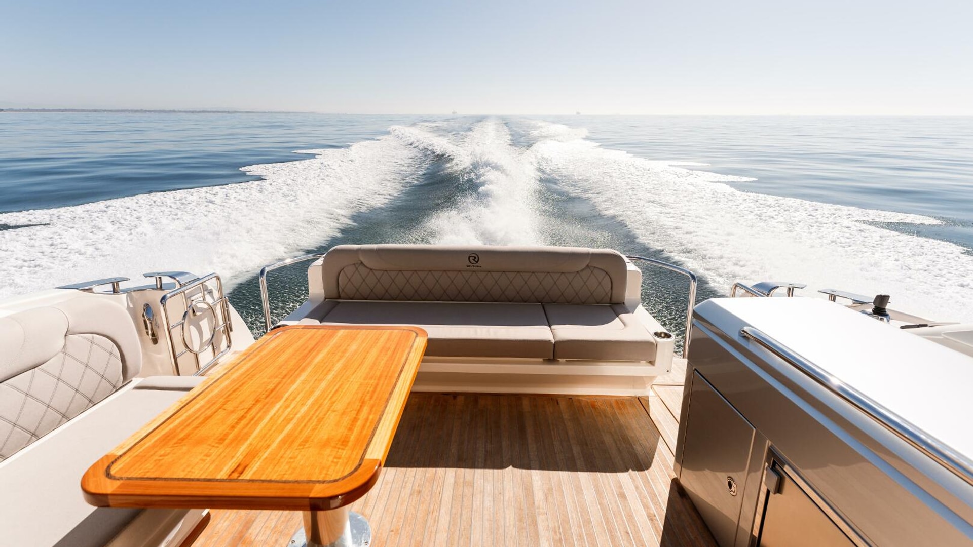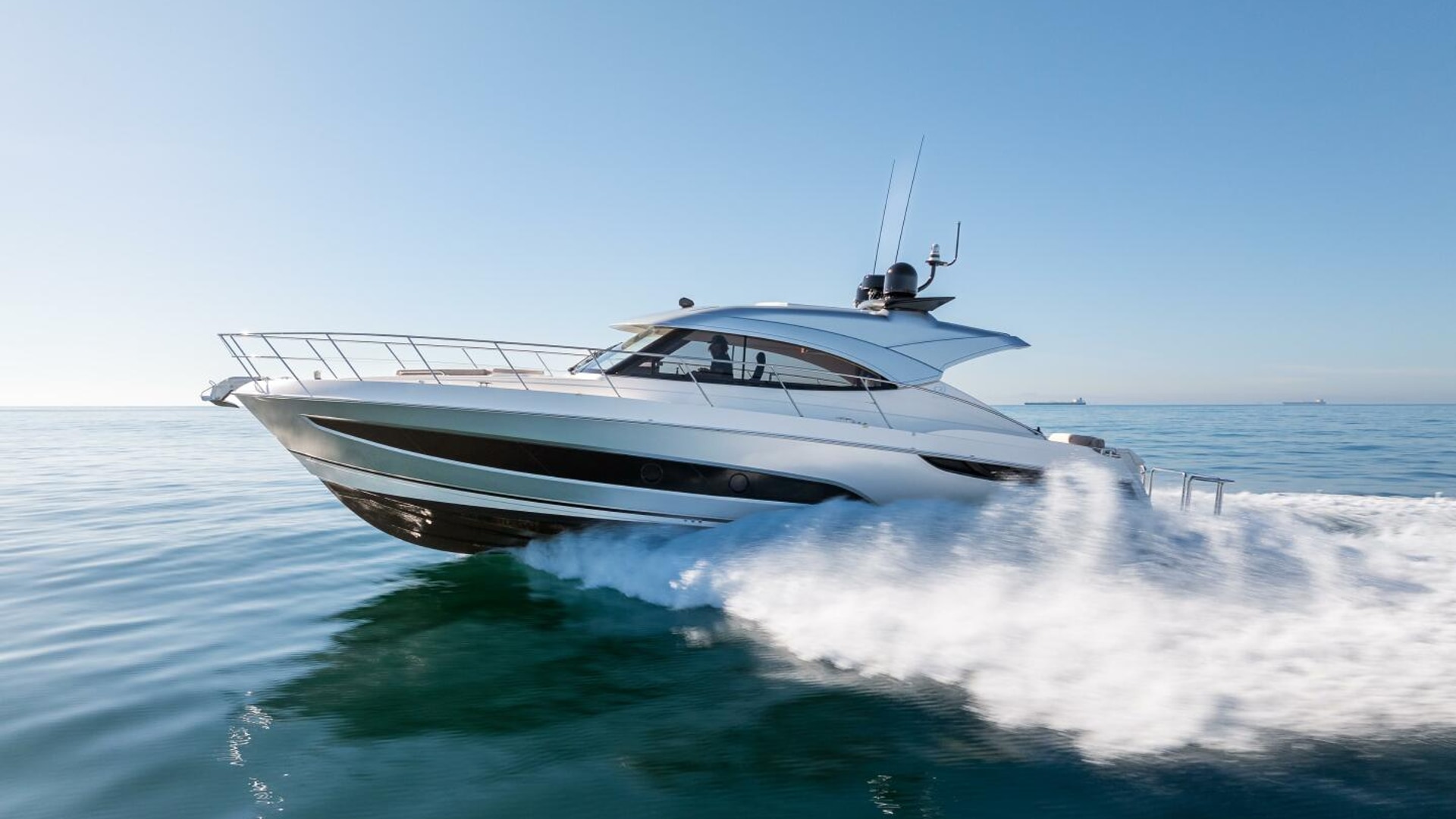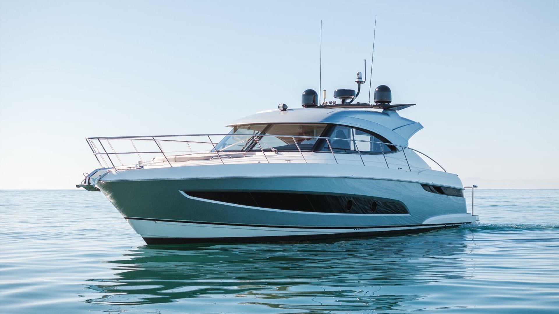 Imagine. Being spirited away. Surrounded by the handcrafted luxury for which Riviera is famous. Large flowing indoor-outdoor spaces, thoughtful design touches, a sense of sophisticated modern living. The Riviera 4800 is pure luxury, above and below. Large and welcoming, the saloon surrounds you with sweeping tinted glass windows and a rich level of creature comforts. In the accommodation deck, you’ll discover two magnificent staterooms and two designer bathrooms, each filled with natural light and handcrafted luxury. Boating has never been easier with a tender garage and hydraulic swim platform that can be partly submerged to become a beach - perfect for water sports and children. Retreat day or night to the foredeck sun pad lounge with adjustable backrest and folding bimini cover. Cruise your favorite waterways or tame the ocean with Riviera’s proven blue-water hull design. Propulsion: twin Volvo Penta D8 IPS 800 turbo diesels delivering 600 hp (441 kW) each.