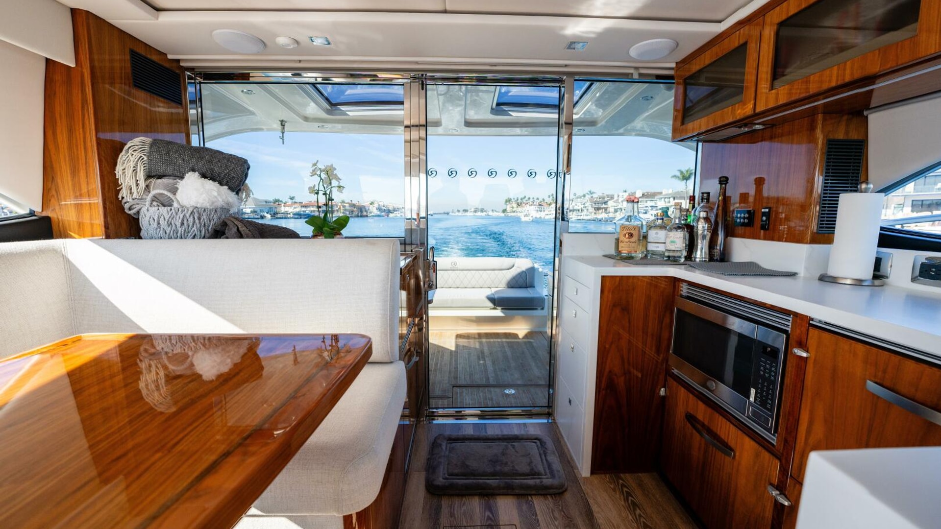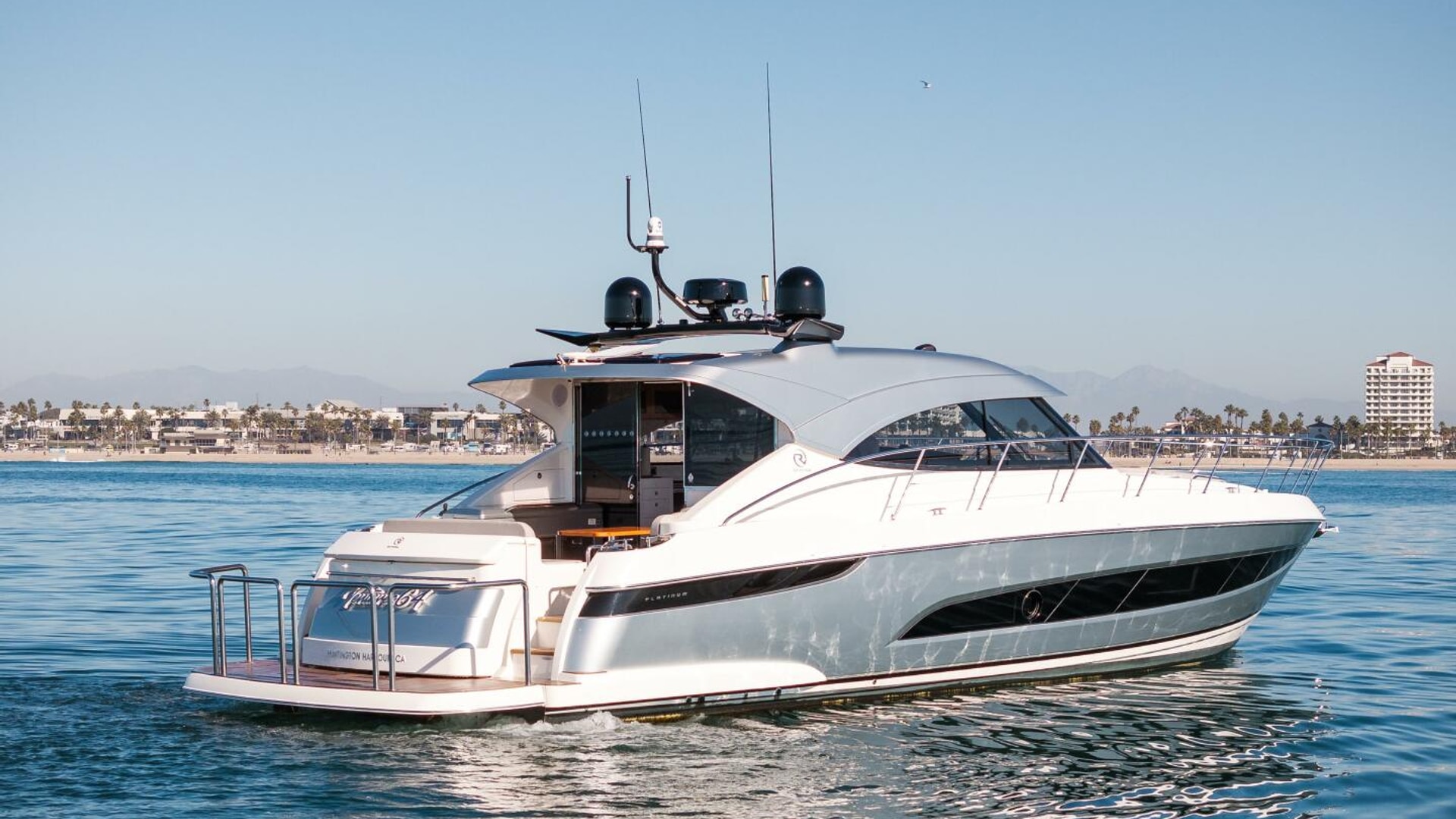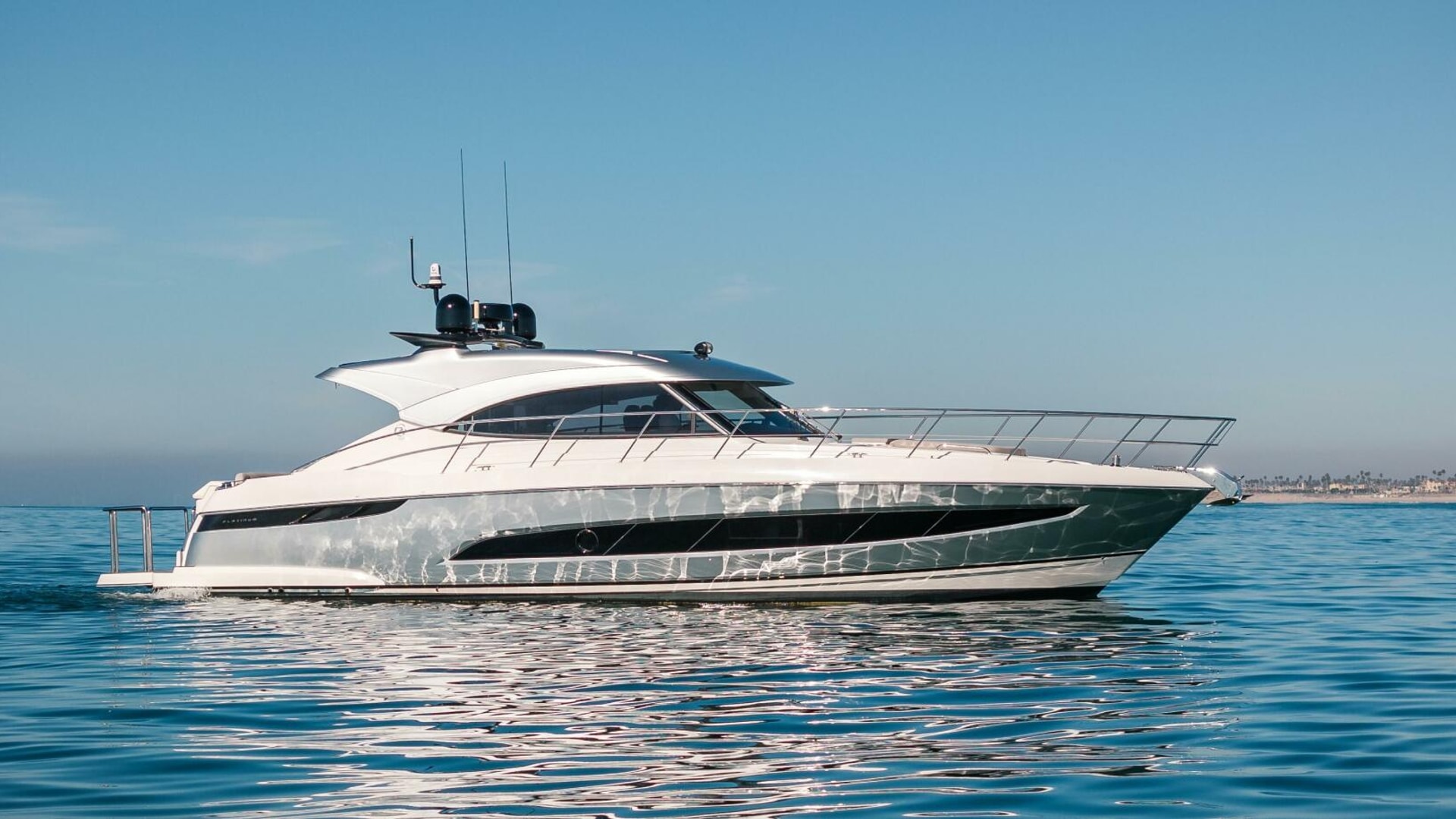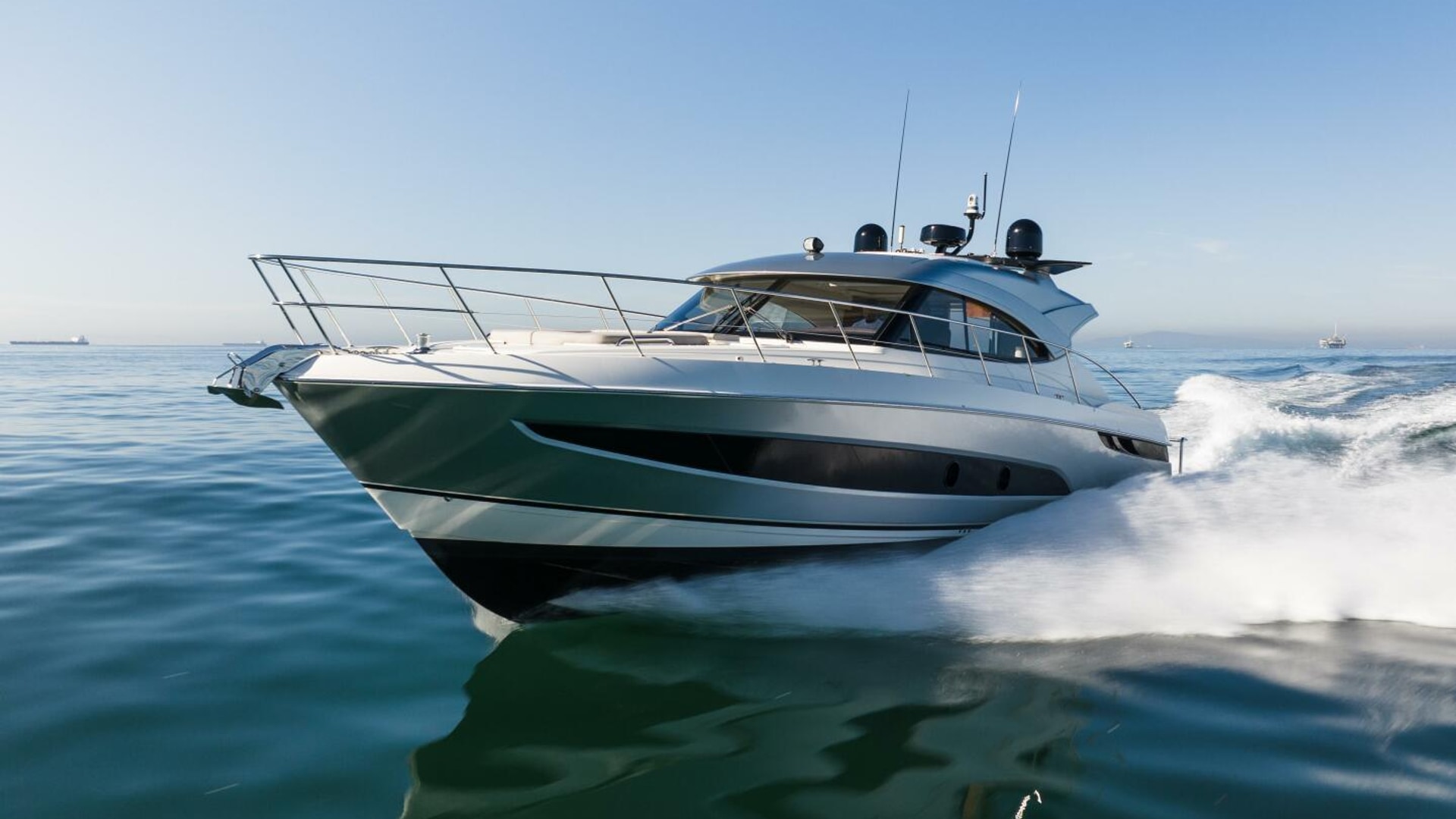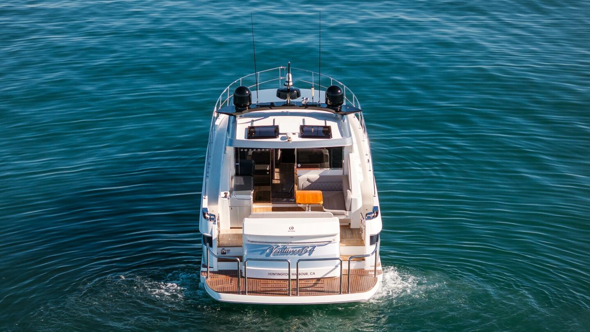 Imagine. Being spirited away. Surrounded by the handcrafted luxury for which Riviera is famous. Large flowing indoor-outdoor spaces, thoughtful design touches, a sense of sophisticated modern living. The Riviera 4800 is pure luxury, above and below. Large and welcoming, the saloon surrounds you with sweeping tinted glass windows and a rich level of creature comforts. In the accommodation deck, you’ll discover two magnificent staterooms and two designer bathrooms, each filled with natural light and handcrafted luxury. Boating has never been easier with a tender garage and hydraulic swim platform that can be partly submerged to become a beach - perfect for water sports and children. Retreat day or night to the foredeck sun pad lounge with adjustable backrest and folding bimini cover. Cruise your favorite waterways or tame the ocean with Riviera’s proven blue-water hull design. Propulsion: twin Volvo Penta D8 IPS 800 turbo diesels delivering 600 hp (441 kW) each.