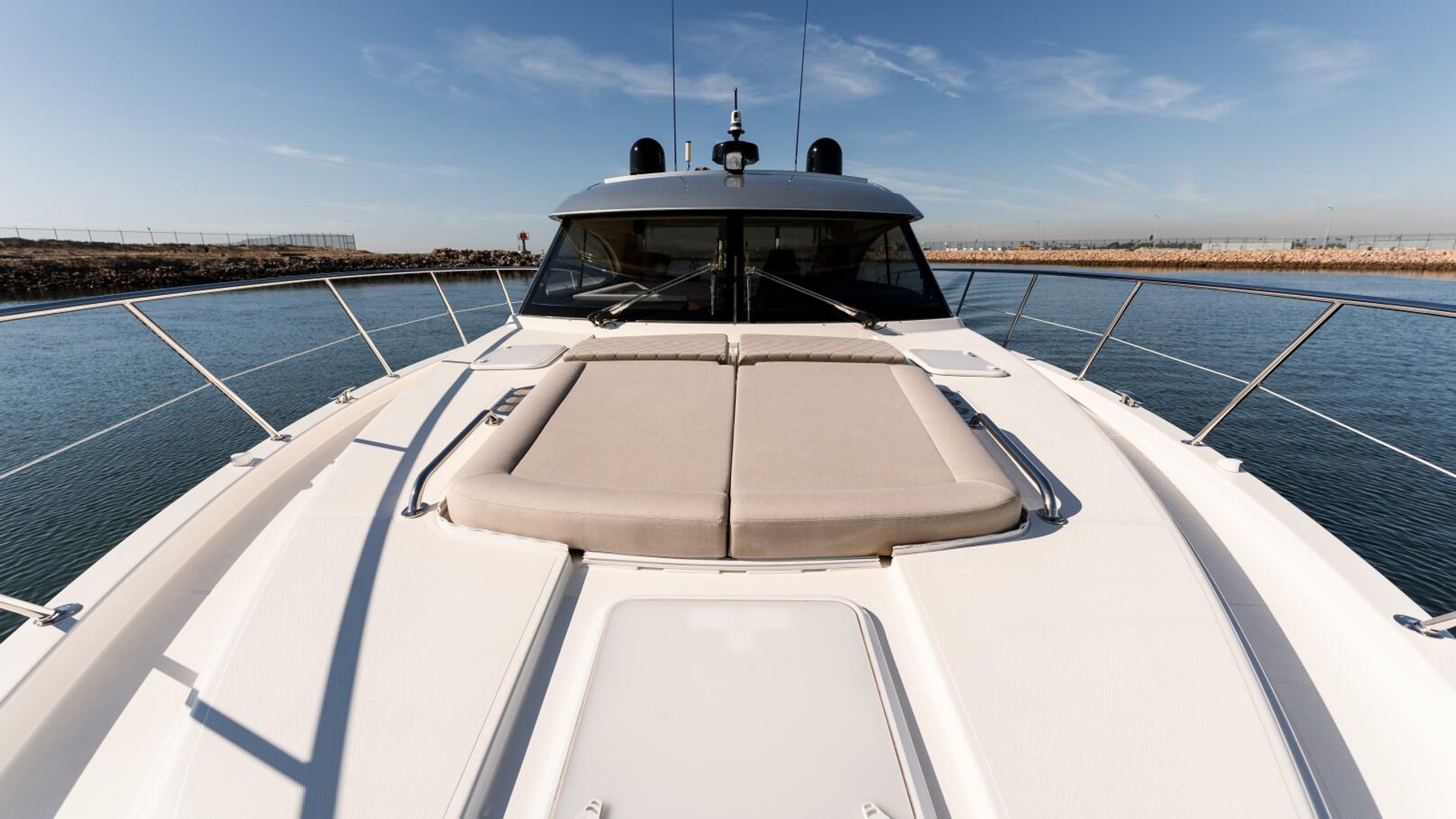 A sunlover haven and functional working area all at once. The foredeck projects a handsome profile and serves many purposes, both practical and lifestyle-related. Up here you store vital functional gear like ropes and anchoring equipment. Rest assured there is also ample room for AM/FM stereos with bluetooth and USB ports, fold away sun awning and other essentials of Series II living. Accessing the fabulous foredeck is a walk in the park, easy and stress free for all thanks to wide walk-around side decks, raised bulwarks and marine grade 316 stainless steel handrails. Front and center is a double sun lounge with plump upholstery, adjustable backrests, sun awning.