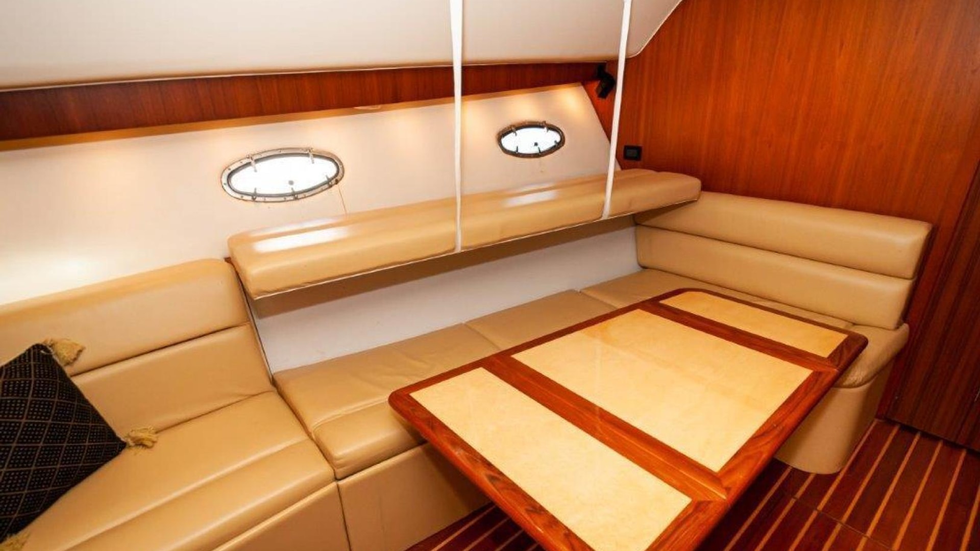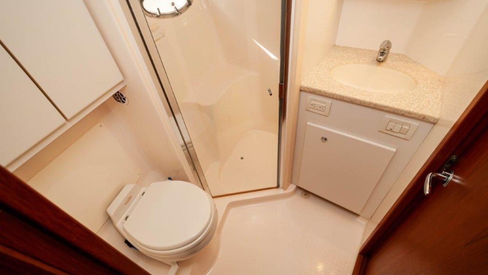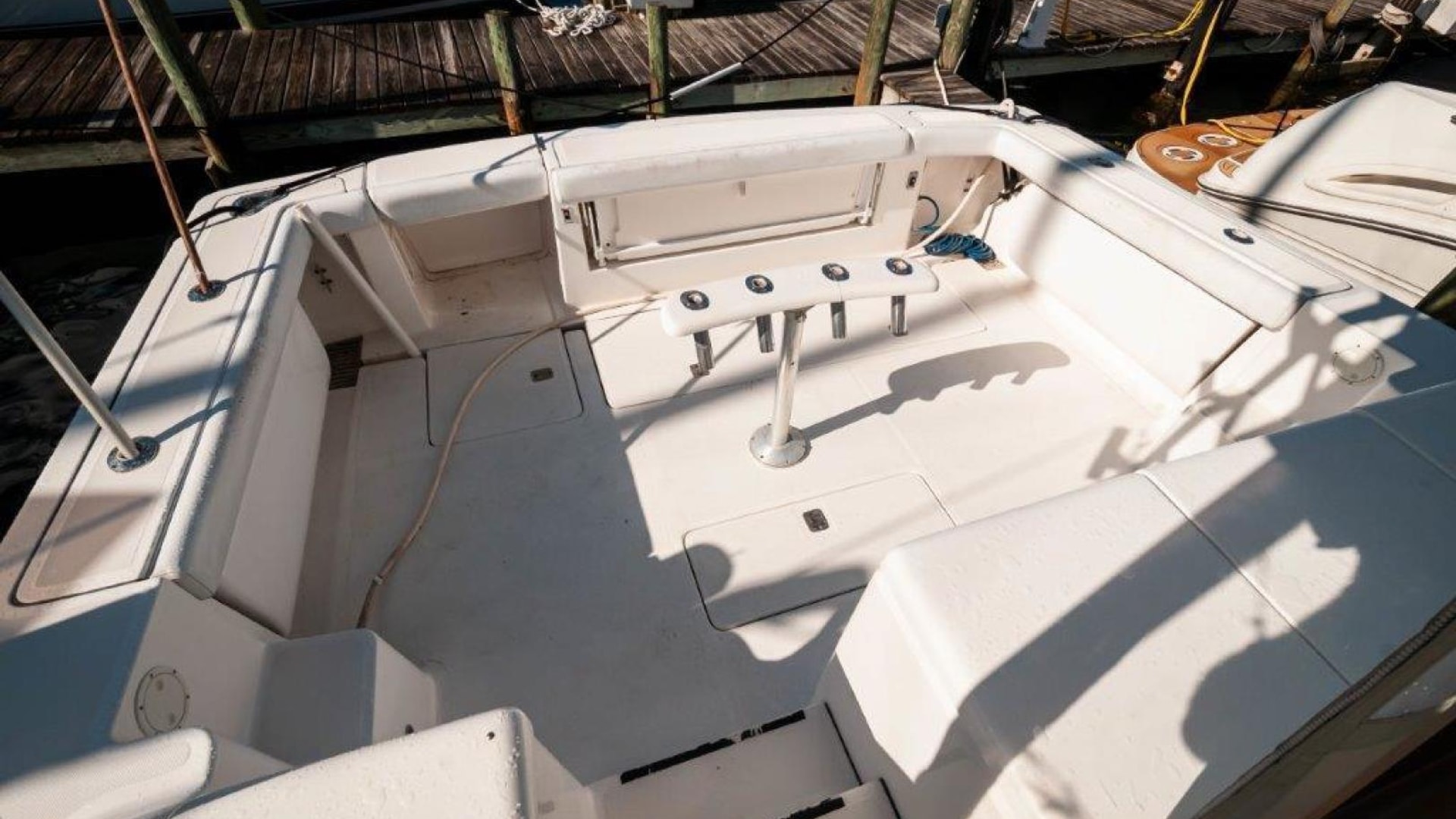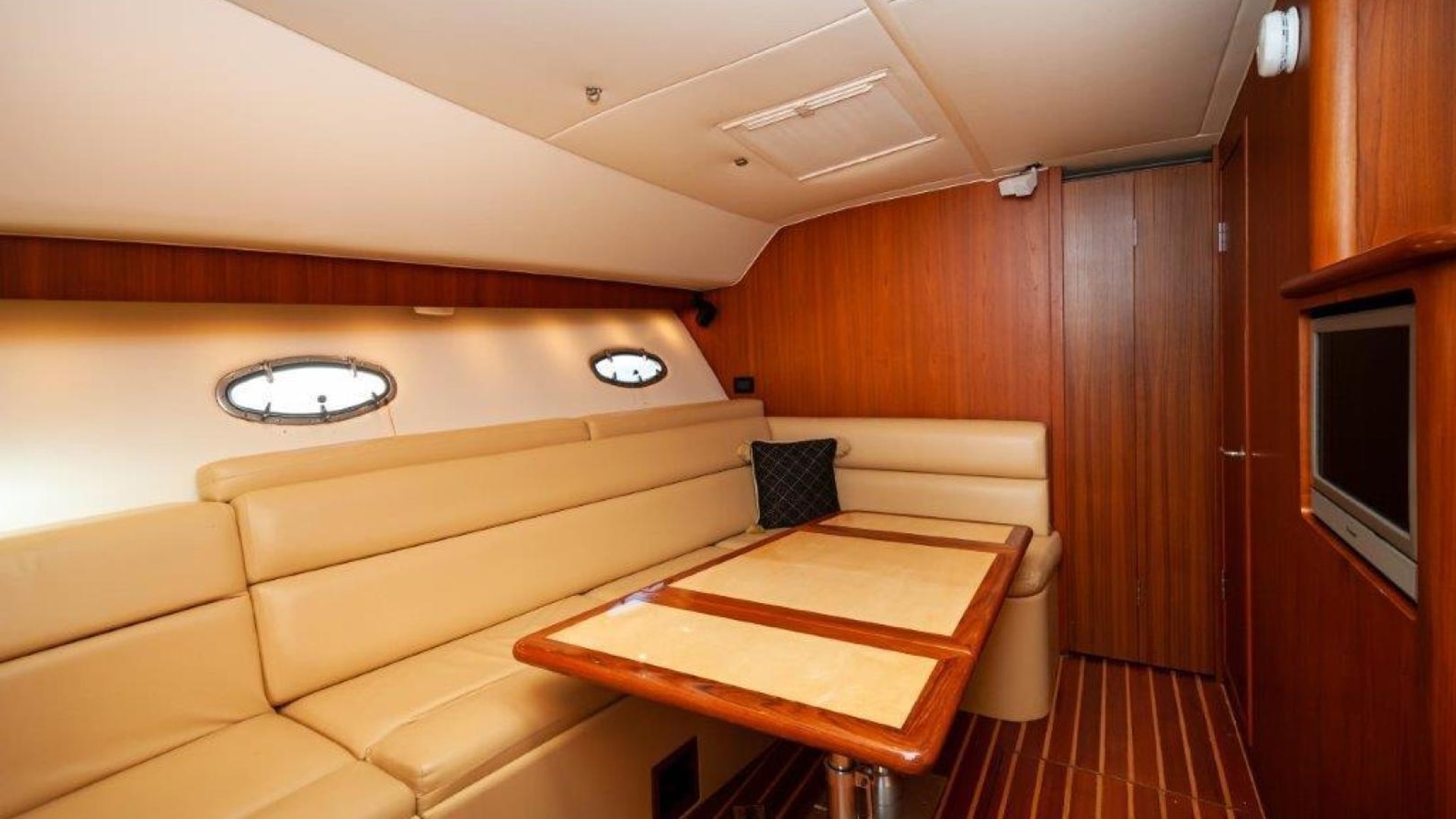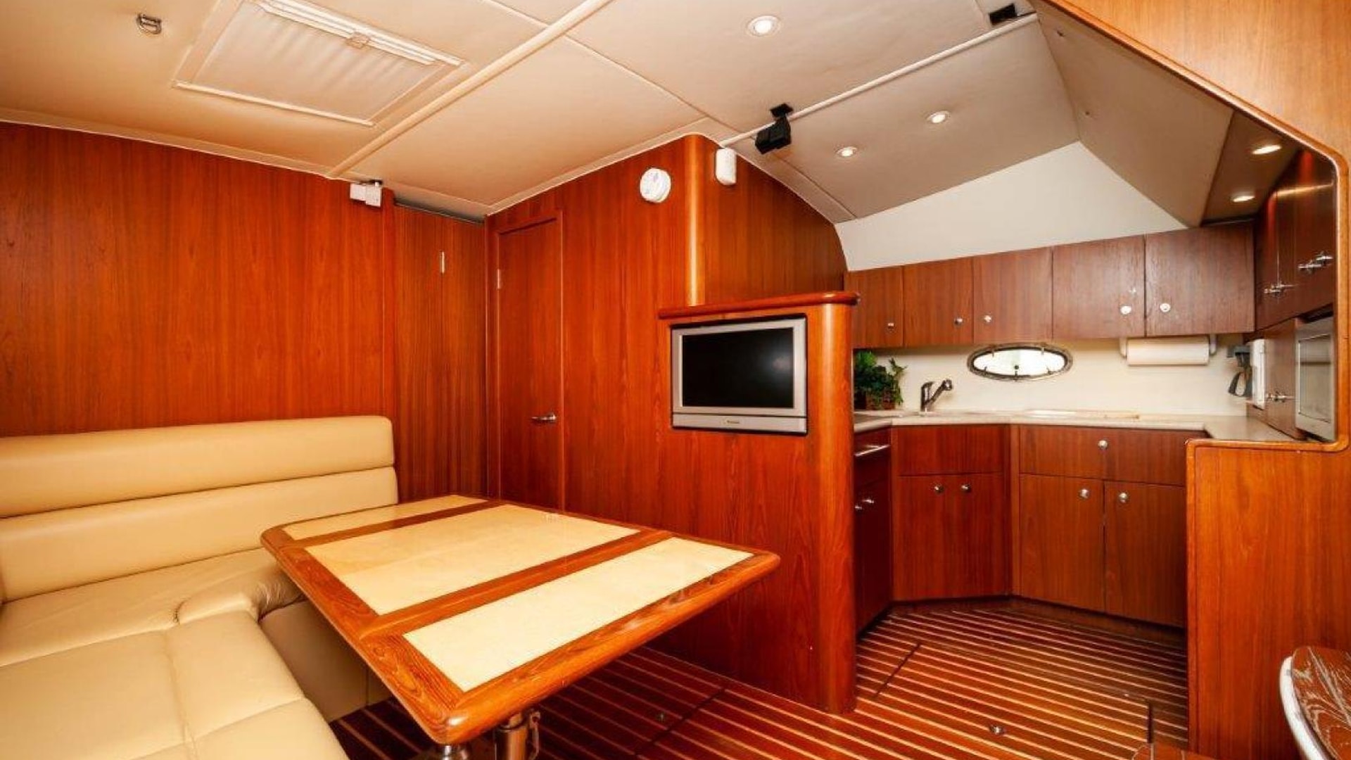 - Upper cockpit wet bar with sink, cutting and insulated cooler aft