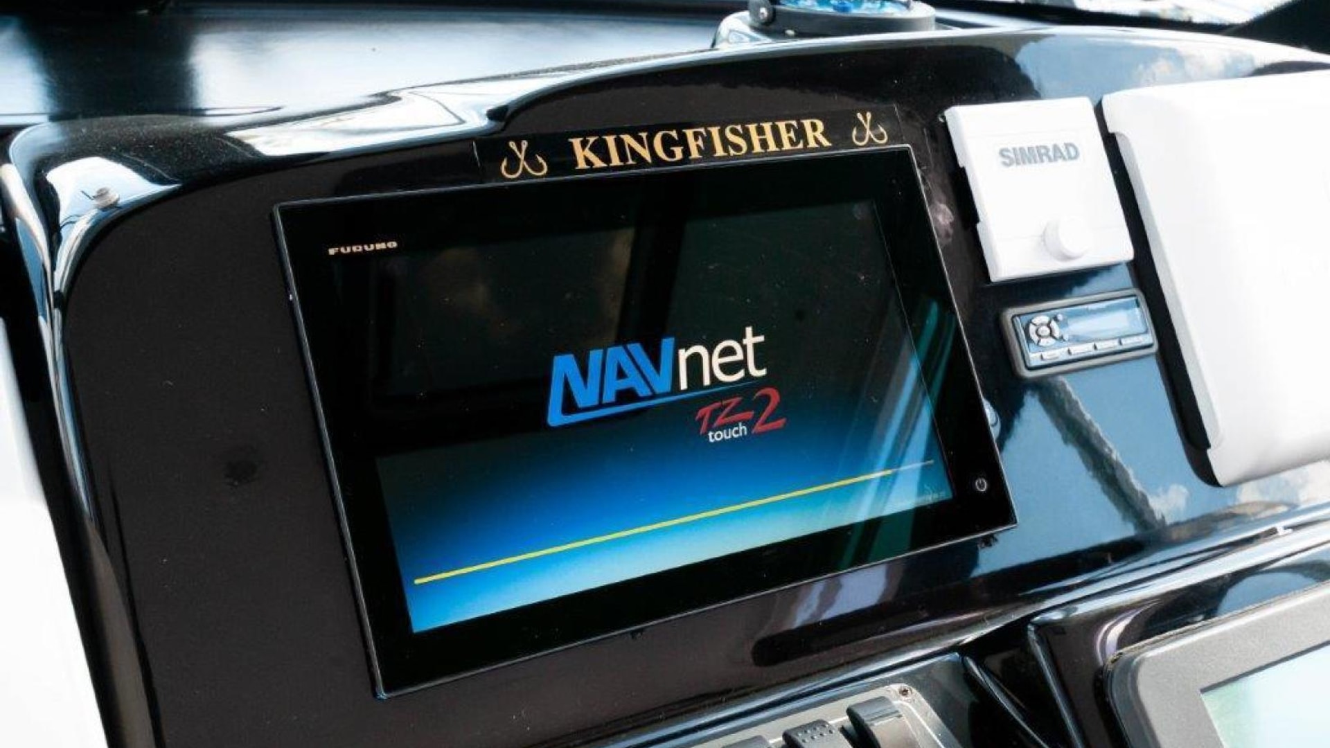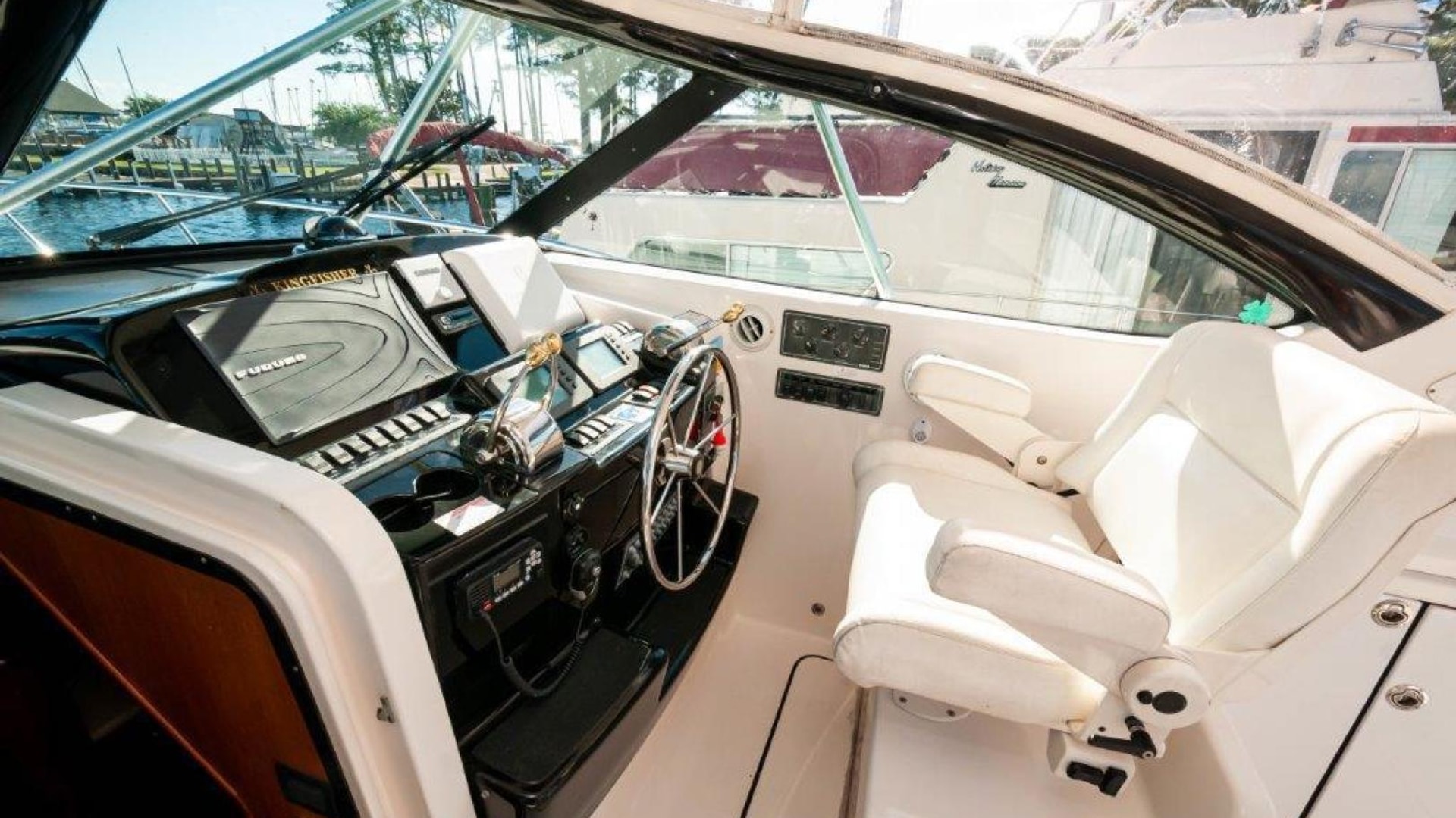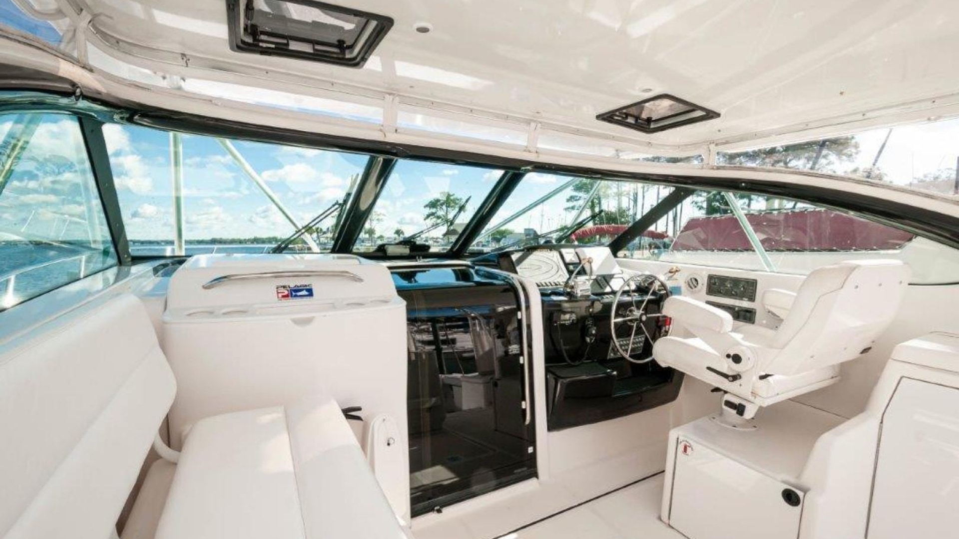 - Portside navigation center including covered chart flat & drink holders