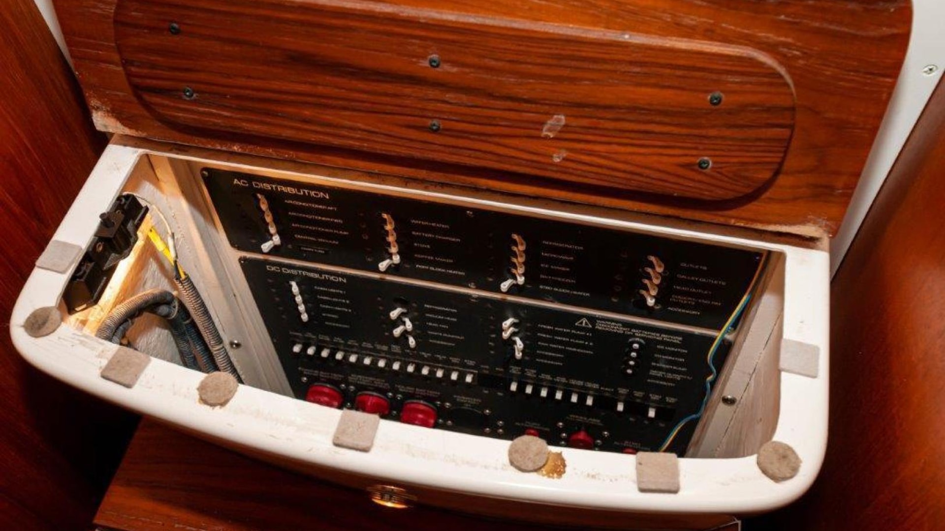 - Tiara custom 12V DC and 120V/240V AC electrical system with master distribution panel under the companionway steps