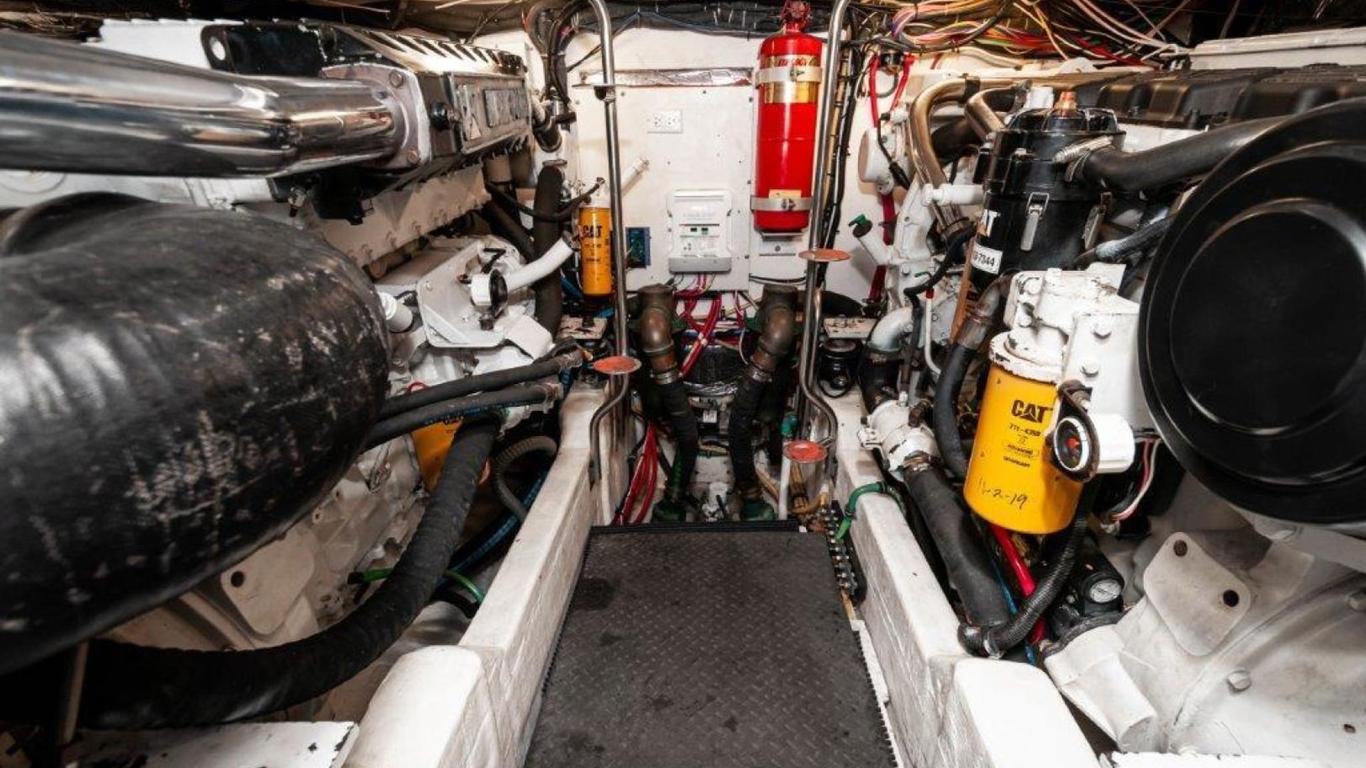 - Engine room acoustical insulation with overhead fiberglass liner and 12V fluorescent lighting