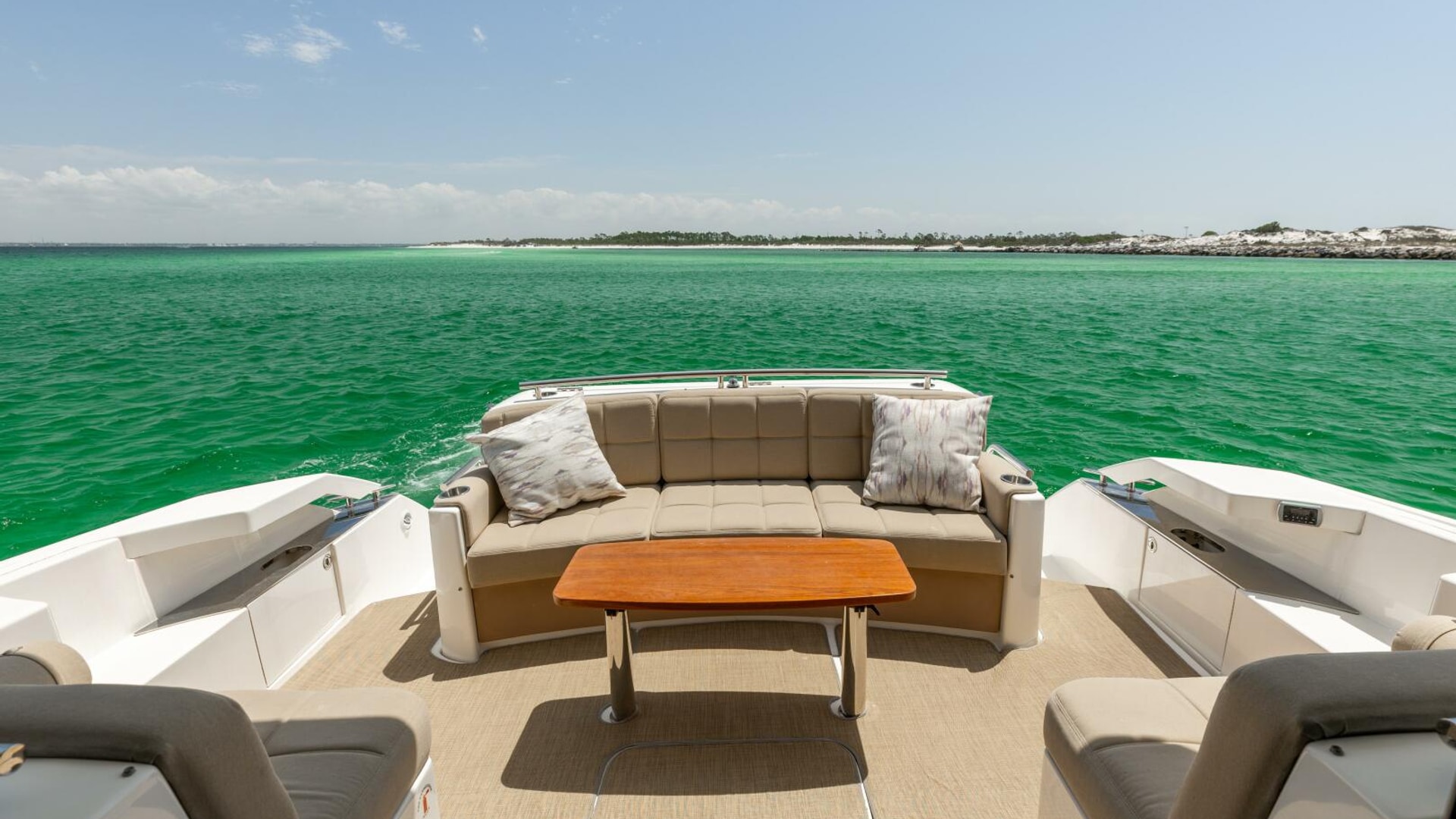 - One (1) Bomar® extruded aluminum opening forward deck hatch with built-in Ocean Air® screens & privacy covers