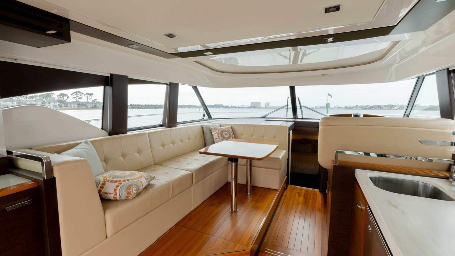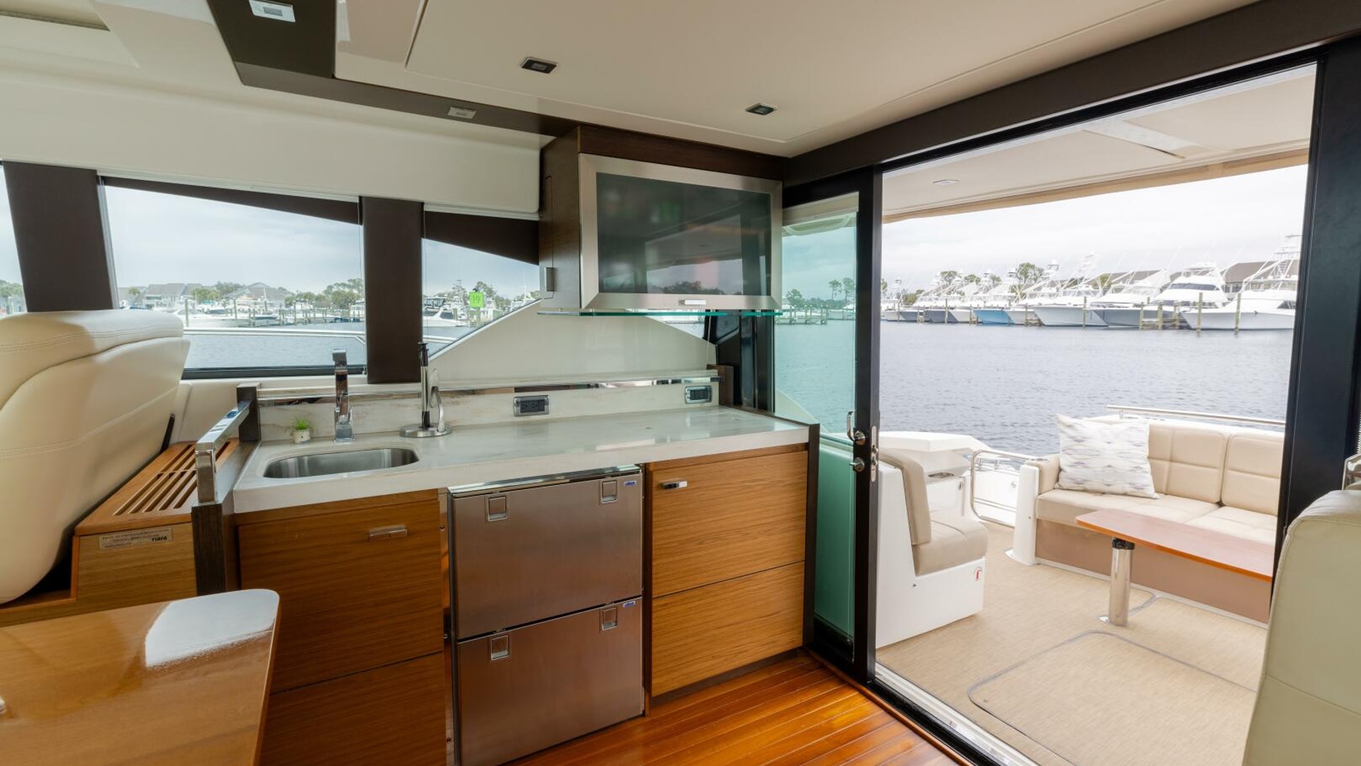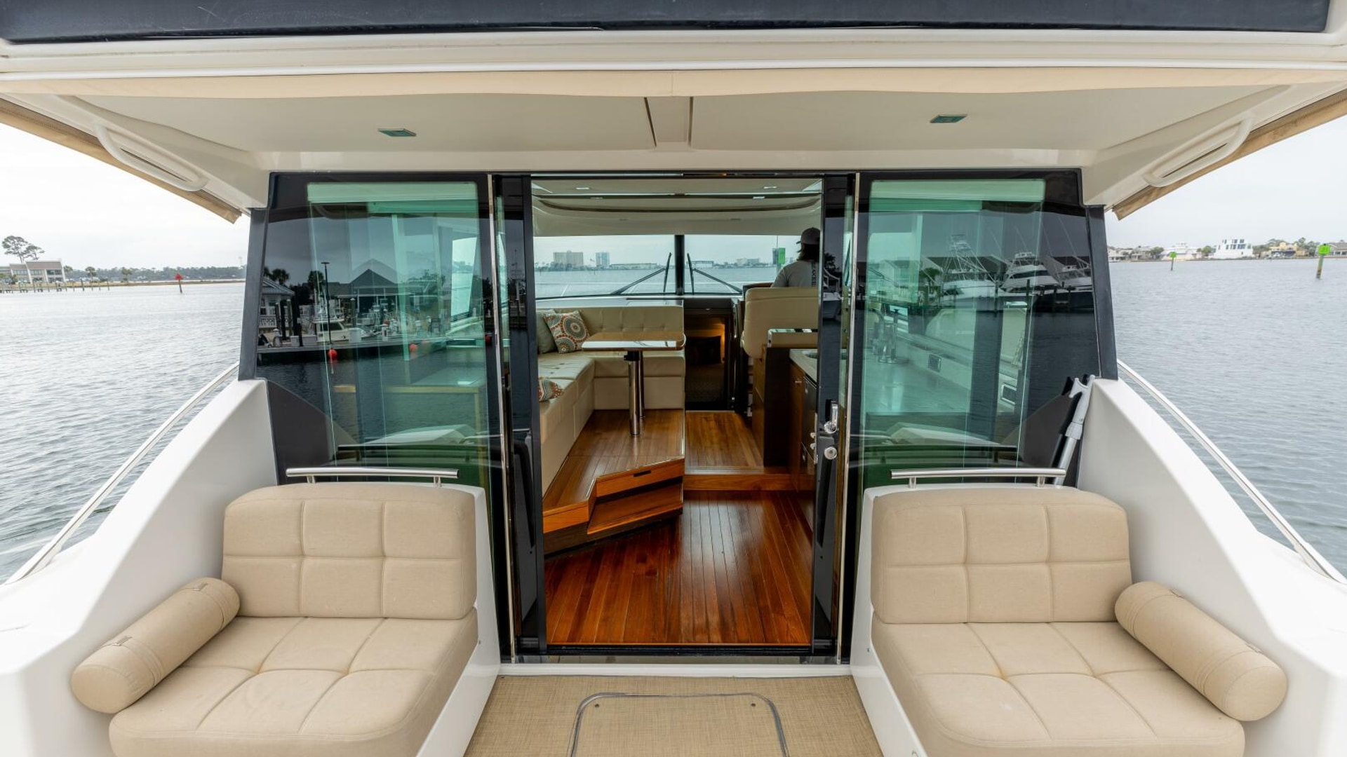 - Aft window & sliding doors with duette blinds