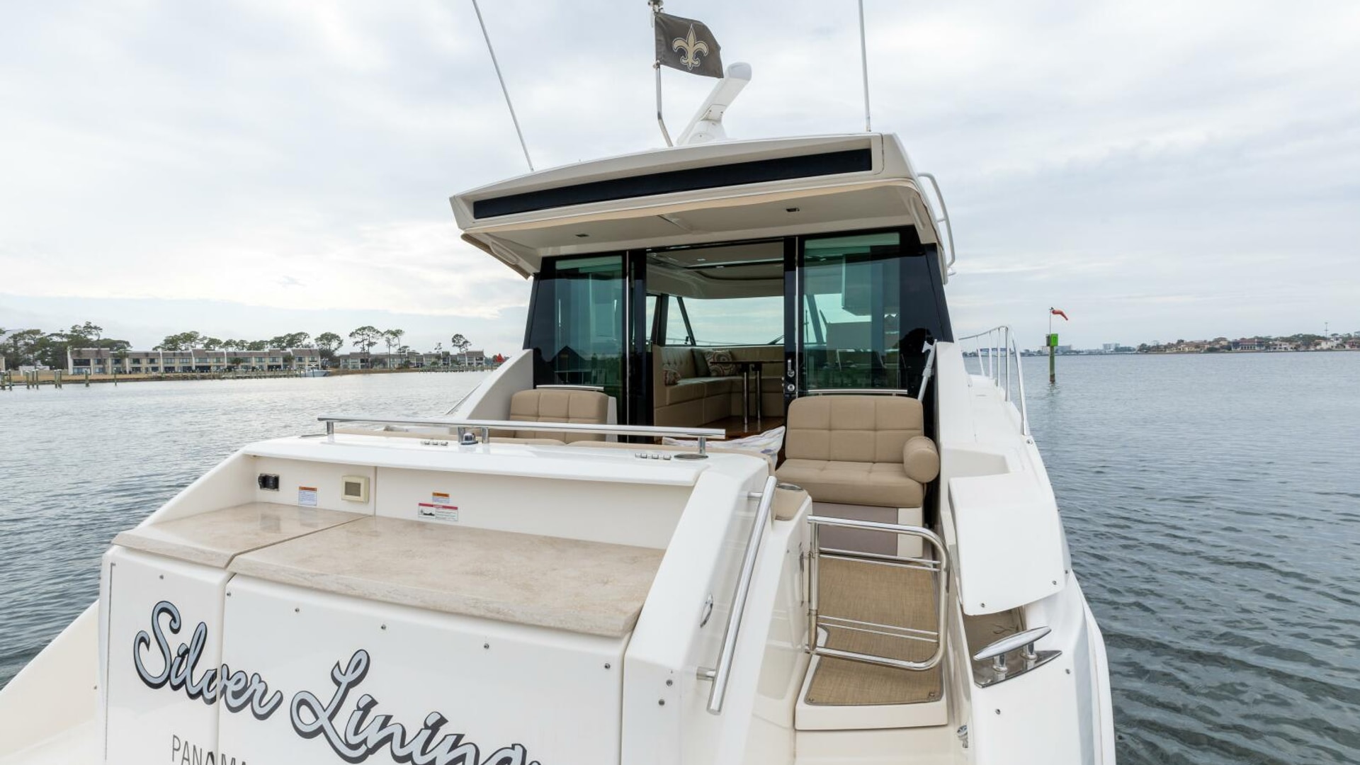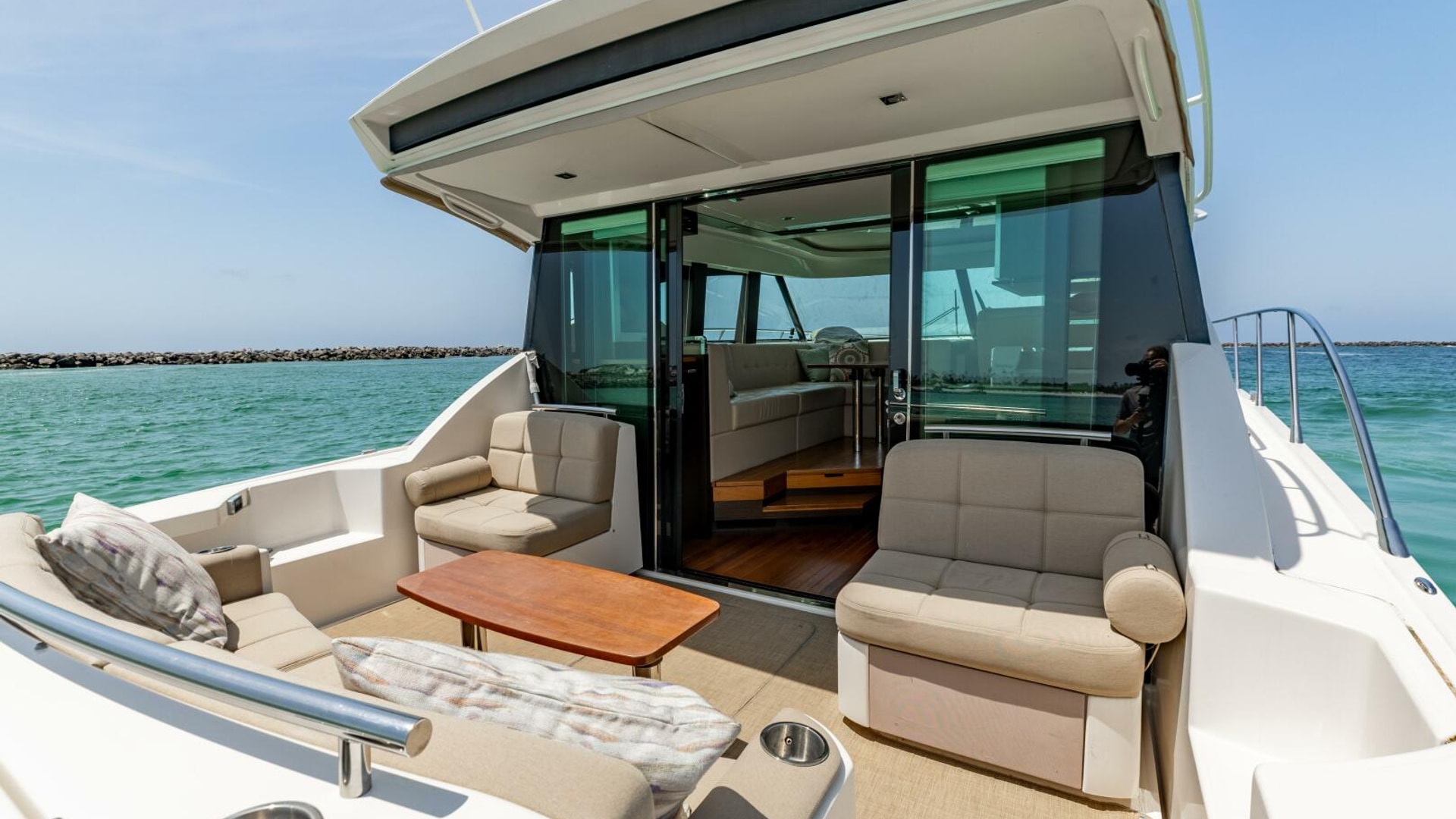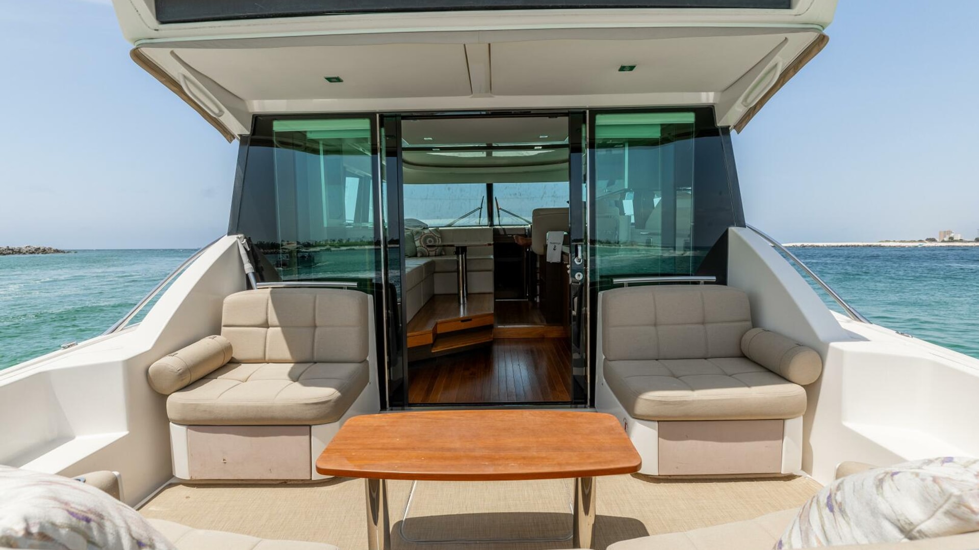 - Aft window & sliding doors with duette blinds
