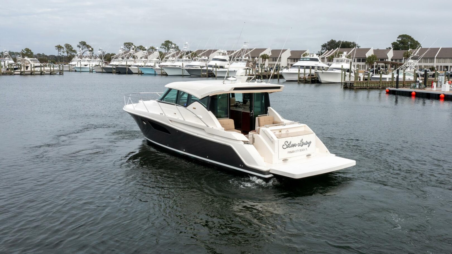 2015 44' Tiara Yachts 44 Coupe "Silver Lining" for Sale- Silver Lining is a well-equipped, well-cared-for 44 Tiara Coupe that boasts a Titanium Metallic hull color that complements its already aesthetically pleasing lines. The 44 is not all looks, however, it is well supported as one of Tiara's most sought-after models with the excellent build reputation that follows the Tiara brand. Silver Lining has endured light use since it was new and highlights all the Tiara focal points with hardwood flooring throughout, superior joinery, robust hardware, in-house fabricated upholstery, fiberglassed molded hardtop with incorporated aluminum window frame, and advanced technology to highlight a few features separating this model from the competition. The 44 is a perfect size for the owner-operator to easily manage and maintain with the family. It offers a smooth, solid, efficient ride. While at the helm, one can feel like a pro with the Garmin Glass Cockpit and Volvo Penta’s effortless joystick control. Performance meets luxury with a forward master stateroom with an oversized queen berth & private head, all complemented by a central guest stateroom with twin berths and day head offering the ideal amount of accommodation for a family or guests that tag along for an extended cruise. If you are in the market for a 44 Tiara Coupe or like, this one is not to be missed.