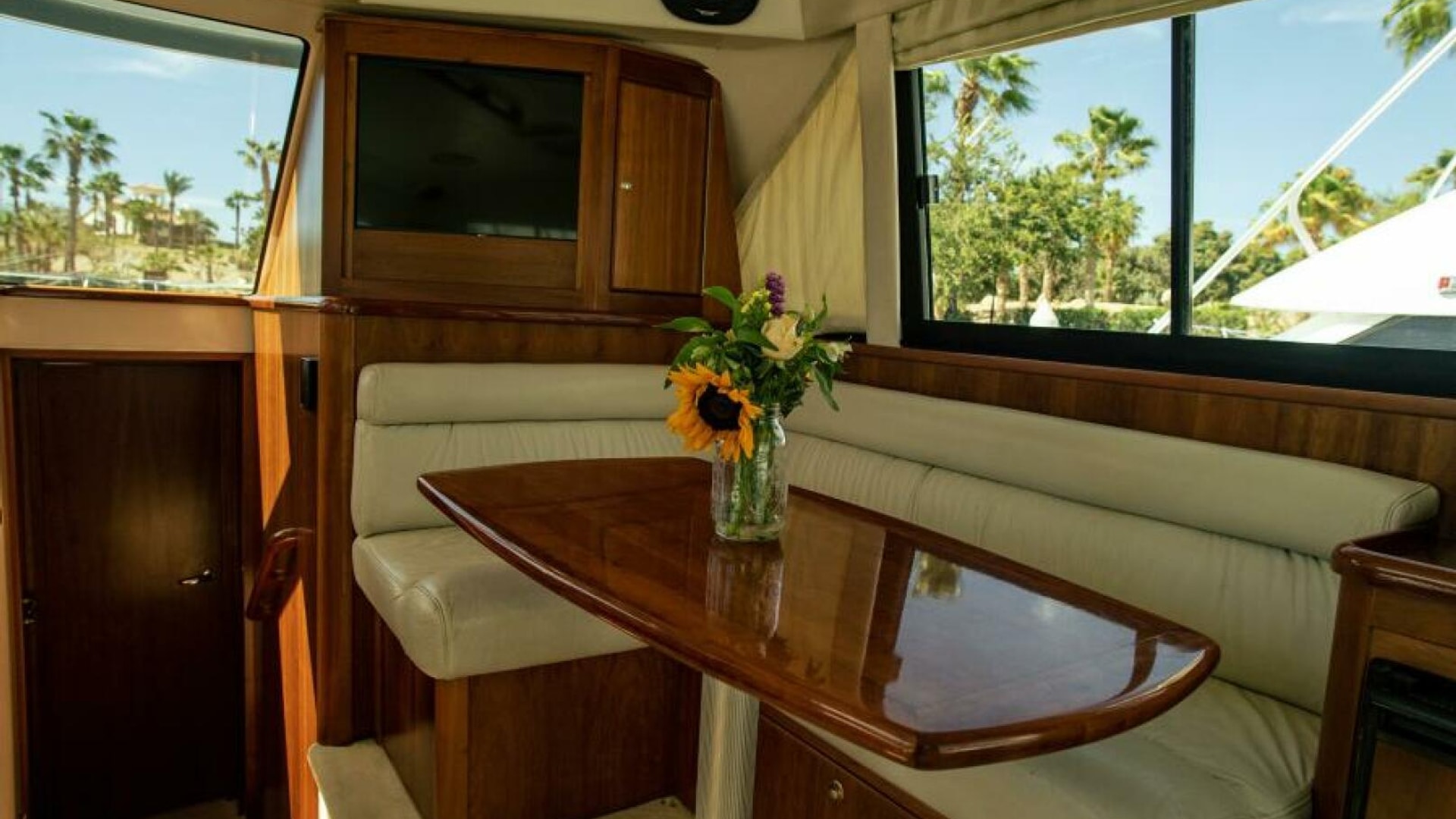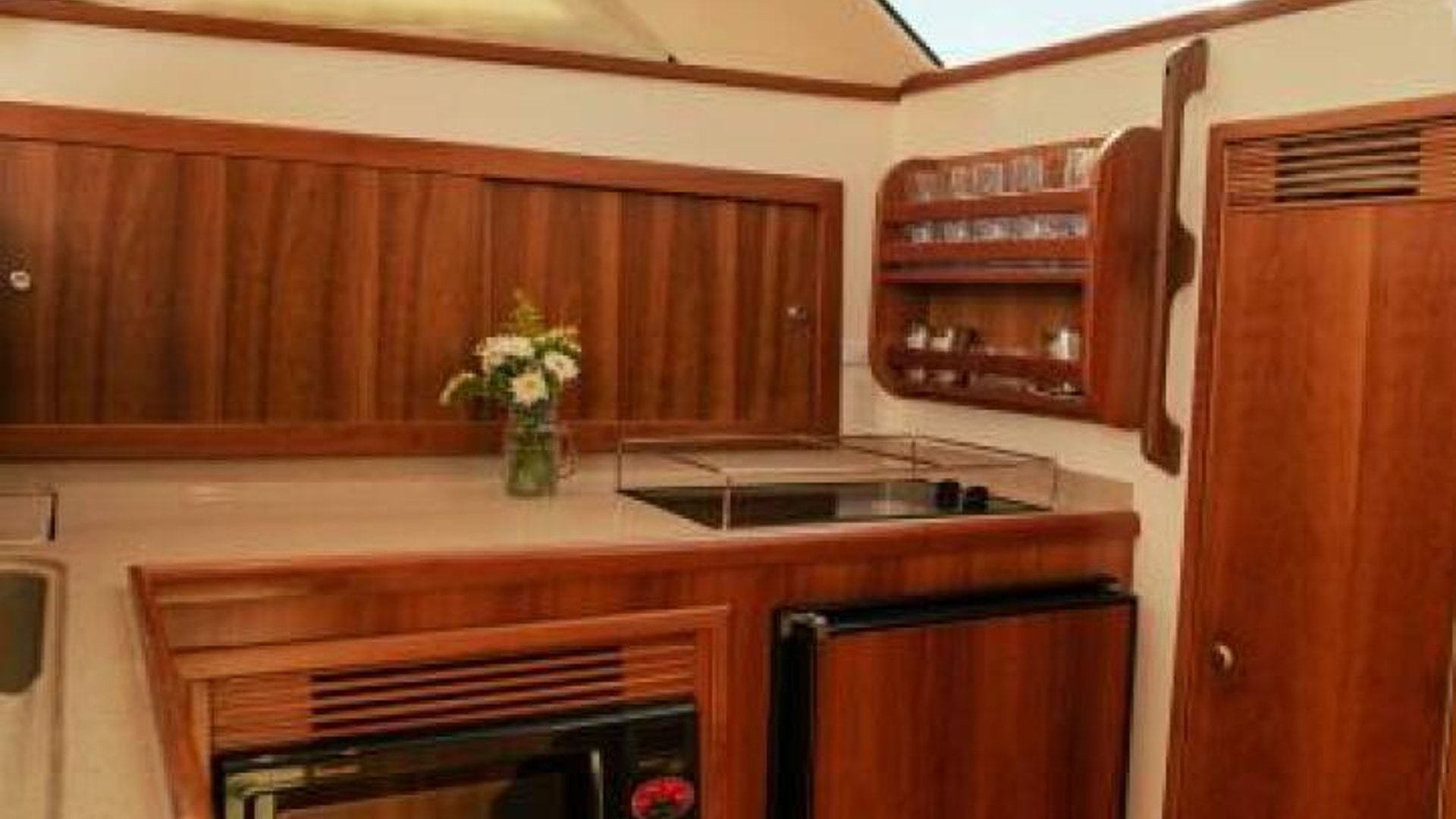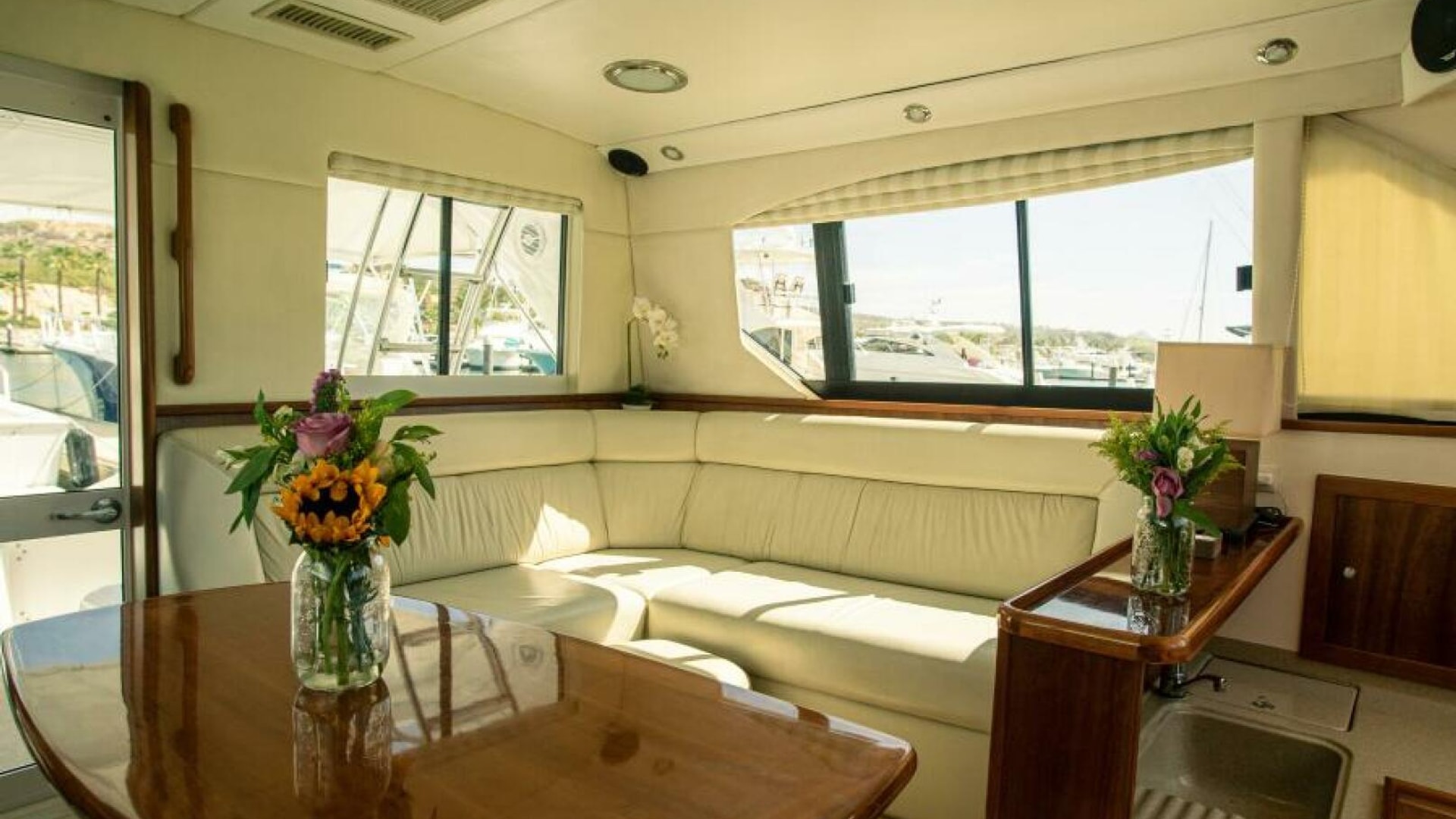 - Flybridge forward seating and bench seat fwd with rod storage and sink