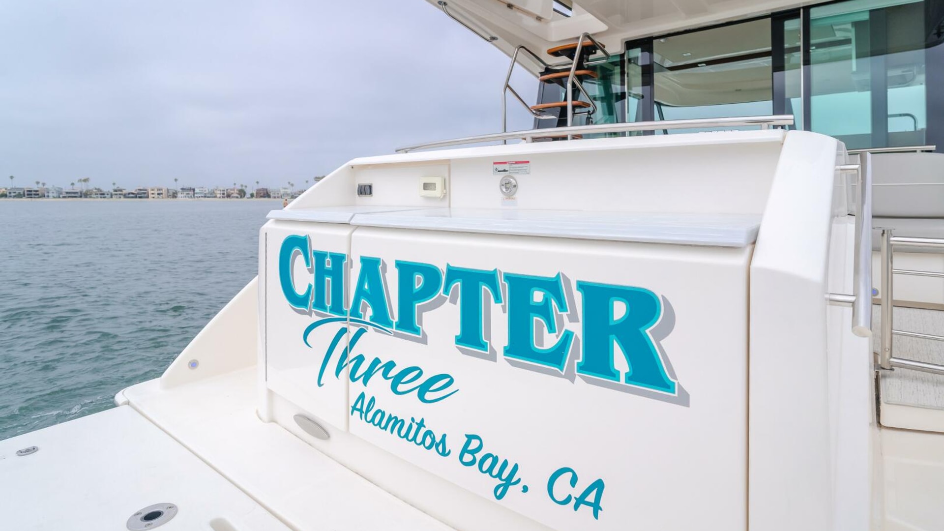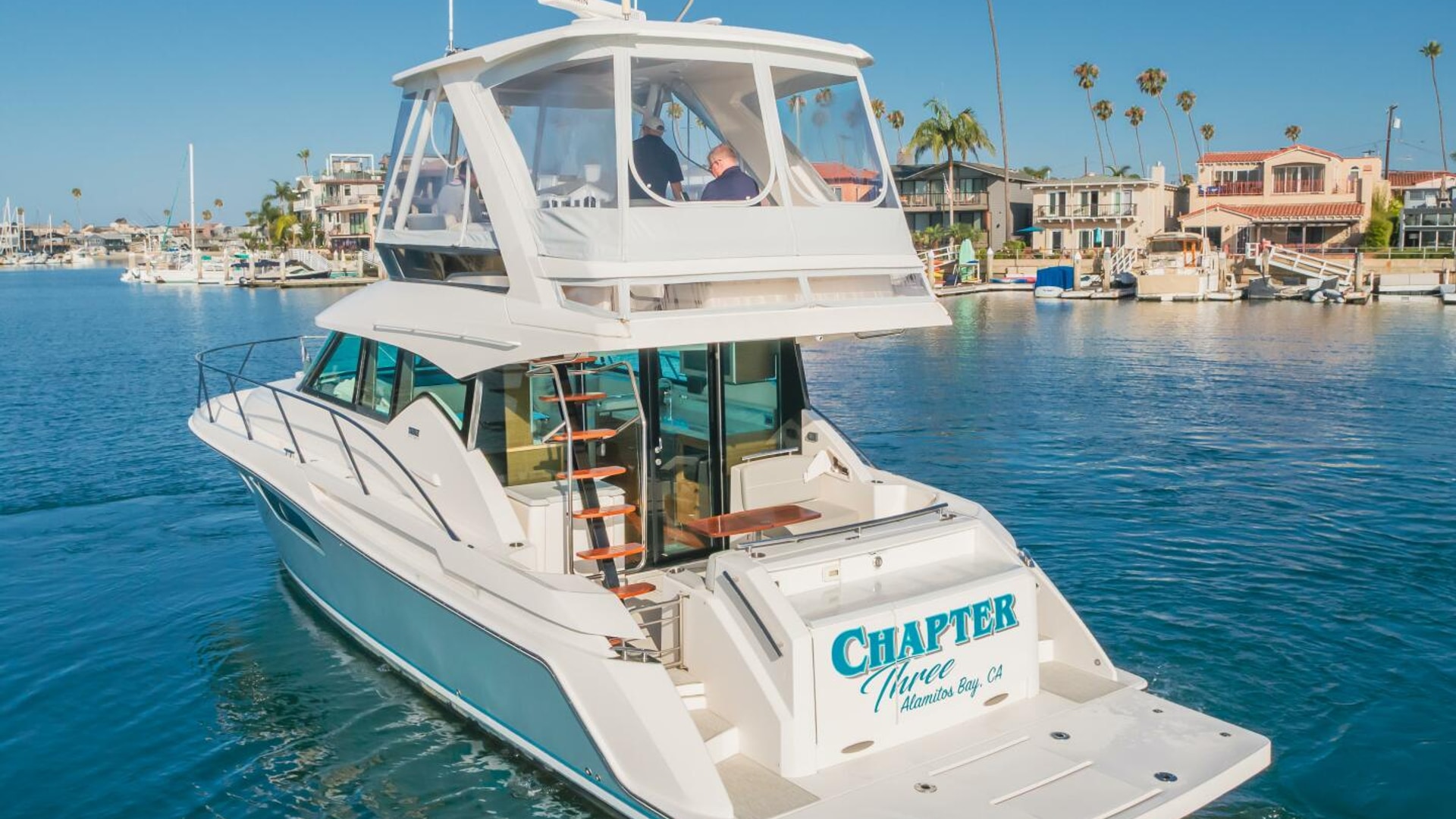 - Tiara custom composite sedan bridge, aluminum windshield frame with tempered safety glass, safety handrails