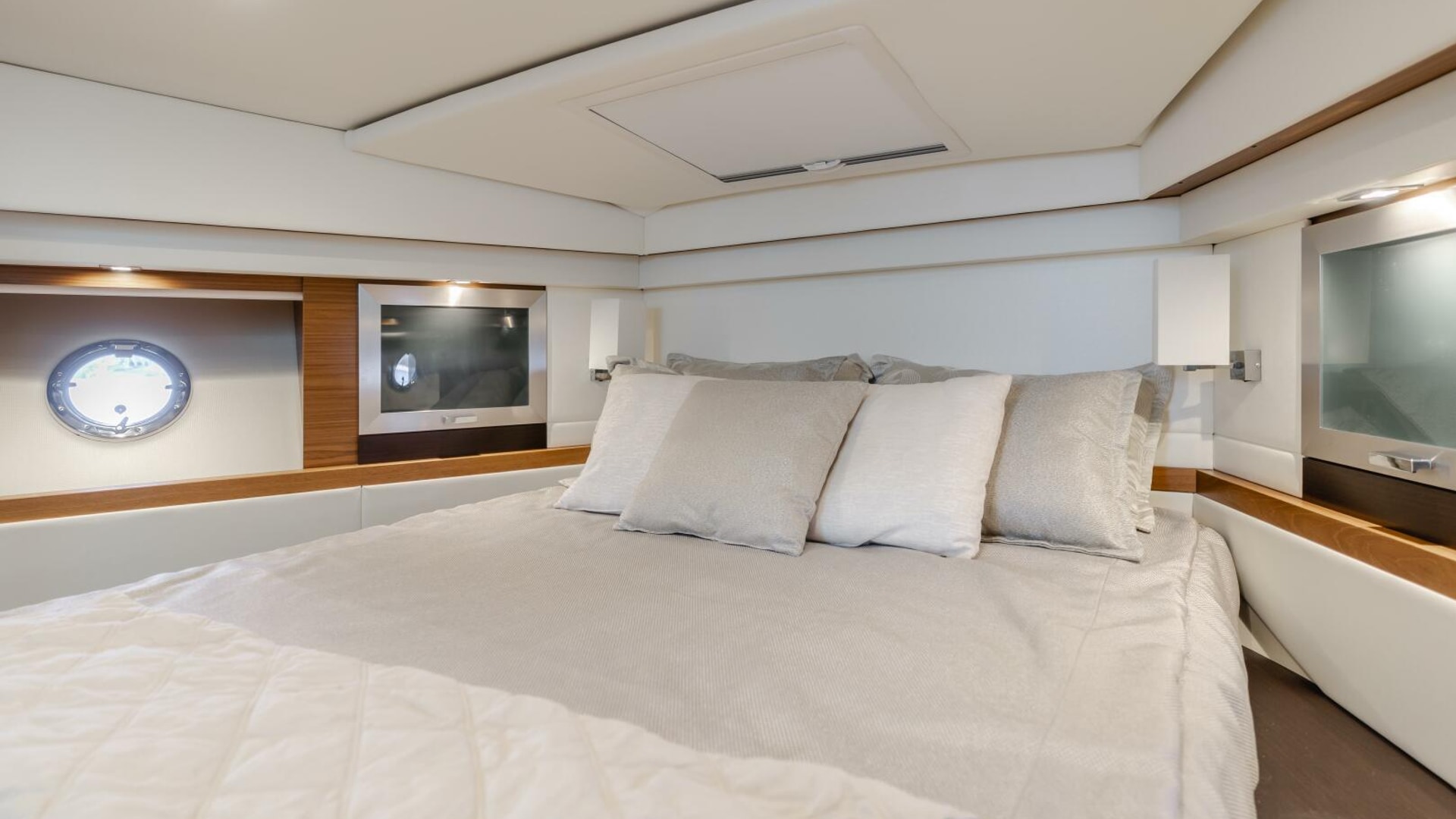 - Opening deck hatch for natural lighting and blinds for windows. Opening ports for ventilation in master stateroom & head.
