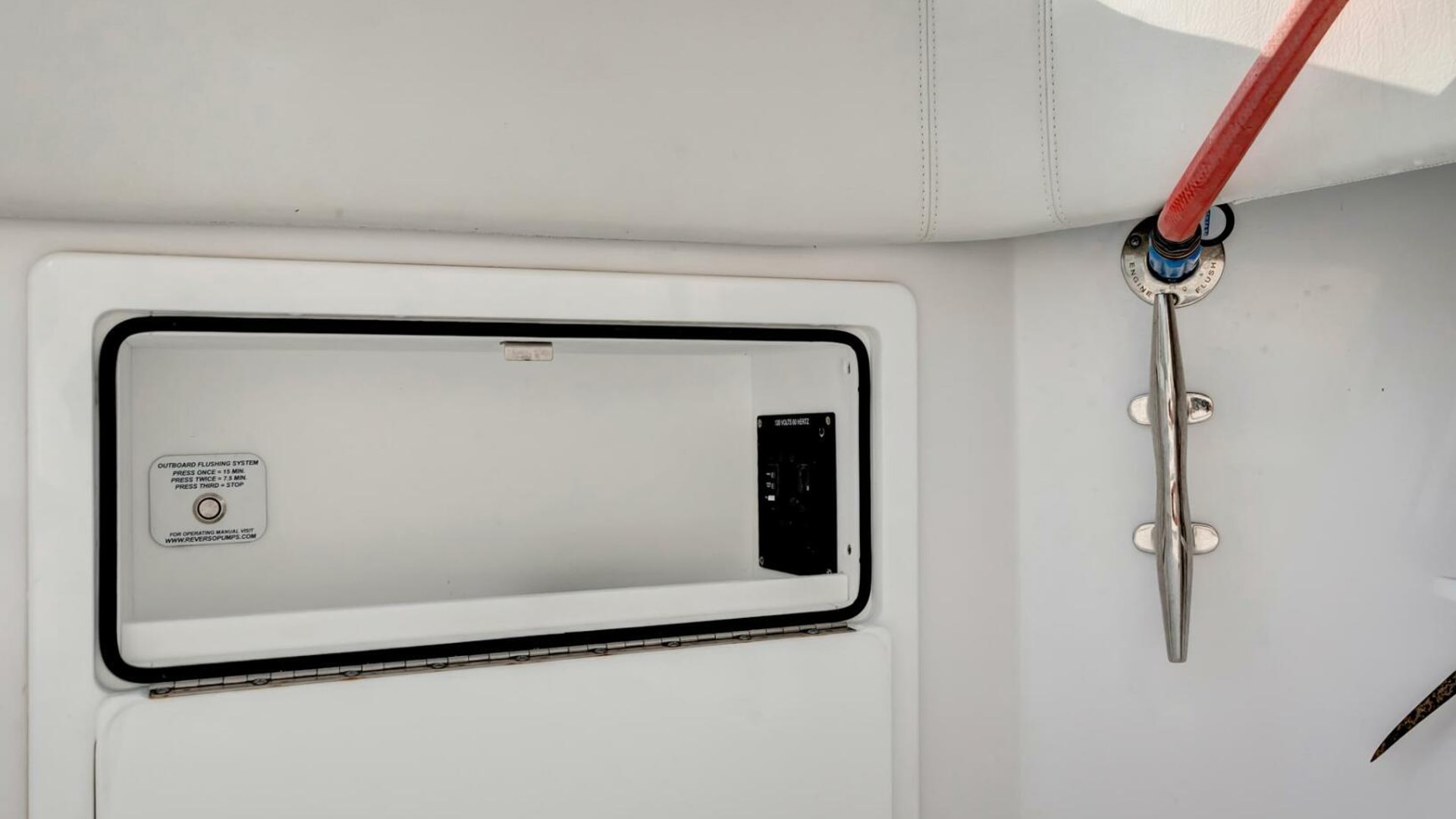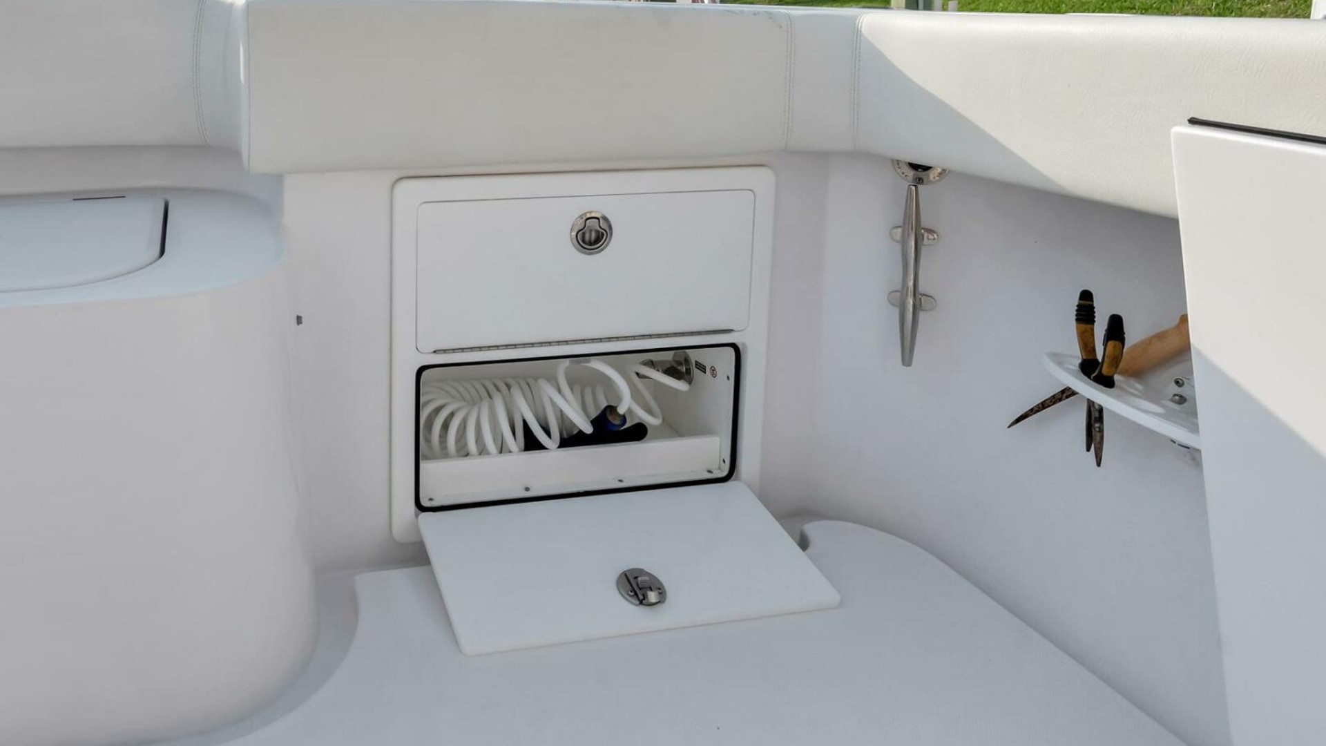 - Through stem bow roller with anchor windlass in forward deck anchor locker with switch, chain, rope, anchor and freshwater washdown