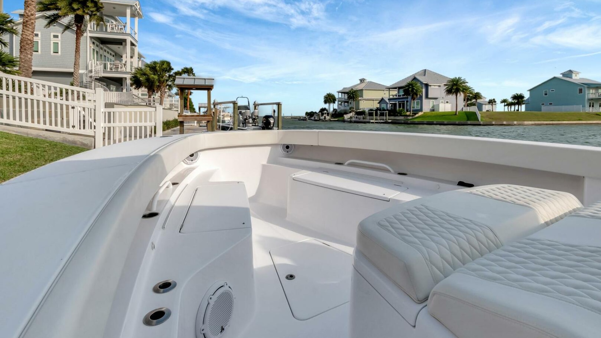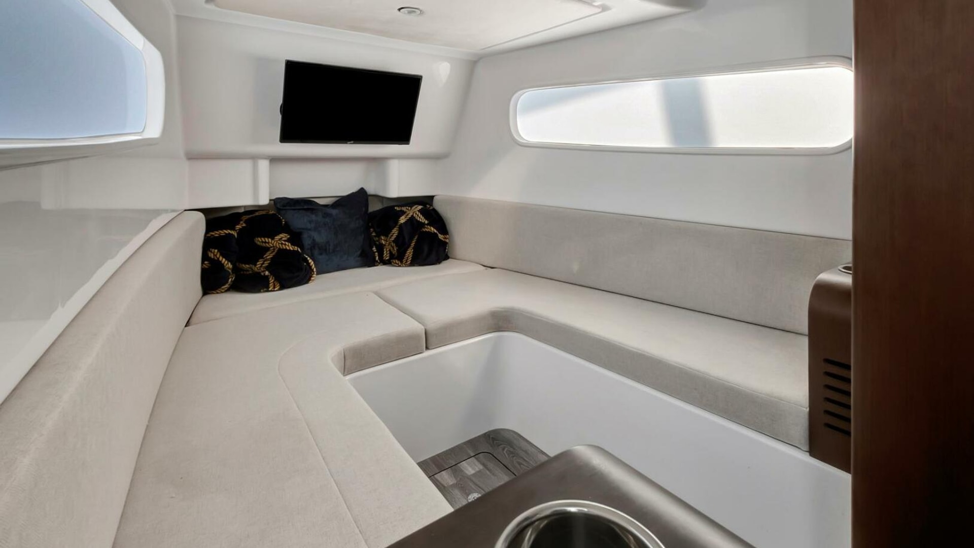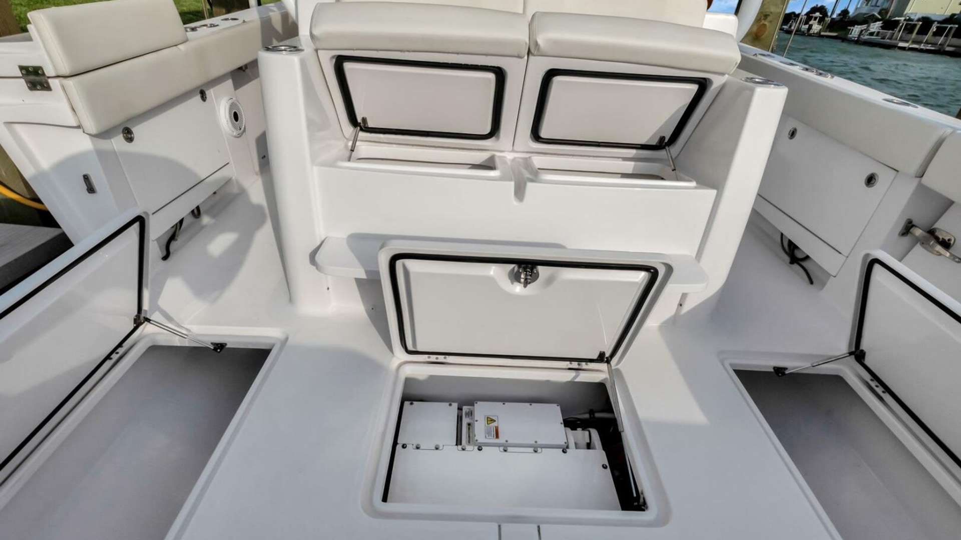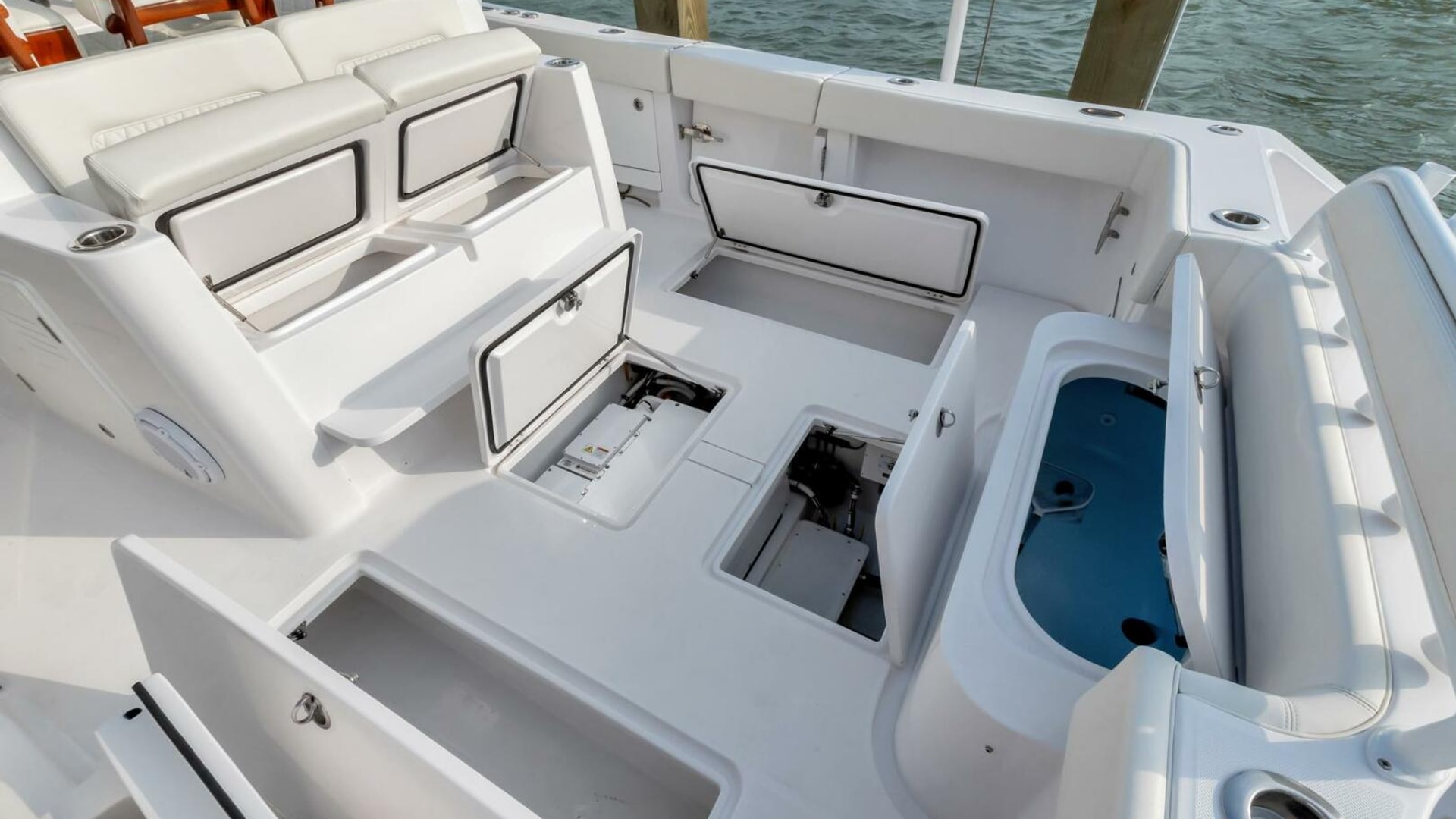 - In floor bow storage locker, 680 quarts insulated