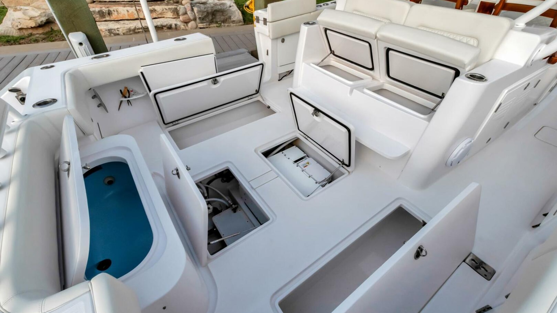 - Insulated illuminated 420-quart port &starboard fish boxes w/ macerators