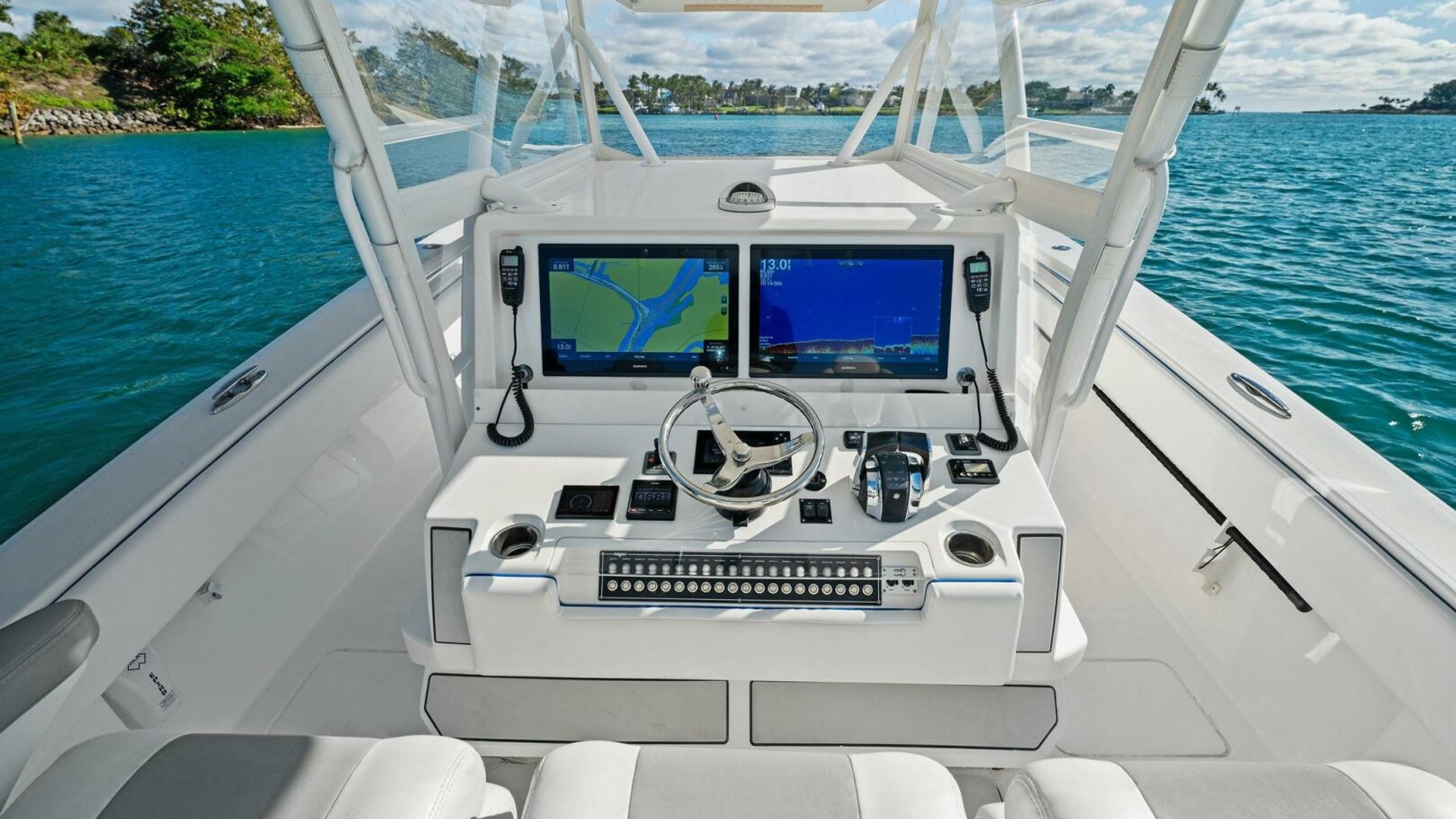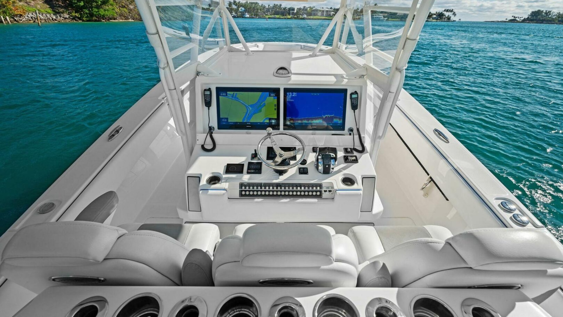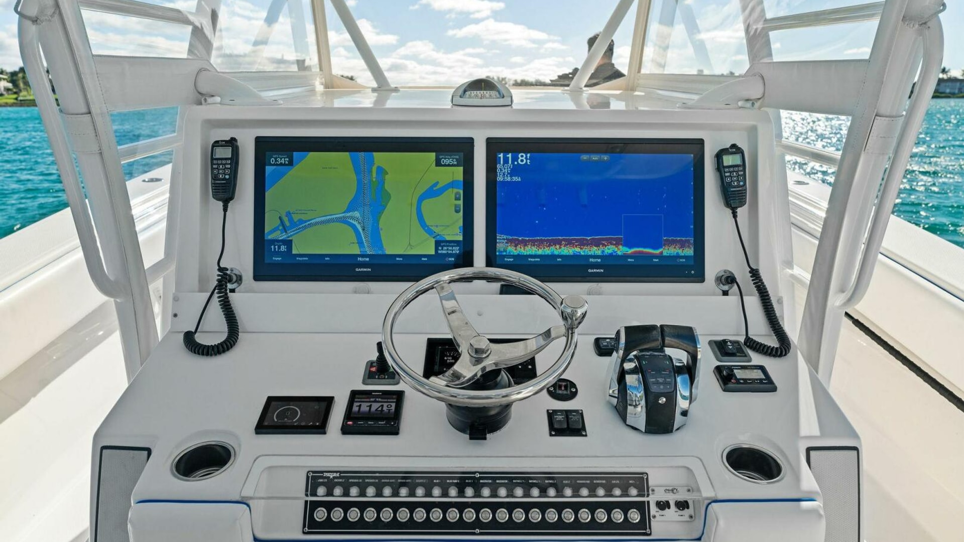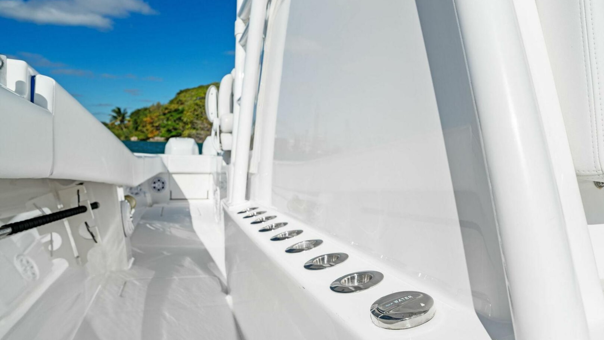 - 8 Vertical rod holders on stbd console