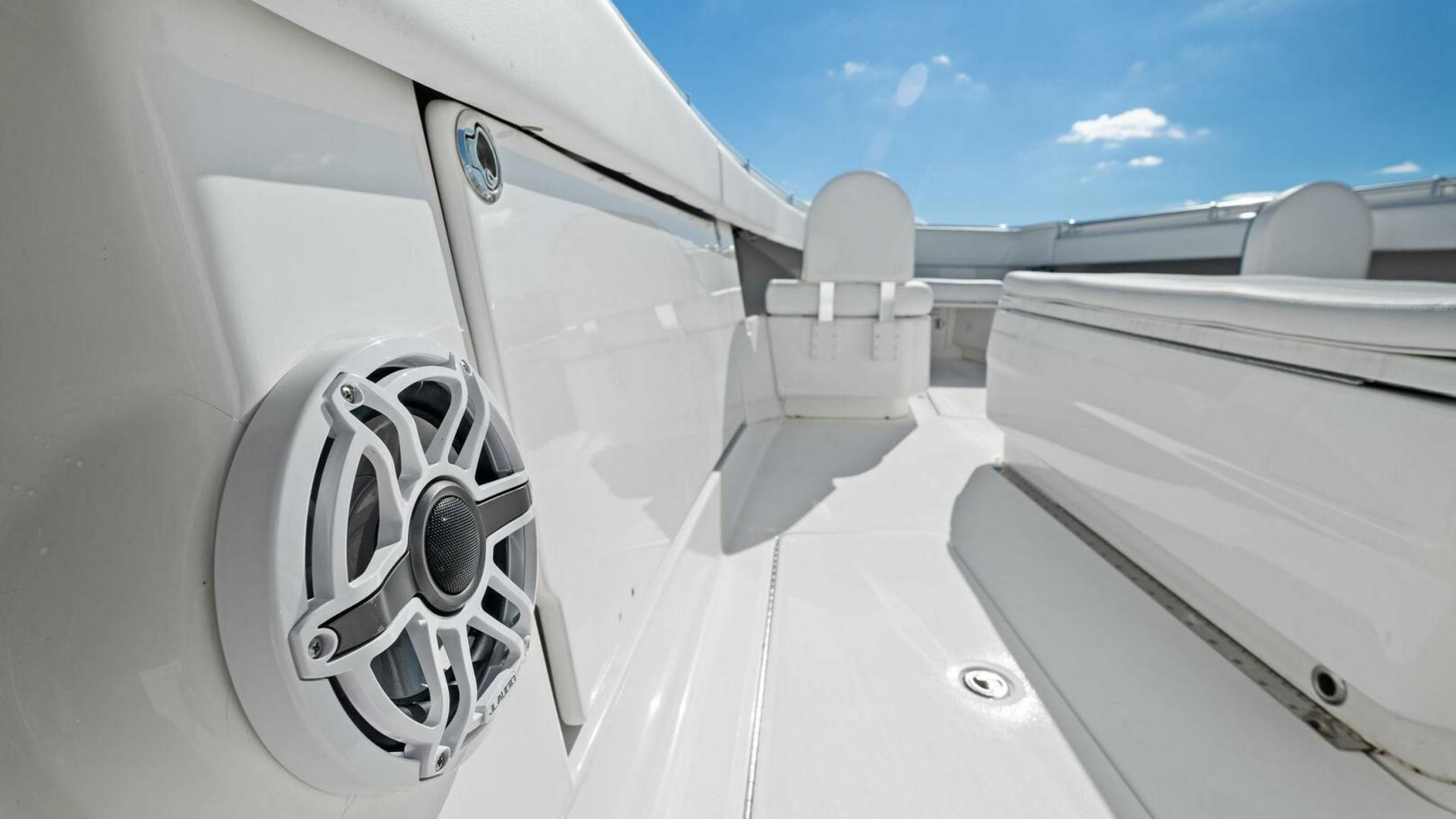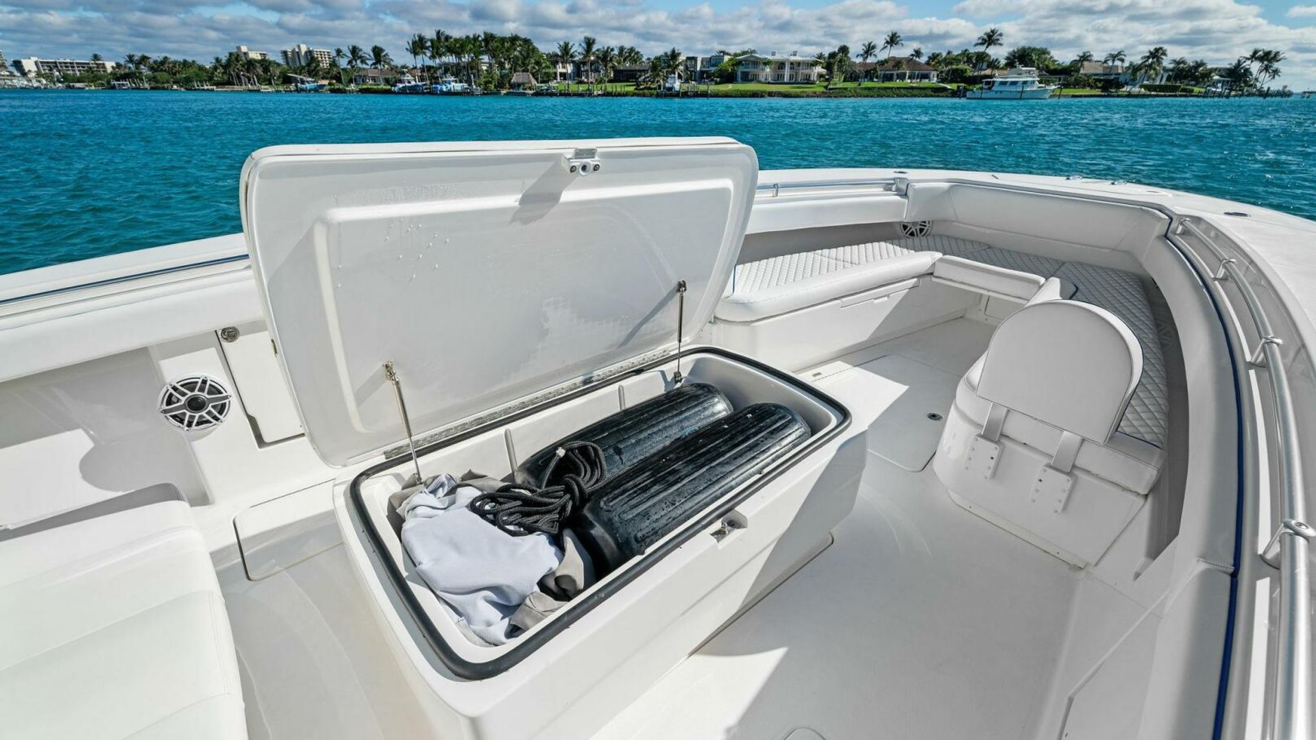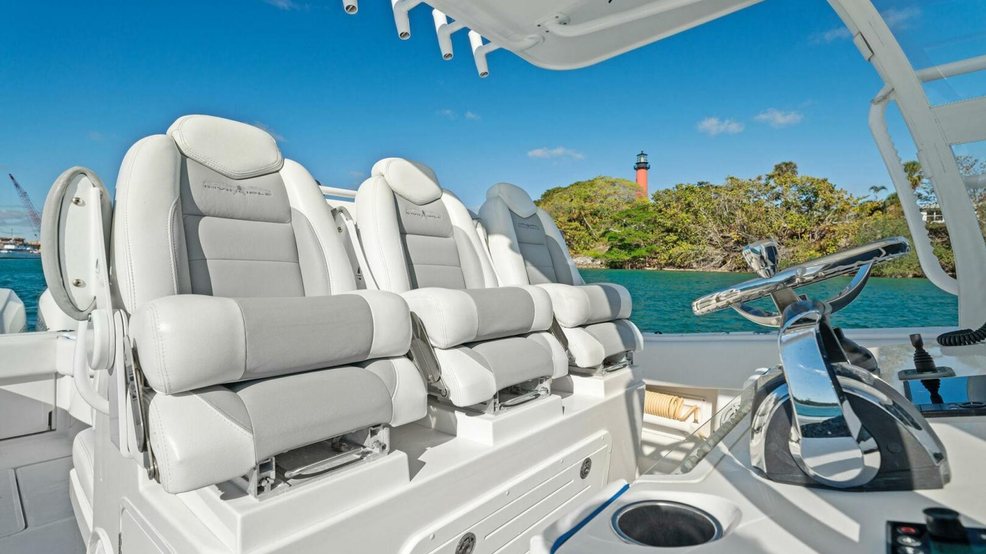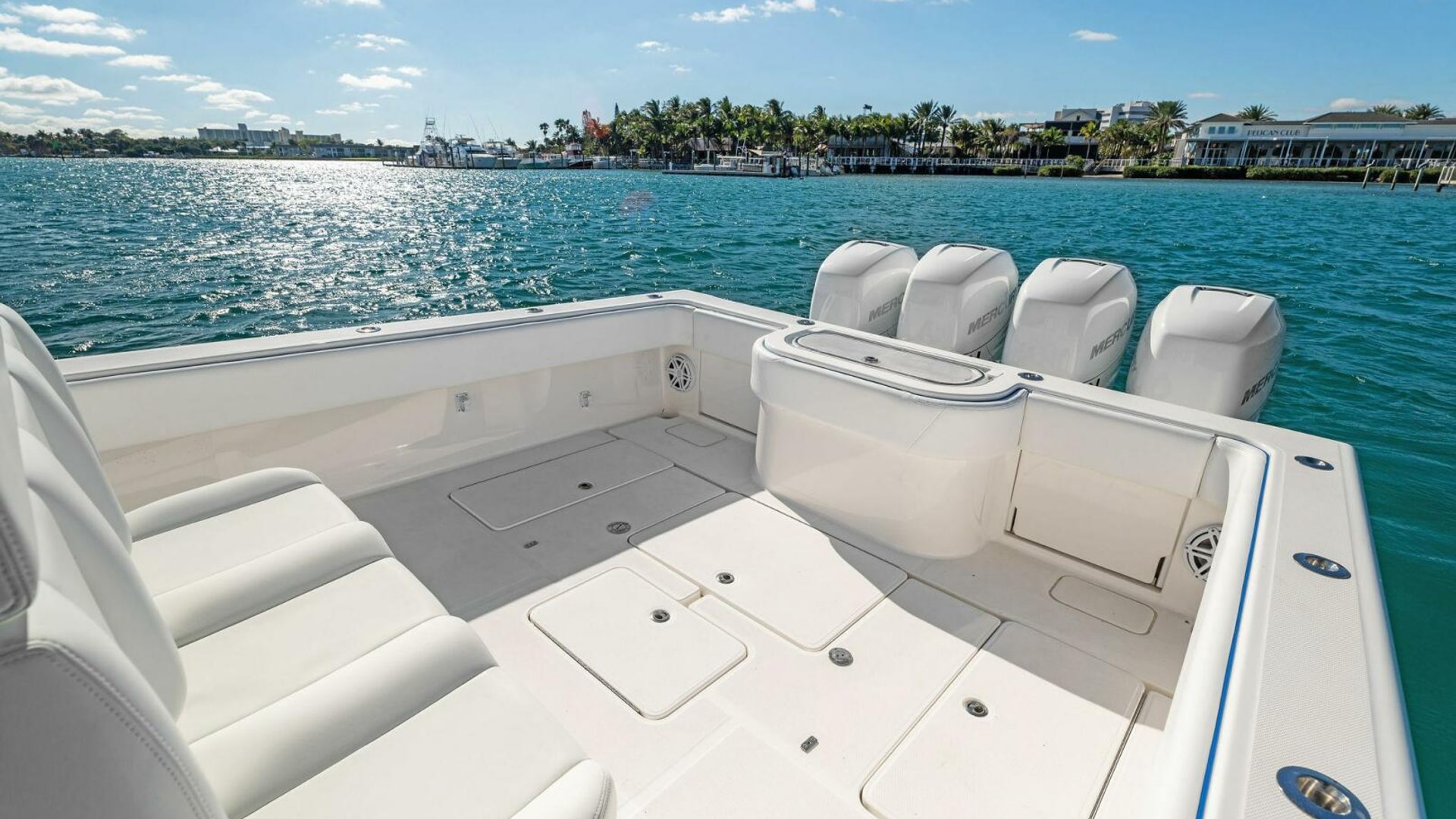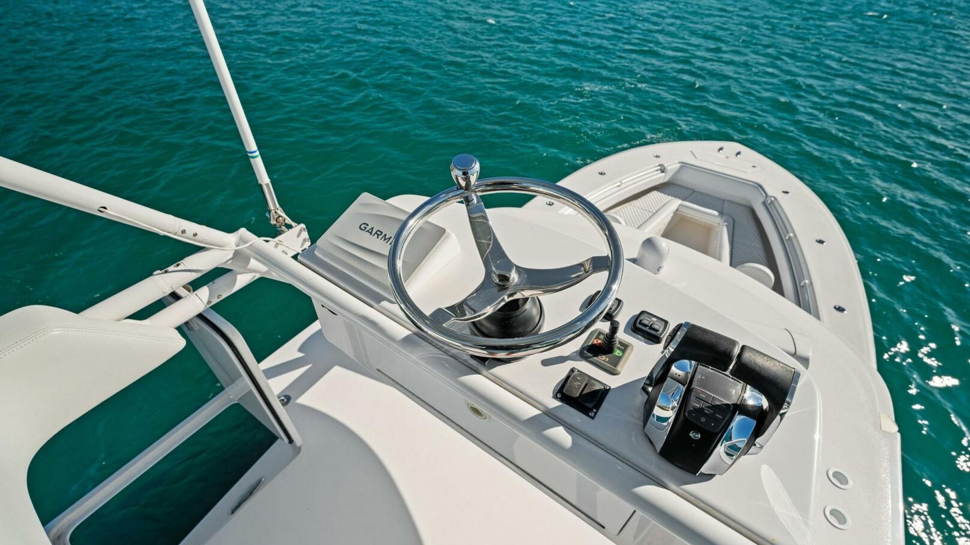 - Back-to-Back helm seat with tackle storage and built-in cooler/drink box