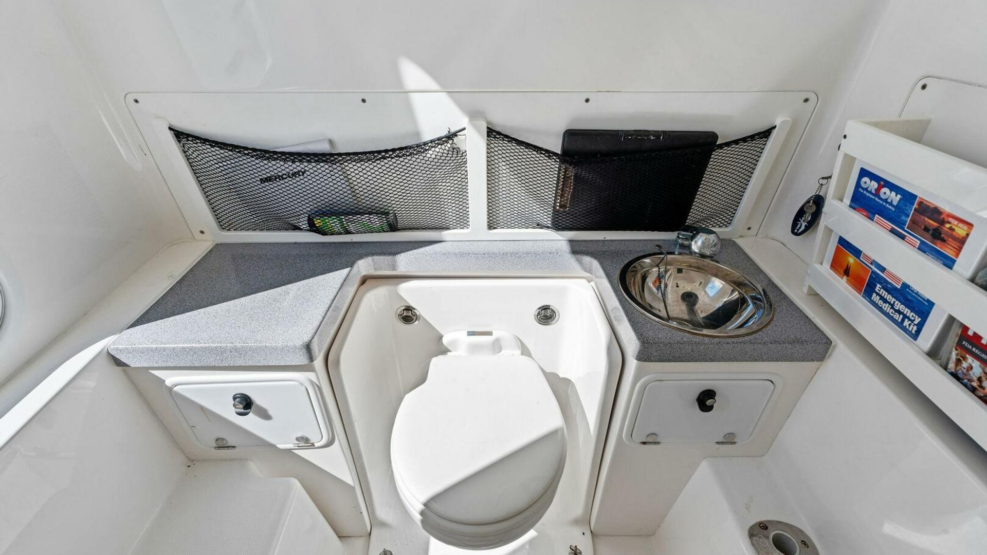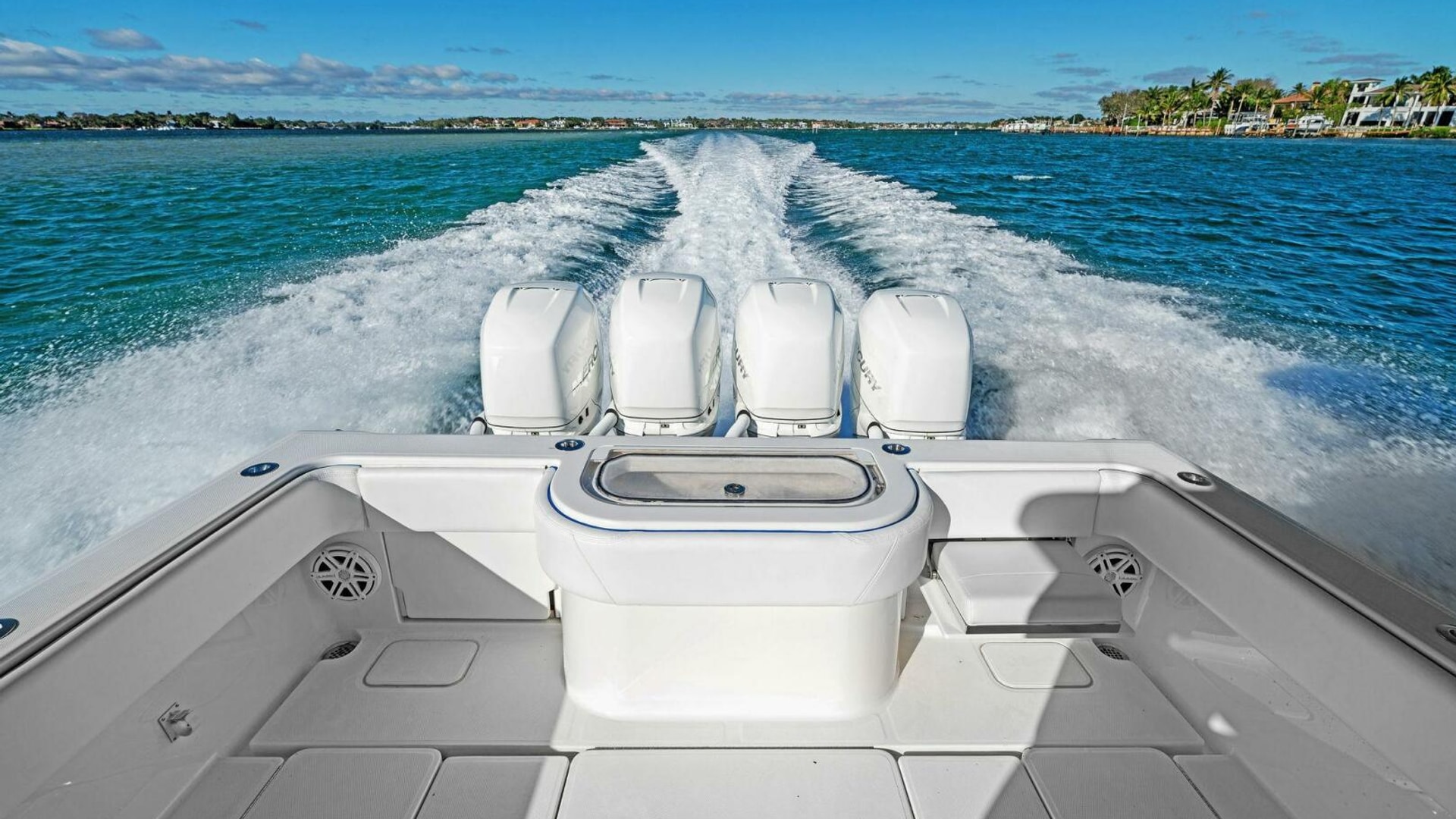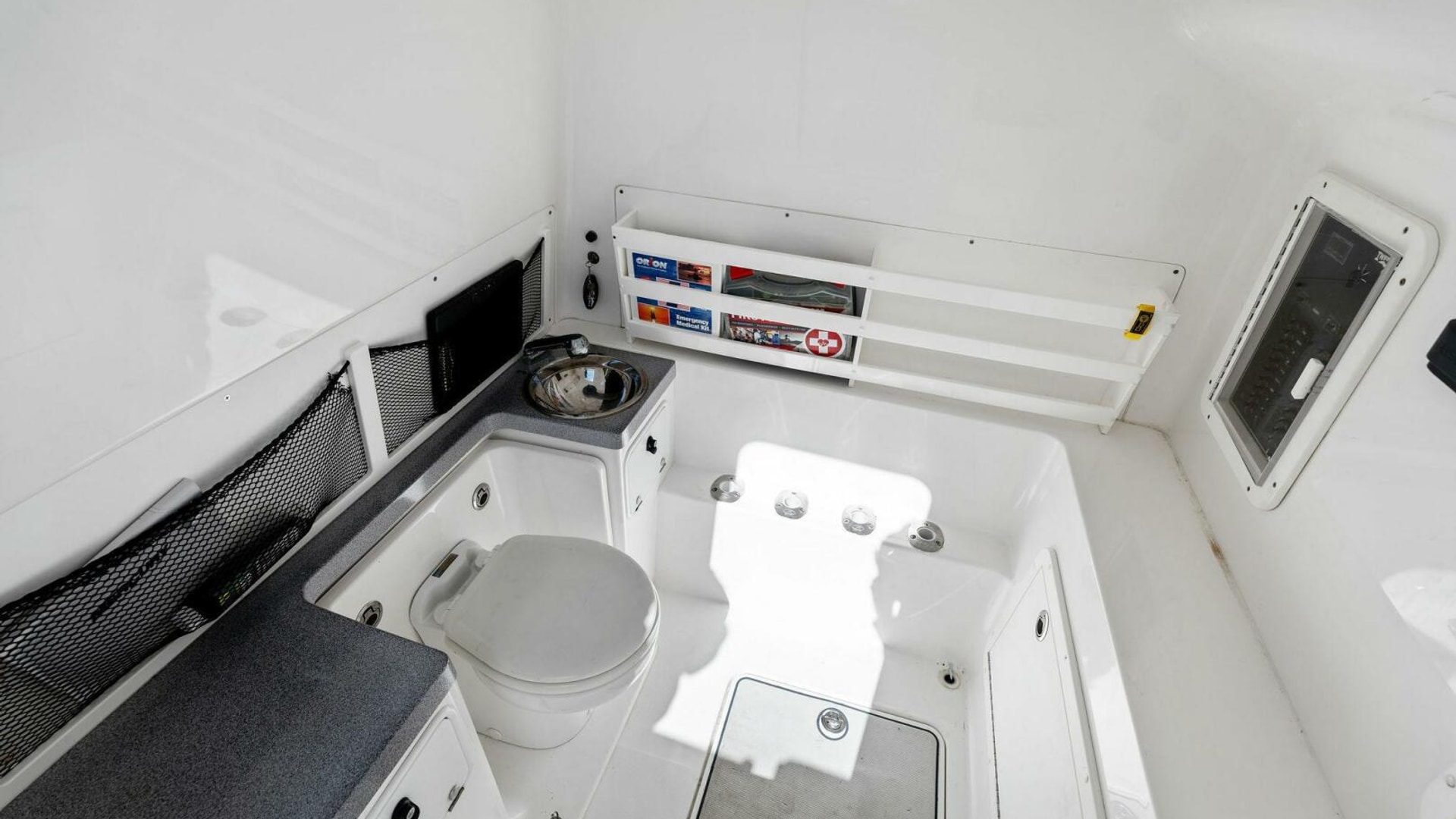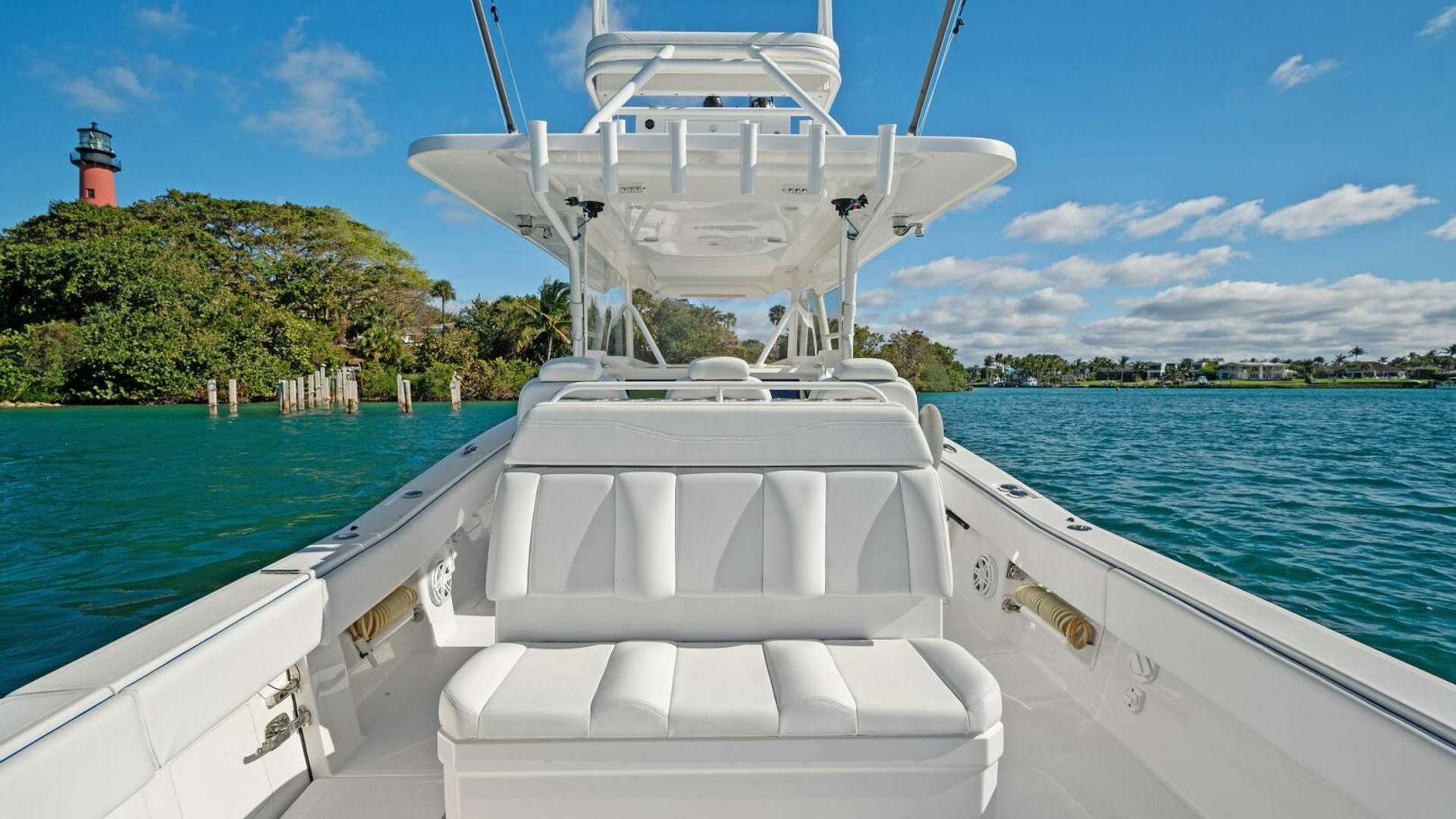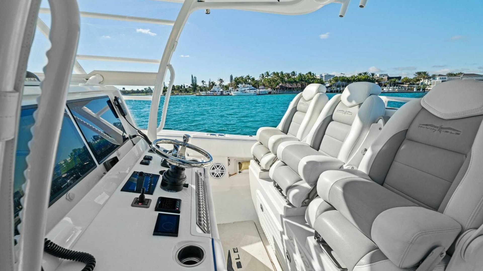 - Back-to-Back helm seat with tackle storage and built-in cooler/drink box