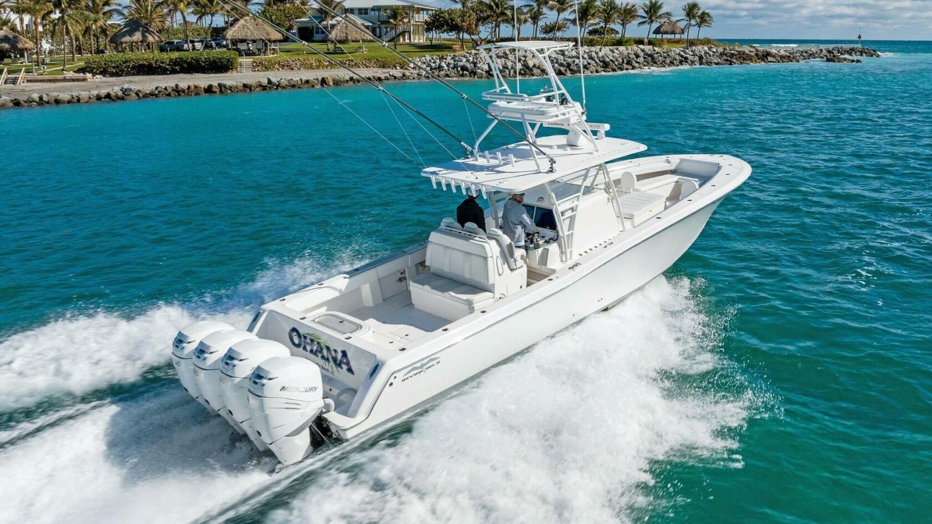 Ohana is a 2019 42’ Invincible Open Fisherman that has been carefully maintained since new and re-powered in 2021 with Quad Mercury 400s (485 hours) w/Warranty until March 2026. Her list of updates also includes 22” Garmin Displays and Hooker Electric Live well system. Ohana is fully equipped with a Marlin Tower w/2nd Station (removable), 2KW Chirp Transducer, FLIR, removable on deck live well, and much more. Ohana is in great condition and with her extensive list of notable upgrades and warranty, she presents a great value in today's market. Call today to learn more.