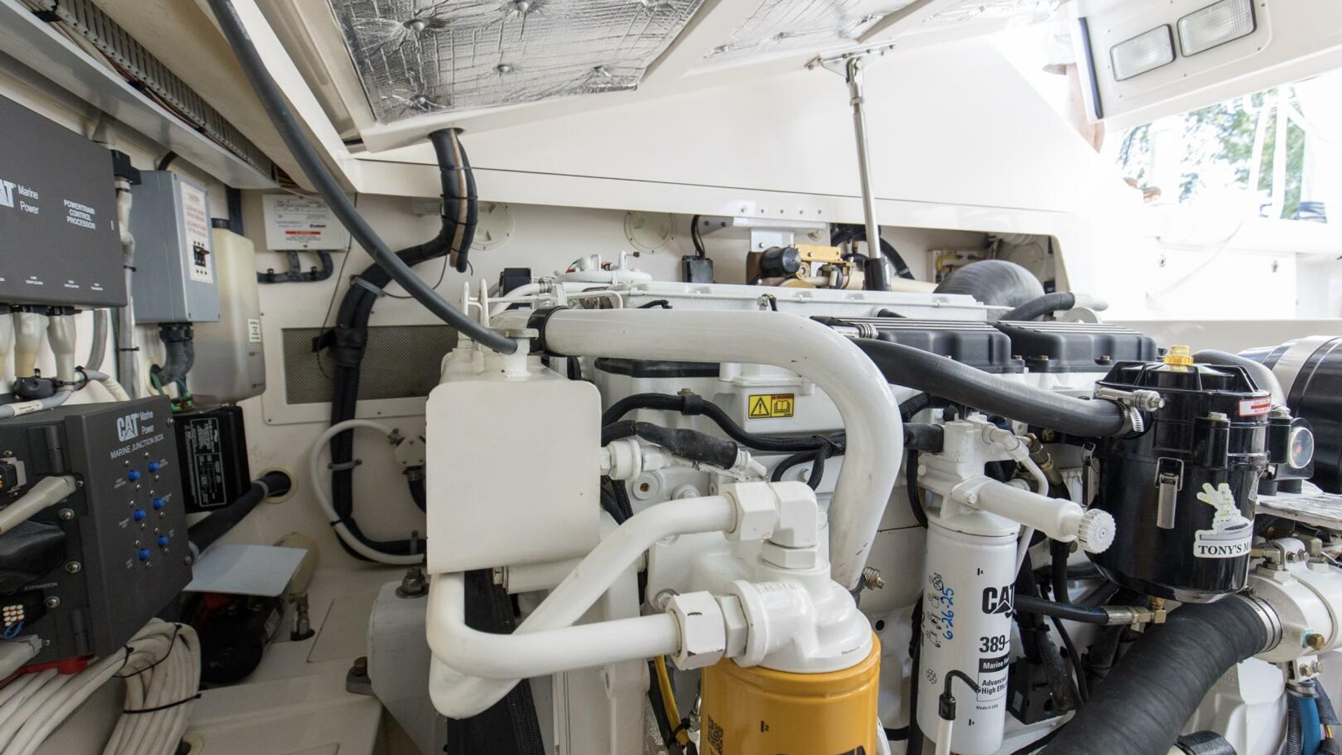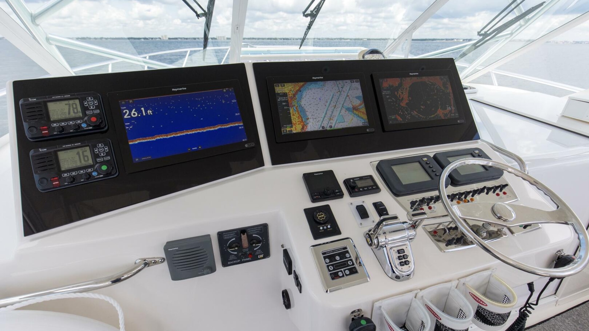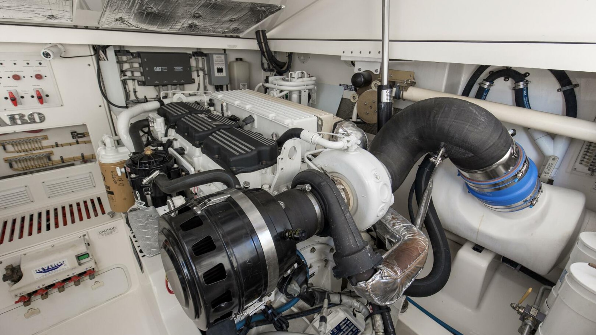 - Powered by rare CAT C12 main engines with 2500 original hours and CAT Electronic Controls, Digital MFD Displays, Back-Up Controls, Start/Stop Engine Controls
