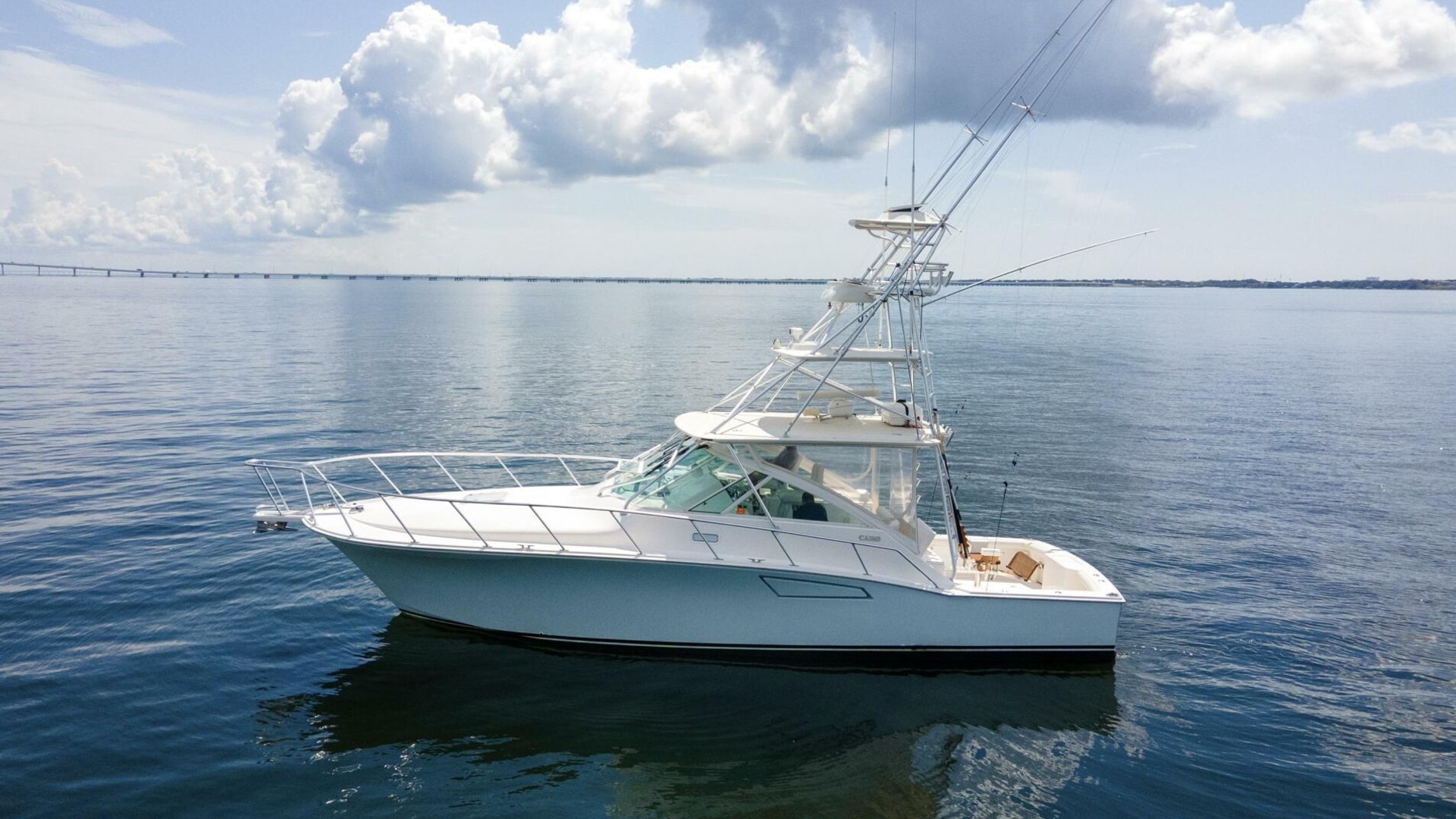 Experience the pinnacle of offshore fishing and luxury cruising with this well maintained 2007 CABO Yachts 40 Express “BIG BLUE”. Powered by twin CAT C12 main engines, it offers exceptional speed, power, and reliability for your adventures in the Gulf of America. The Westerbeke 12.6kW generator ensures you have ample power for all onboard systems, whether at anchor or underway.
