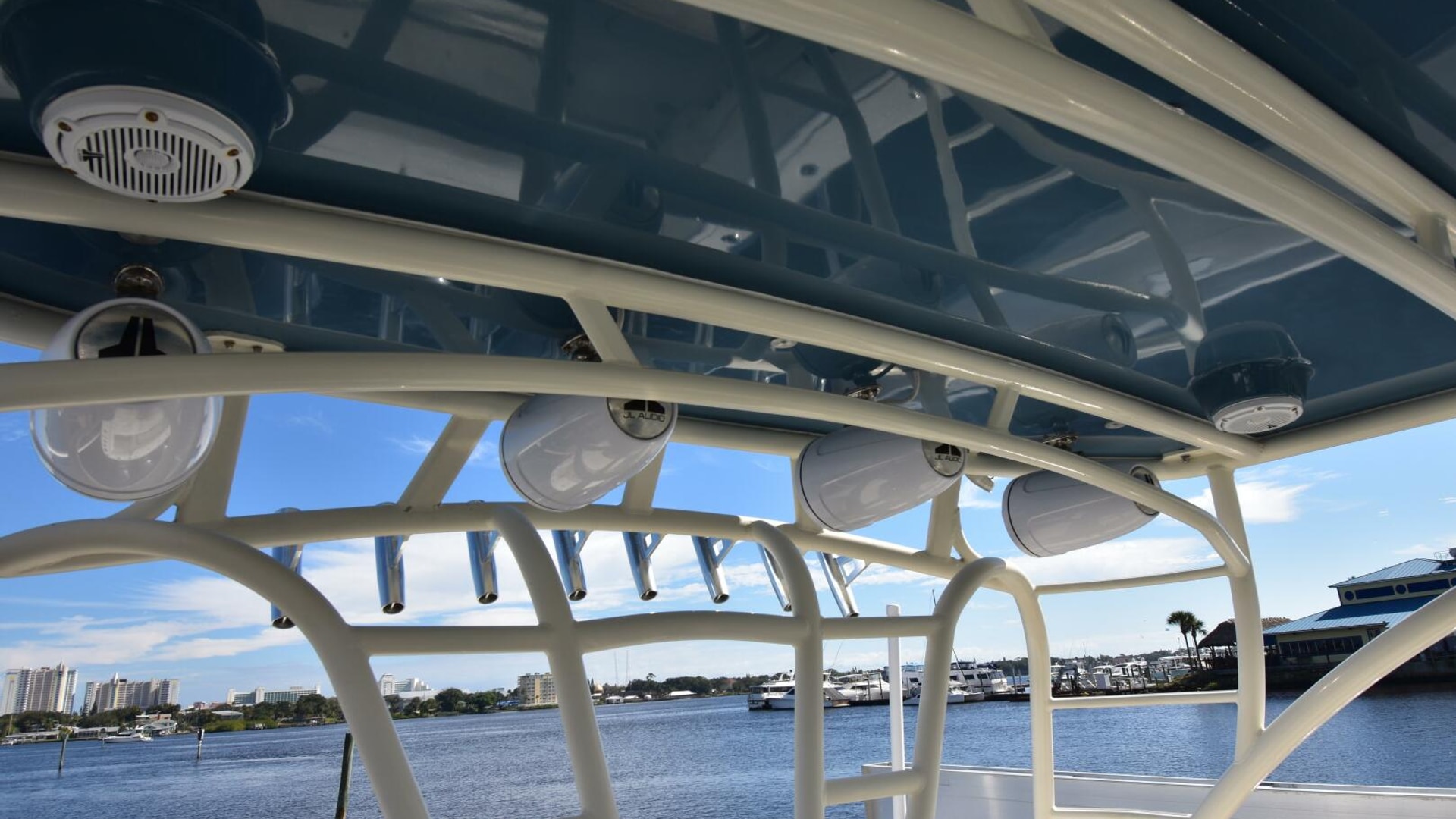- Fusion MS UD750 Marine Stereo with Amps, JL Audio Weatherproof Speakers