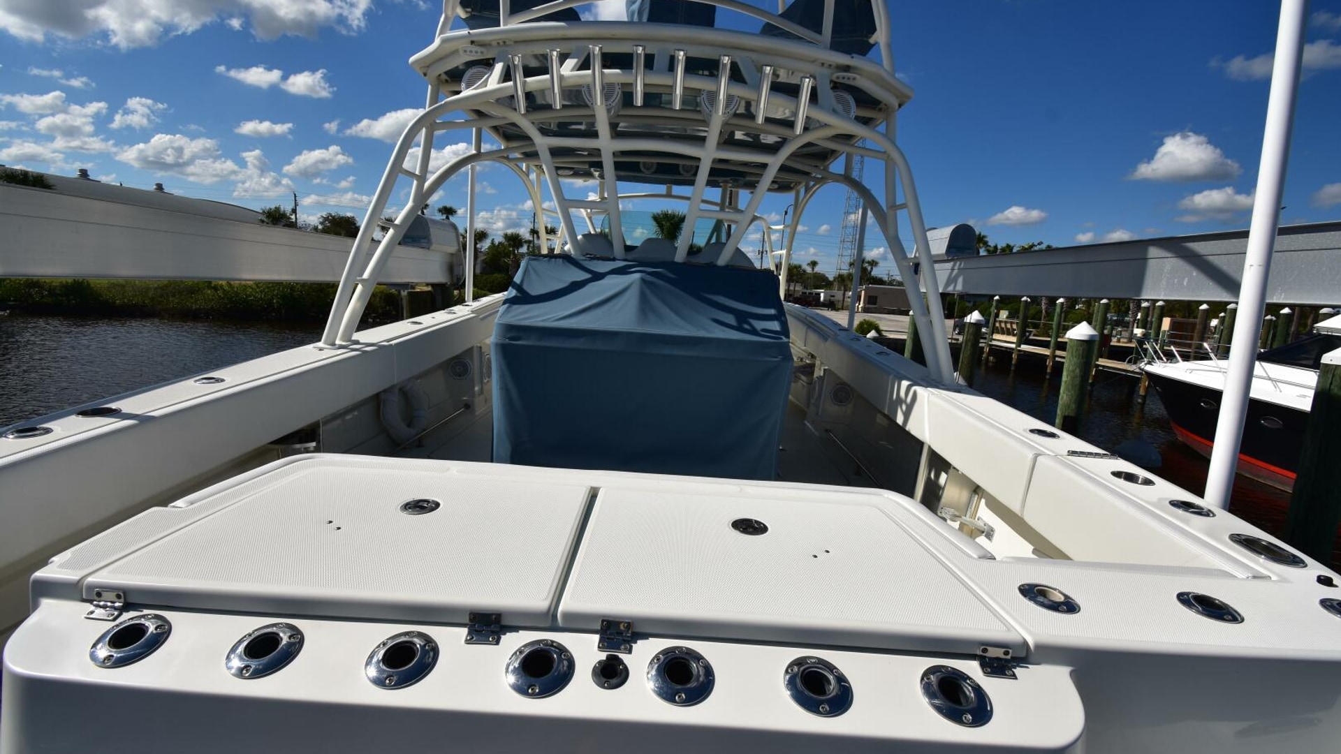 - In the bait prep station and under the gunwhales approximately 40 rod holders in total