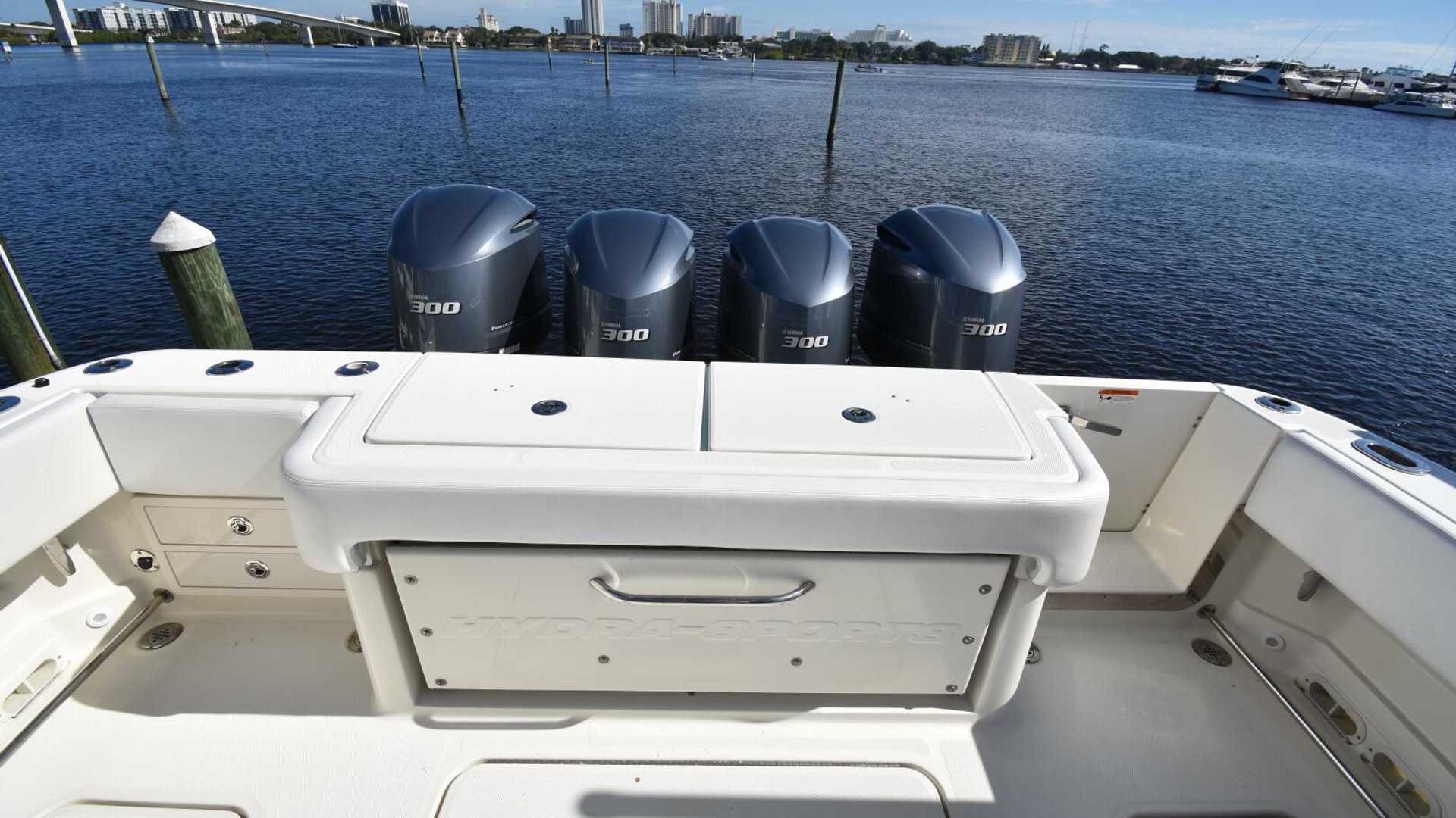 2012 42 Hydra-Sports Sport Fish, “A-SALT WEAPON” repowered with very low hour Quad 2020 Yamaha F300s. Located in Daytona Beach, FL. This 4200 SF features a tower & upper station and is repowered with the ultra-dependable Yamaha F300s. Repowered in 2020 which resulted in increased fuel economy. Engines currently Have 105 hours, completed service and Y.E.S. extended warranty until November 2025. This lightly used 4200 SF features Garmin Electronics, tons of seating, and abundant storage, and is in great shape! This tremendous offshore fishing platform is ready to go! Owner's plans have changed making this 4200 SF available now. Call today for more information on this center console or to schedule a showing!