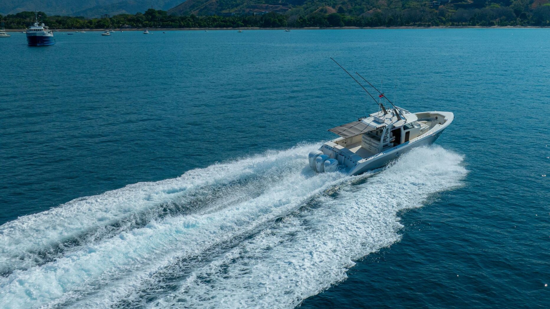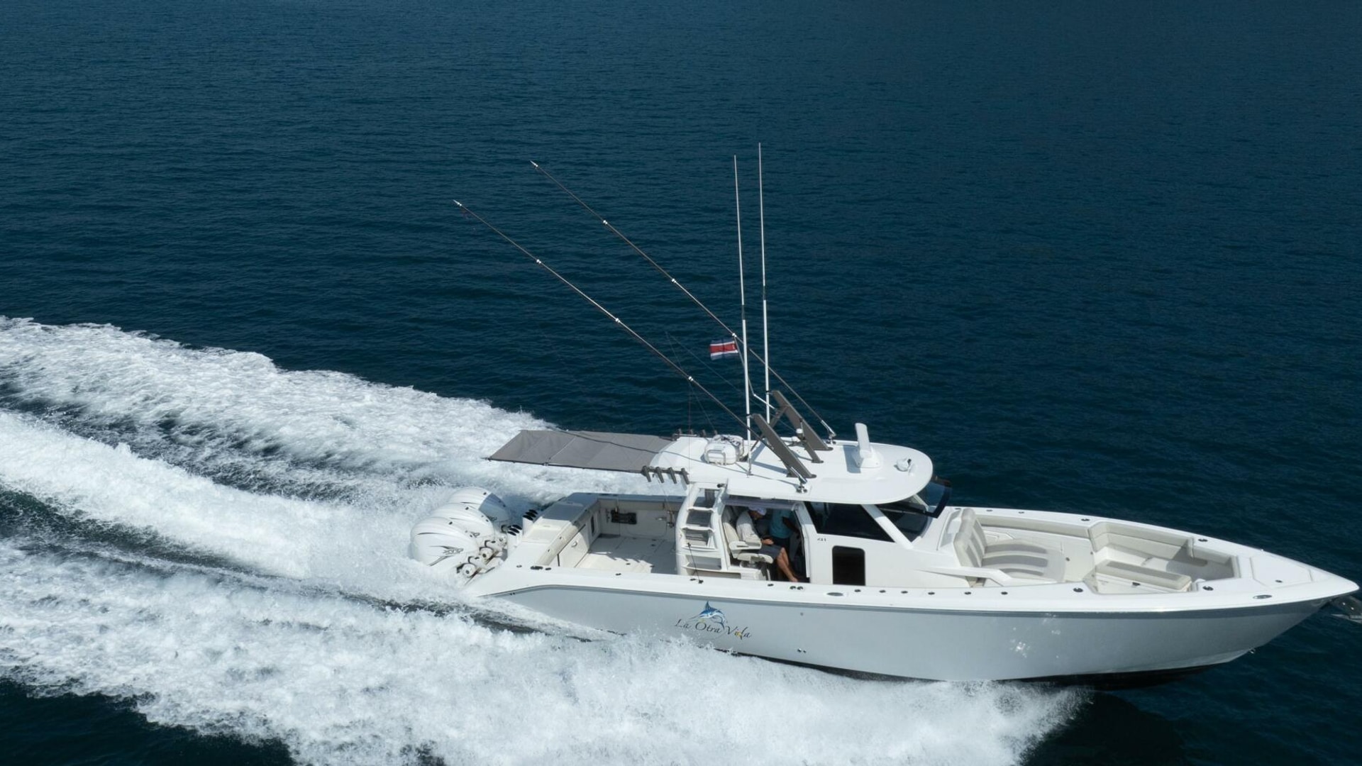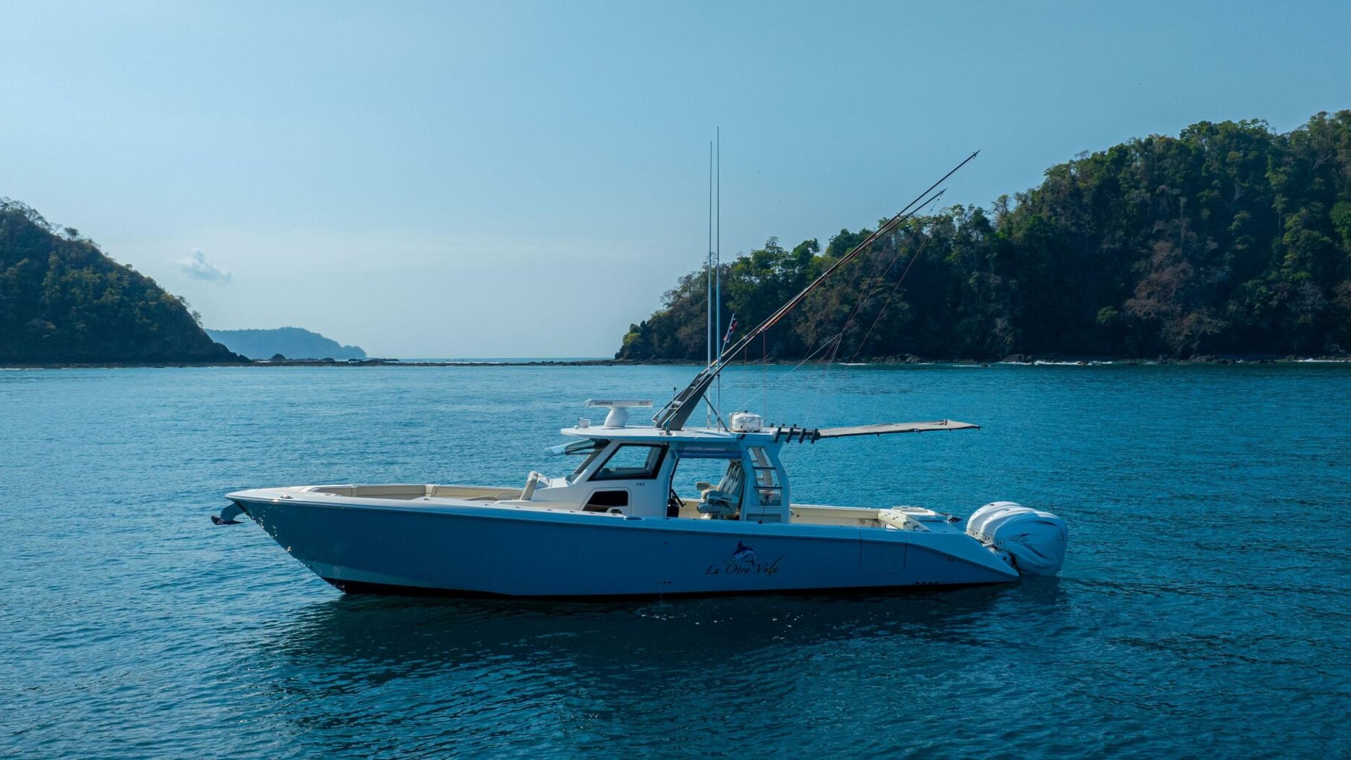 This 2021 41 Solace Center Console Boat - La Otra Vida, equipped with Triple Yamaha 425s, was built for ultimate performance and comfort, with an impressive list of options and thoughtful design that makes this the perfect platform for serious fishing, family cruising, and everything in between. Built by its original owner lots of thought went into making the 41 Solace an ultimate fishing machine. Loaded with extras like additional Gem Lux rod holders, Gem Lux 22’ out riggers, Tuna tubes, custom cutting board and most importantly a Quick X7 MC2 stabilizer.  La Otra Vida has been maintained with an open checkbook and full time crew. She is located in the beautiful Los Suenos Resort and Marina, Central Pacific Costa Rica.  It’s a must see and ready to go to its next owner.