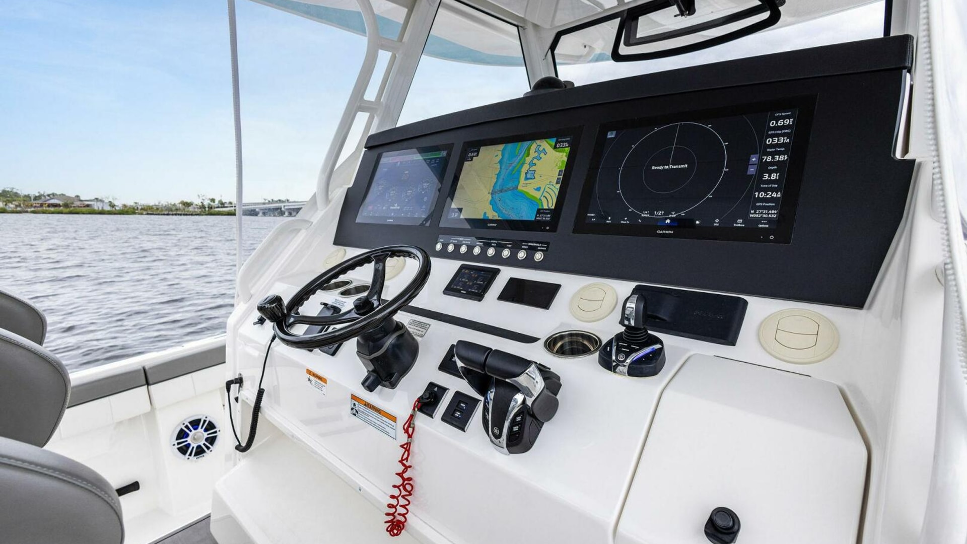- Full GOST System with Sensors at Cowling Covers & Door, High Water Alarm and Helm Laser Beam