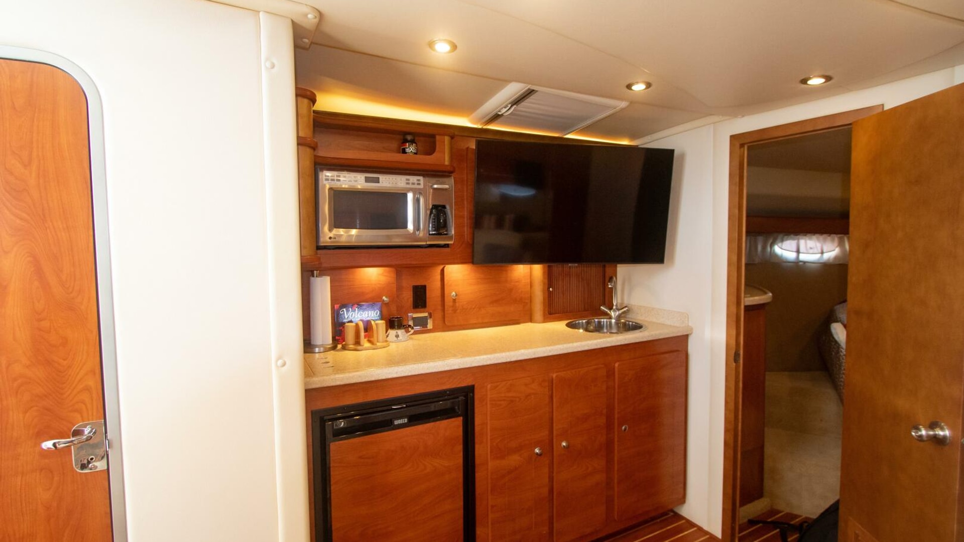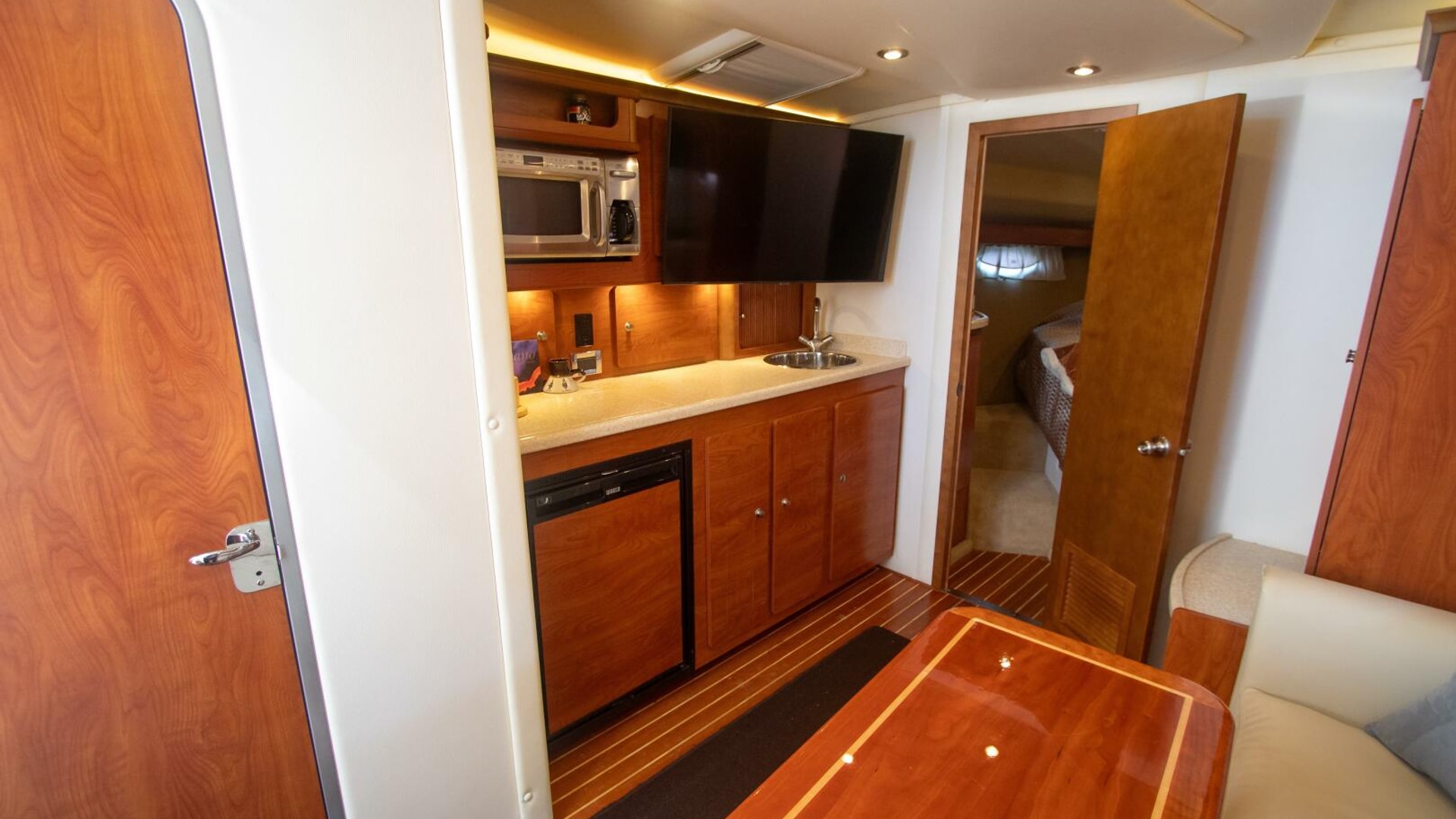 - Cockpit Wet Bar w/Sink/Ice-Maker/Refrigerator/Drop-Down LCD-Television