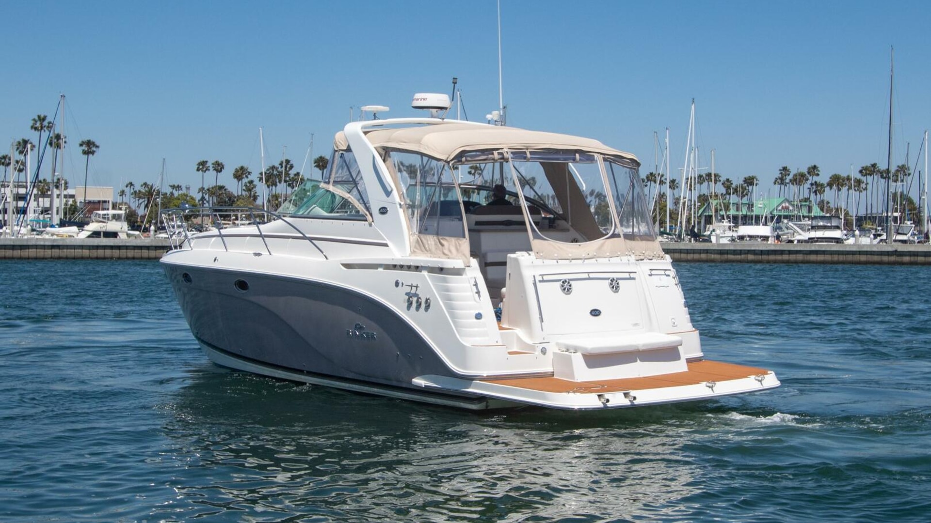 This 2008 Rinker 400 Express Cruiser (called the 390 Express Cruiser when she was introduced in 2006), a value- priced sterndrive cruiser loaded with standard features. Like all Rinker boats, she rides on a modified-V hull with moderate beam and a solid fiberglass bottom. The 390/400’s tall freeboard results in an exceptionally spacious interior with nearly seven feet of cabin headroom. If you are looking for a large cruiser, you need to take a look at this vessel - it is loaded right from the factory with all the extras that make cruising fun. Twin Merc 425, HARD TOP, air cond, generator, power windlass, lots of electronics - a HUGE AFT CABIN ! This layout is an excellent use of space that competes with any other cruiser in its size range or even a few feet larger. Call to schedule a showing today!