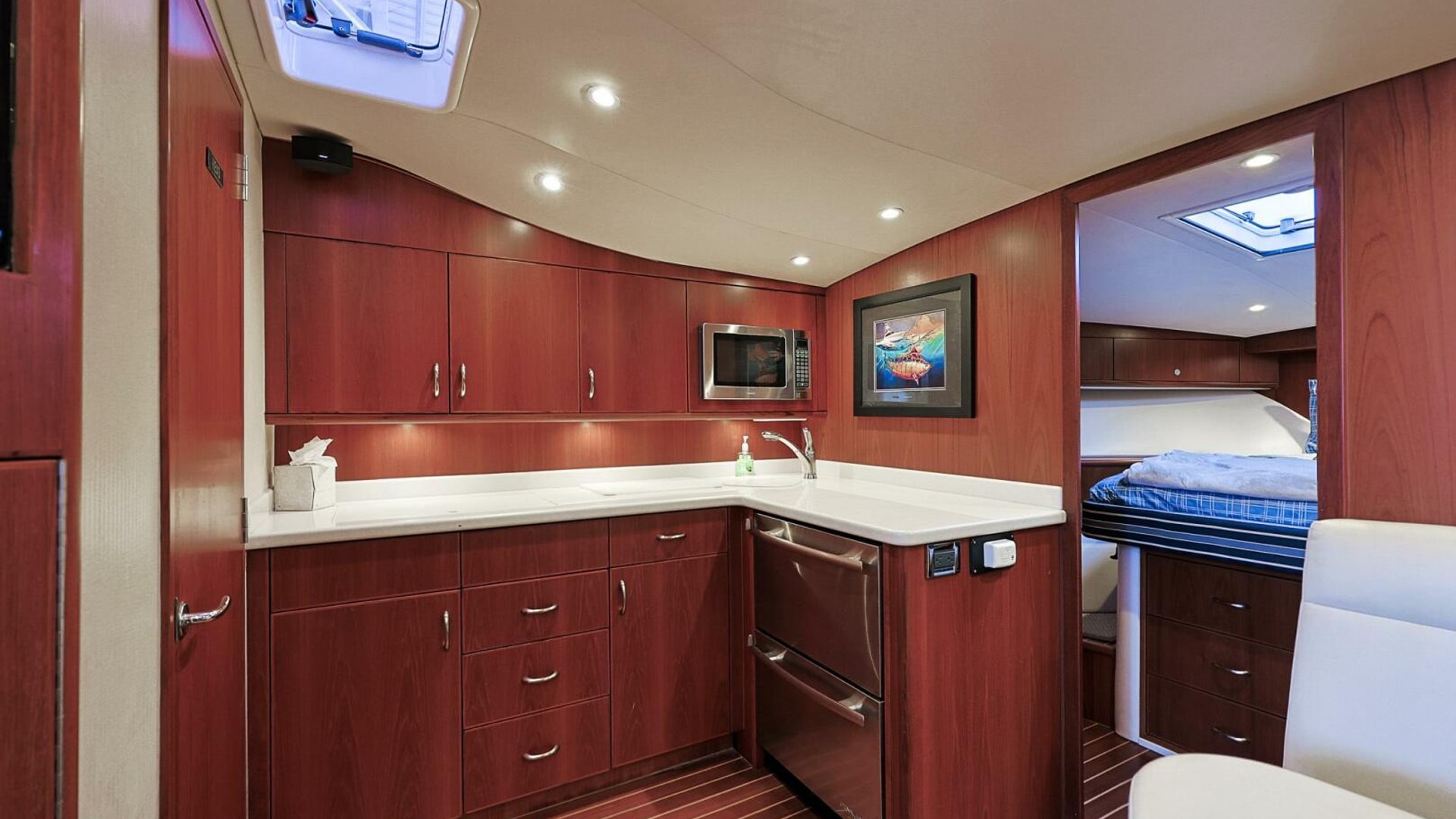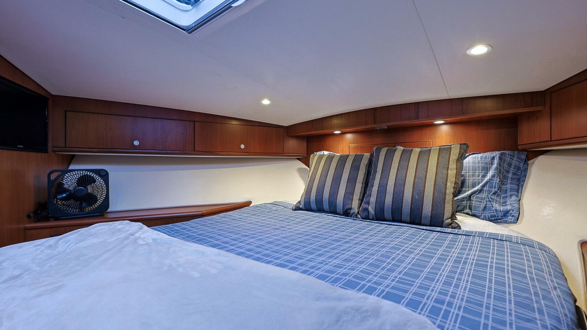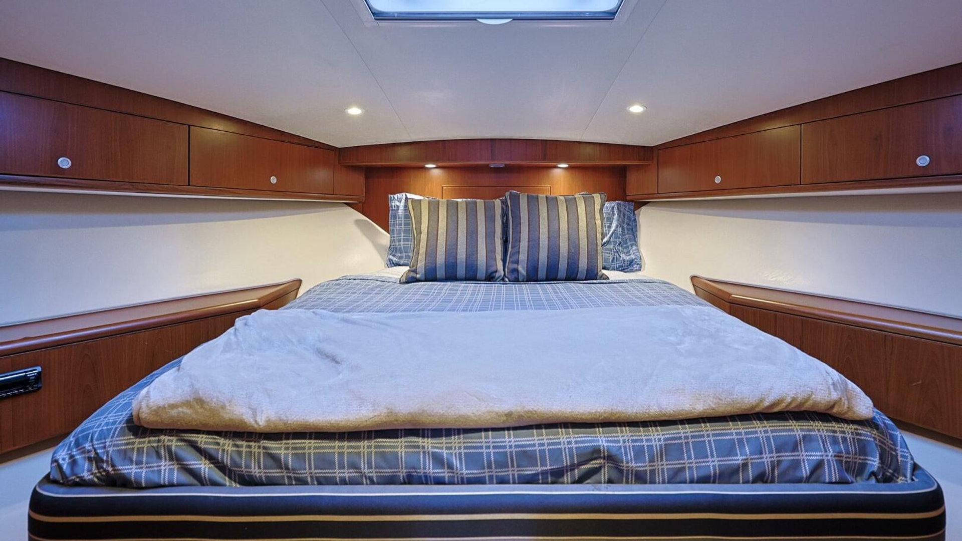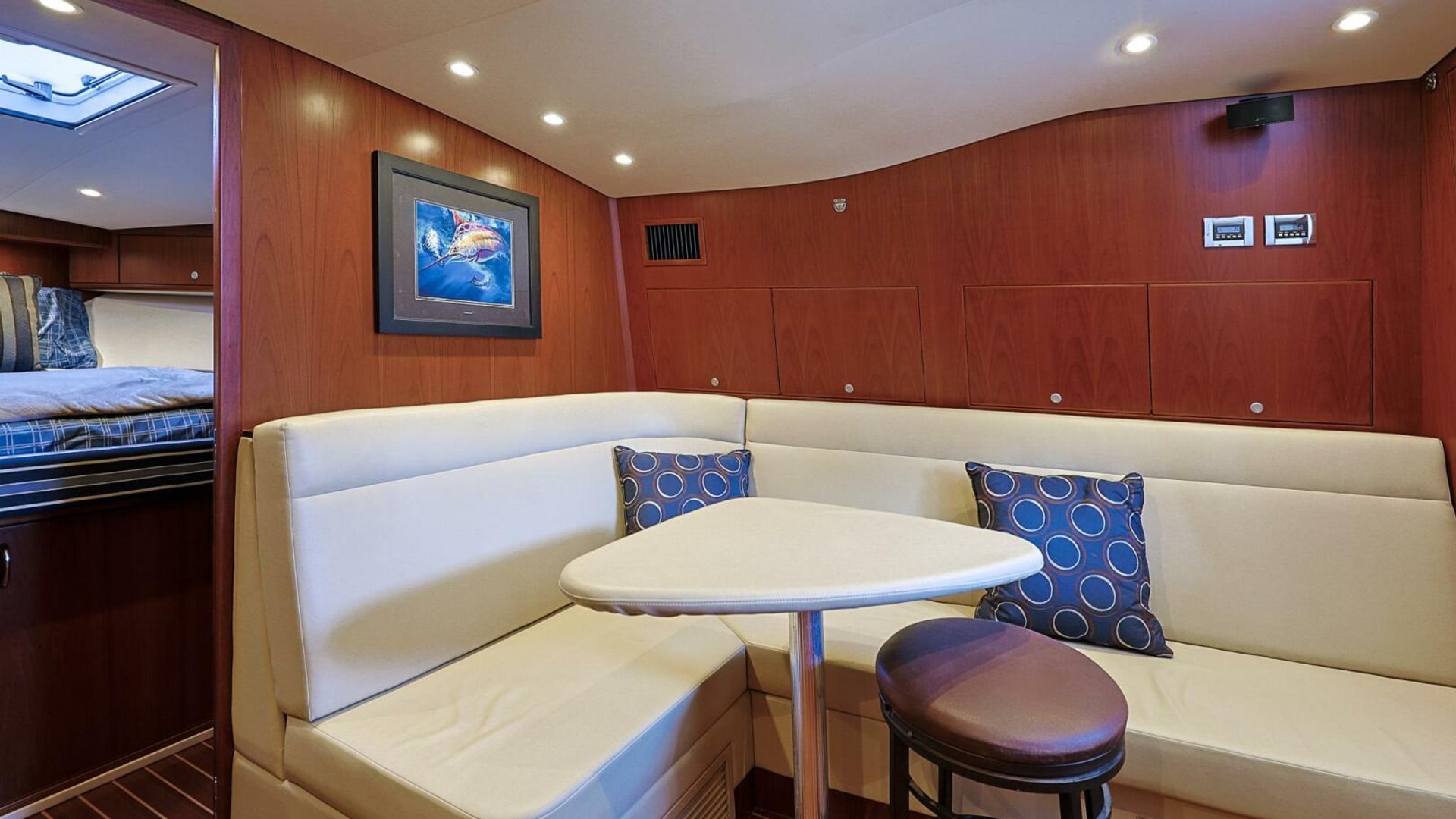 - Accommodations - The cabin of the 40 Hardtop Express showcases graceful spaciousness and refined comfort, which belie the boat's hard-core fishability. A starboard settee seats six and converts to upper and lower bunks when it's time to recharge overnight. Forward, the master stateroom features a large island double berth with ample drawer and locker space. The galley is fully equipped for fine cuisine, or just for feeding a hungry crew. A cedar- lined hanging closet provides additional stowage and, because CABO is all about fishing, lockers located port and starboard can hold up to ten rods. An optional layout featuring a second stateroom on the starboard side is available for extra privacy when hosting larger crews.