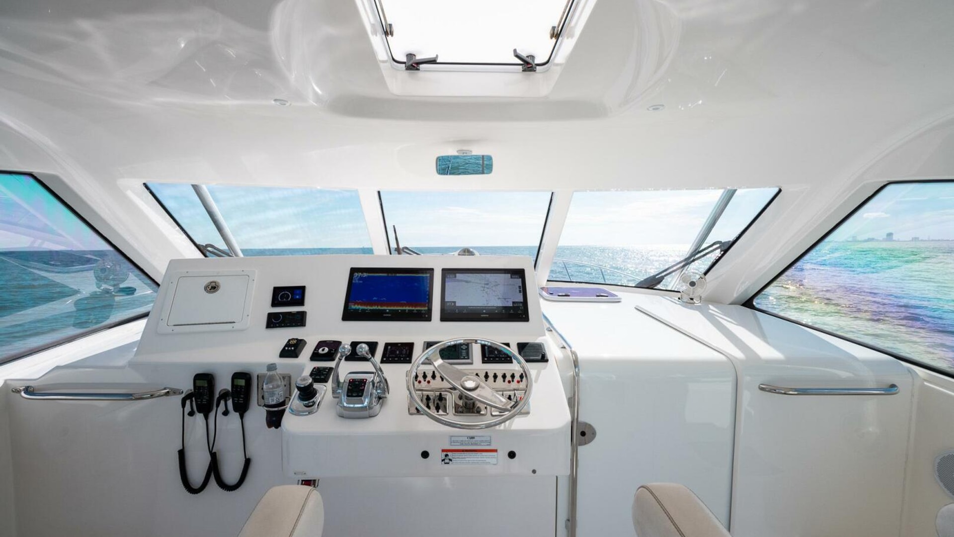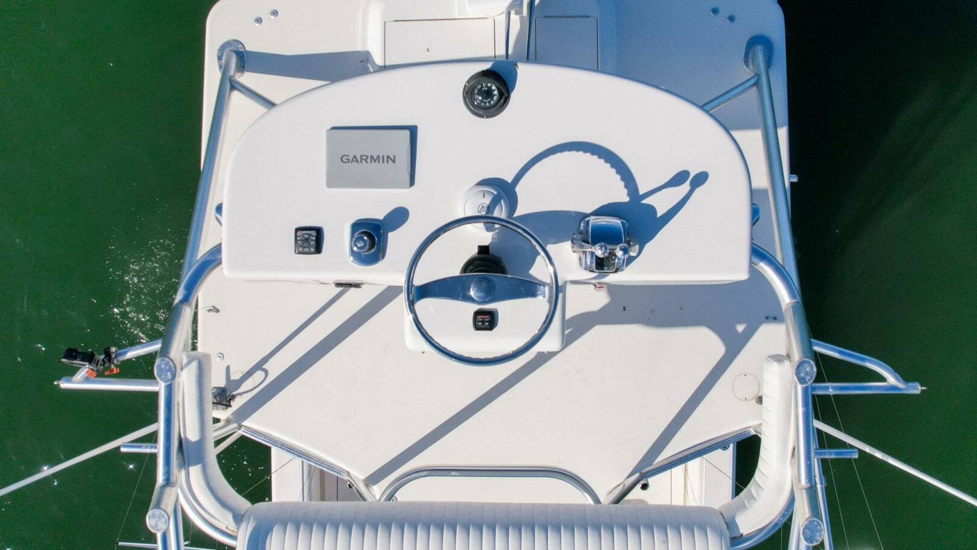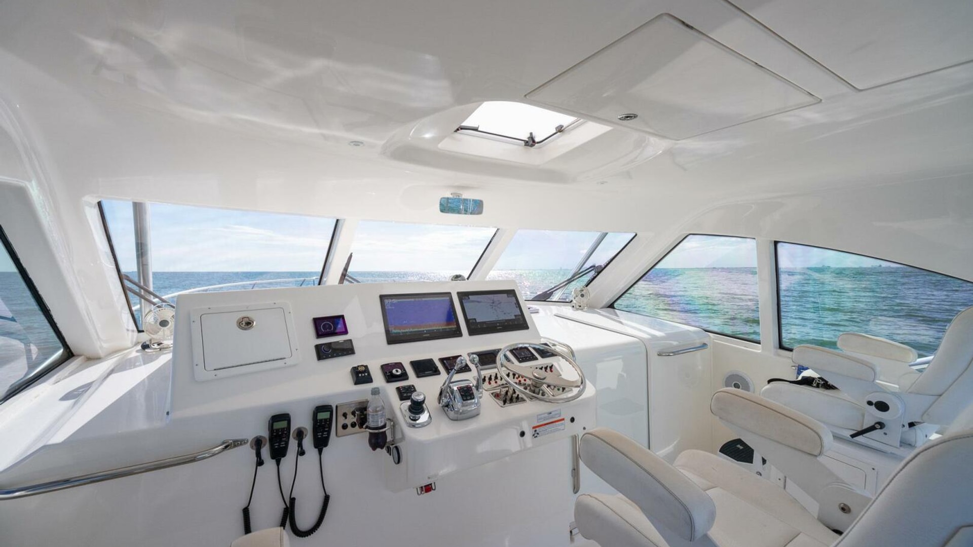 - Molded fiberglass helm deck, hydraulically lifted with cockpit control unit