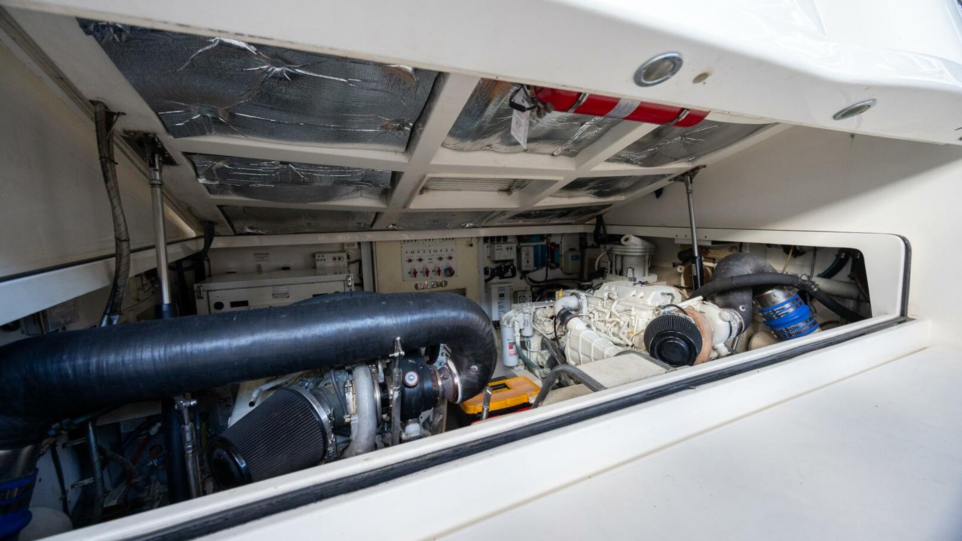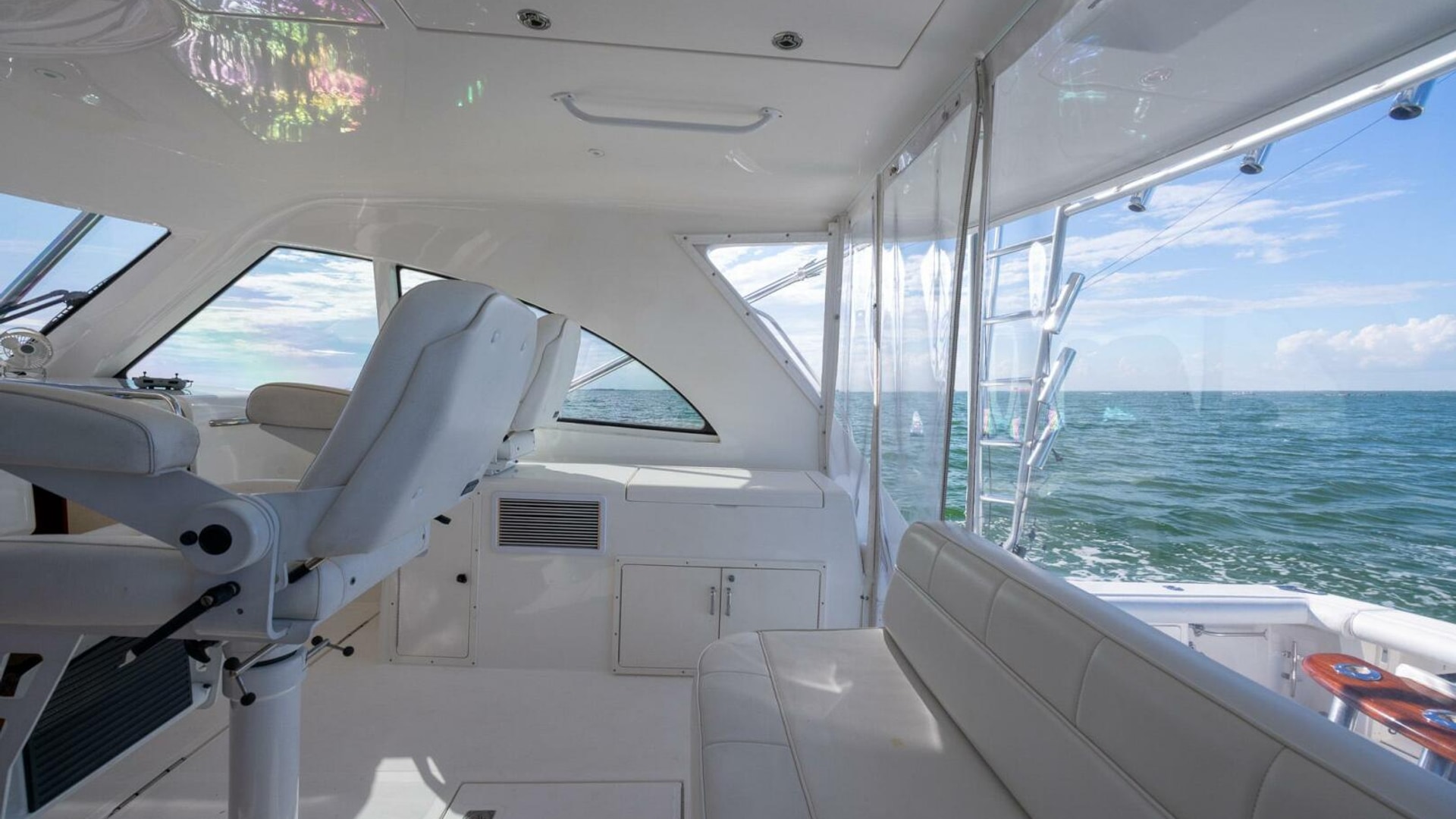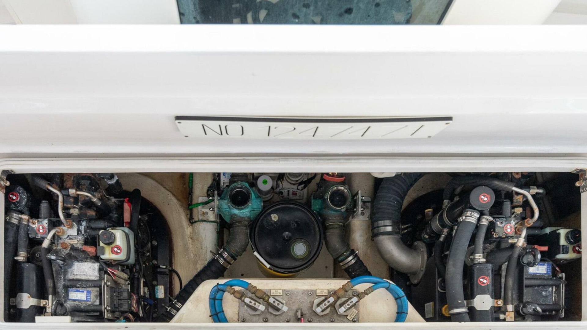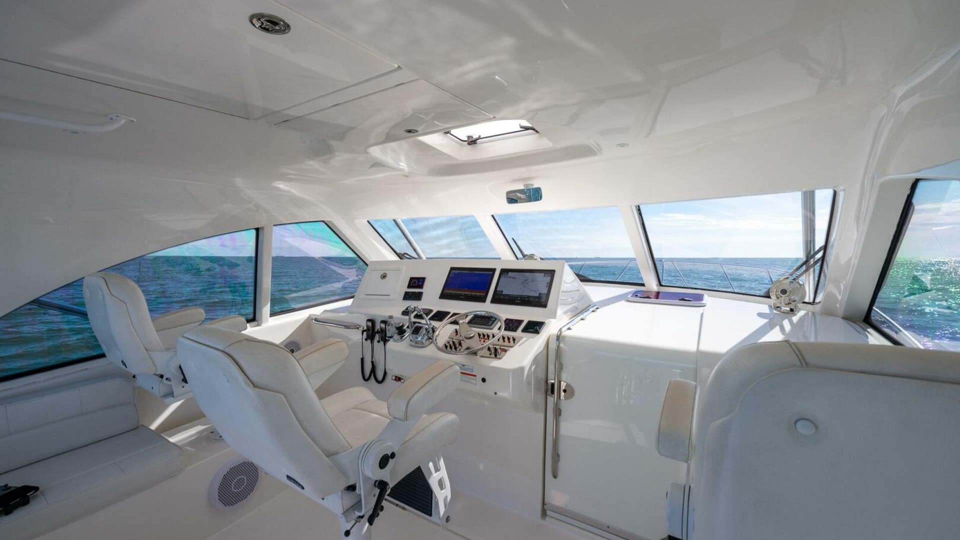 - Molded fiberglass helm deck, hydraulically lifted with cockpit control unit