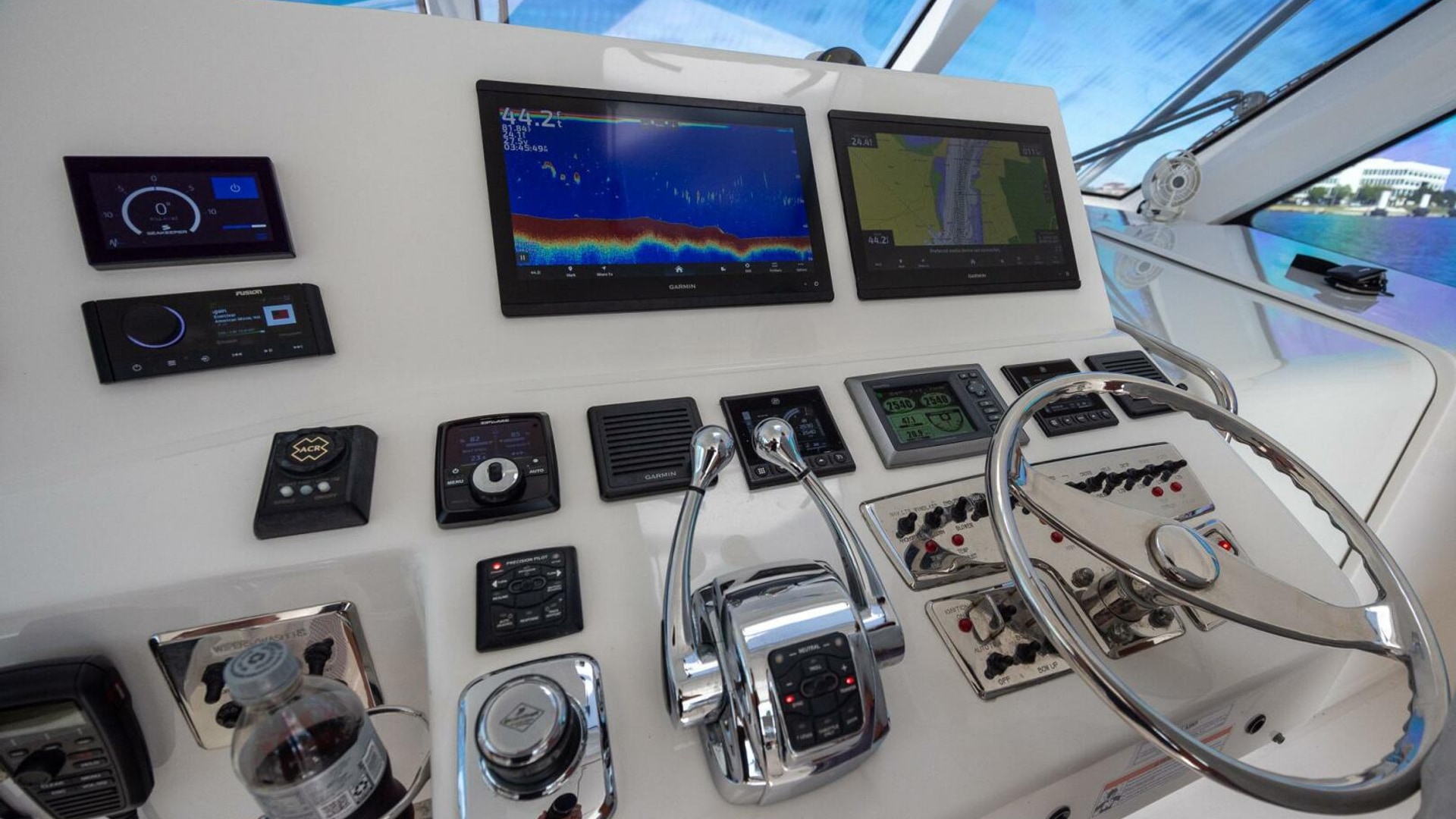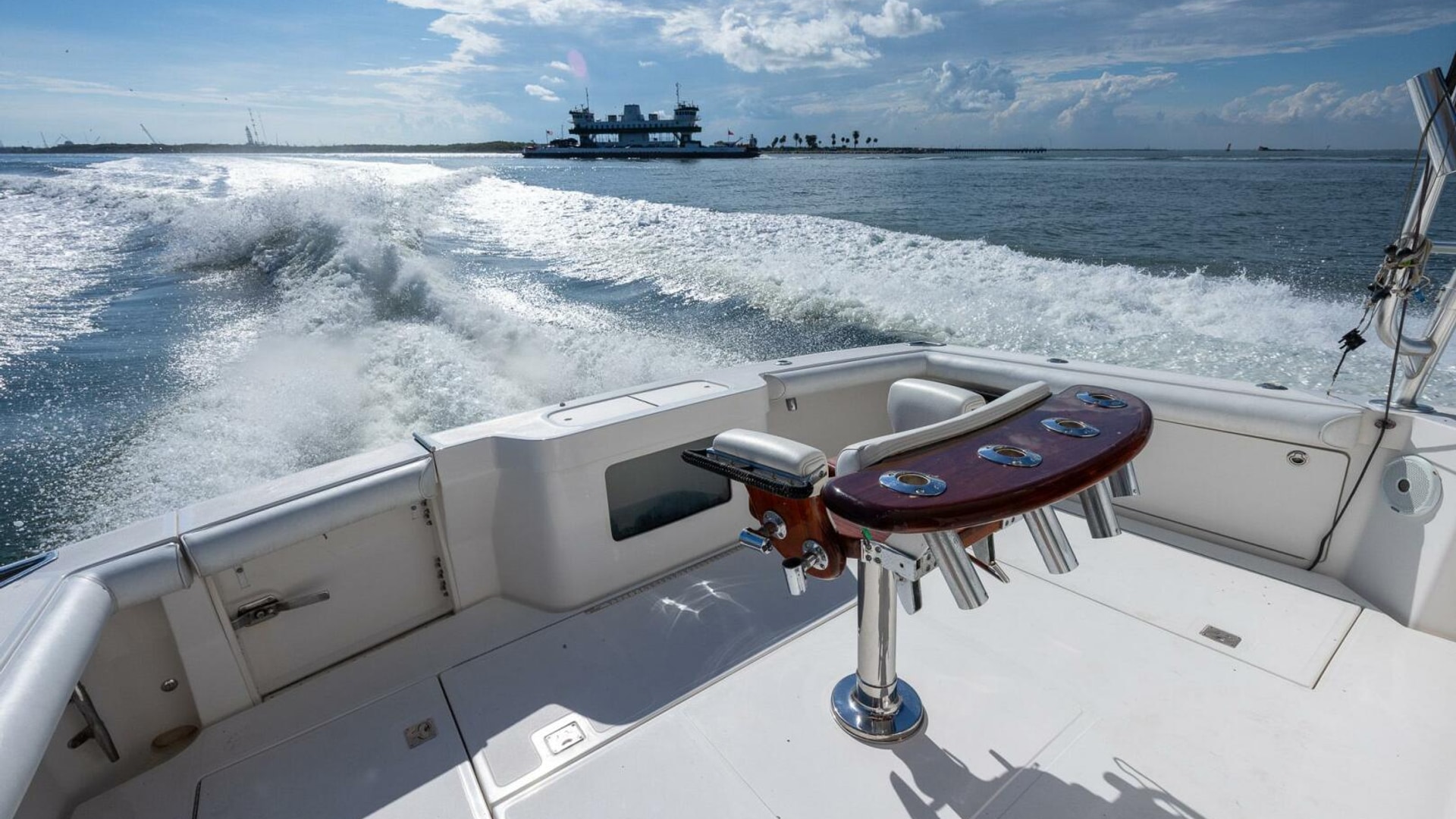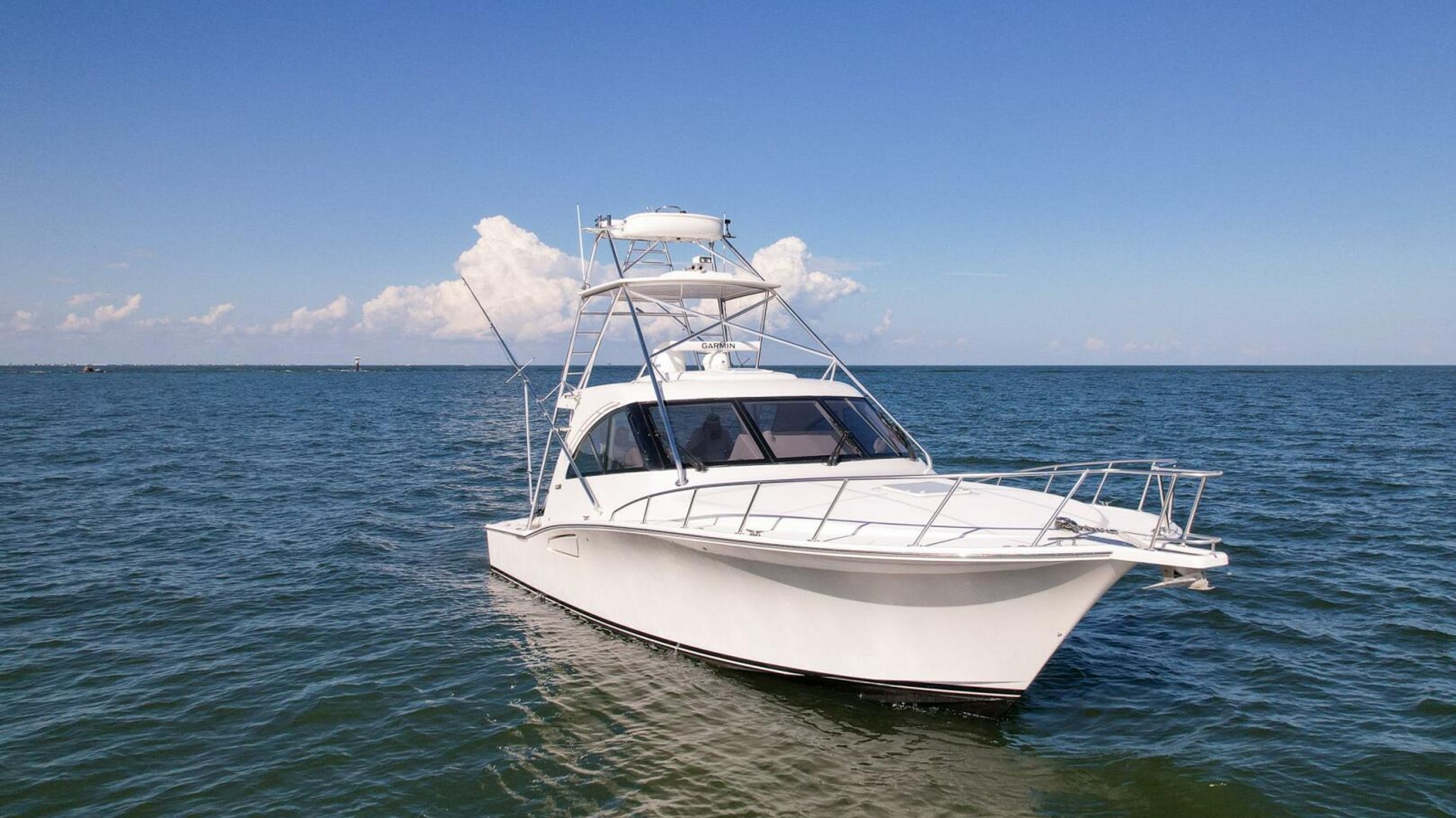 “True Story” is the total package and is equipped for serious offshore action and maintained to impress. She features a full suite of updated Garmin electronics, including dual touchscreen displays, radar, autopilot, and CHIRP sounder for pinpoint fish-finding and navigation. Zipwake dynamic trim tabs deliver a smoother, more efficient ride, while the custom tower with full controls adds elevated visibility when chasing fish. A Seakeeper gyro ensures unmatched stability at sea, and the teak fighting chair for serious sportfishing. Stored in a covered slip, she stands out with her clean lines, clean finish, and overall excellent condition. A true standout in the express sportfish market—turnkey and tournament-ready.