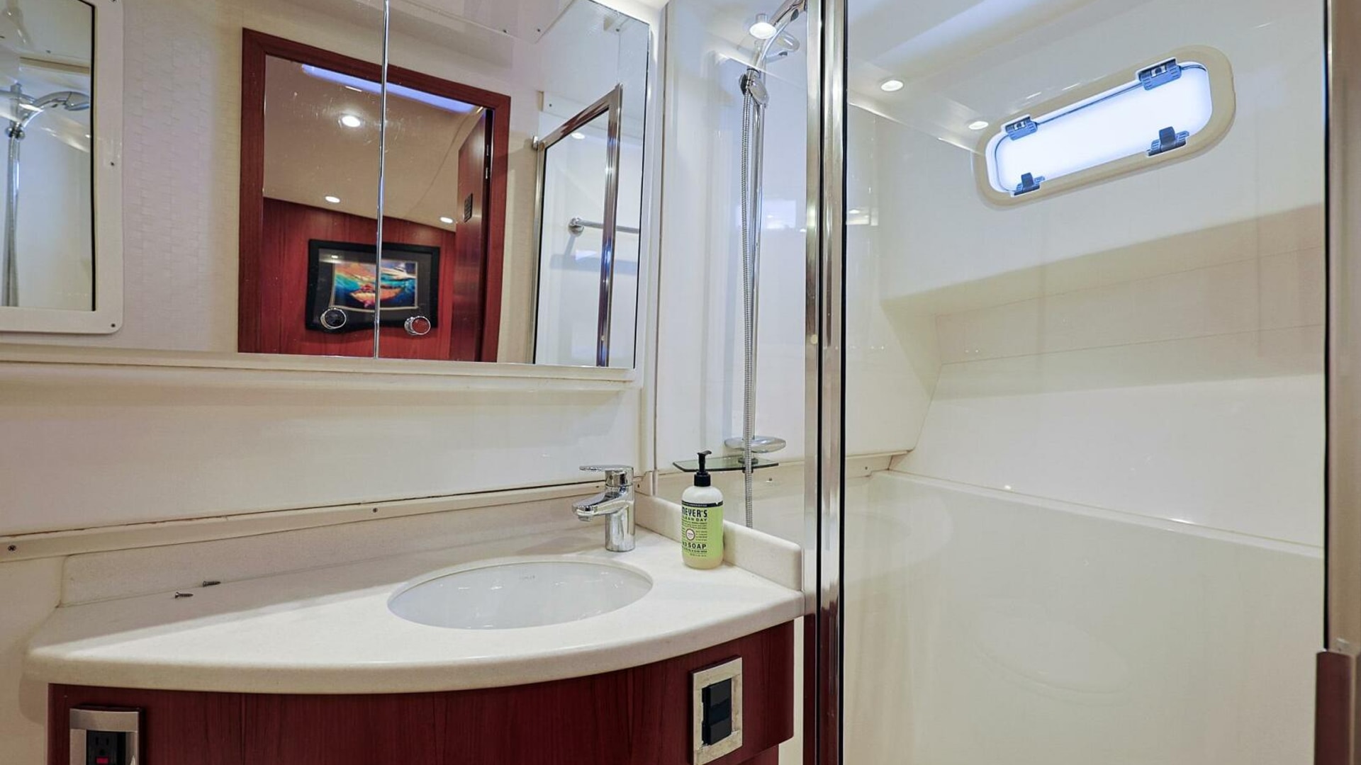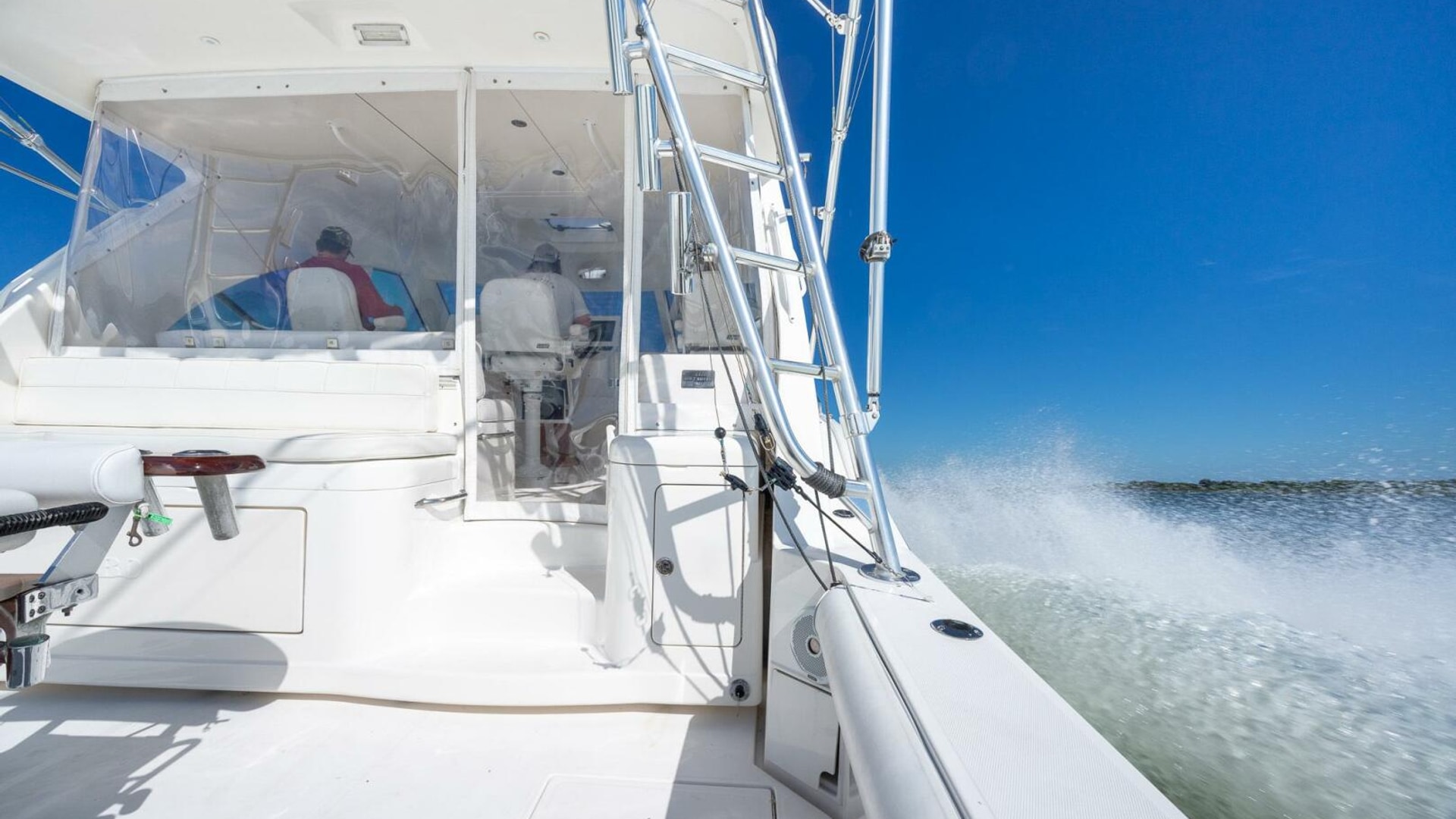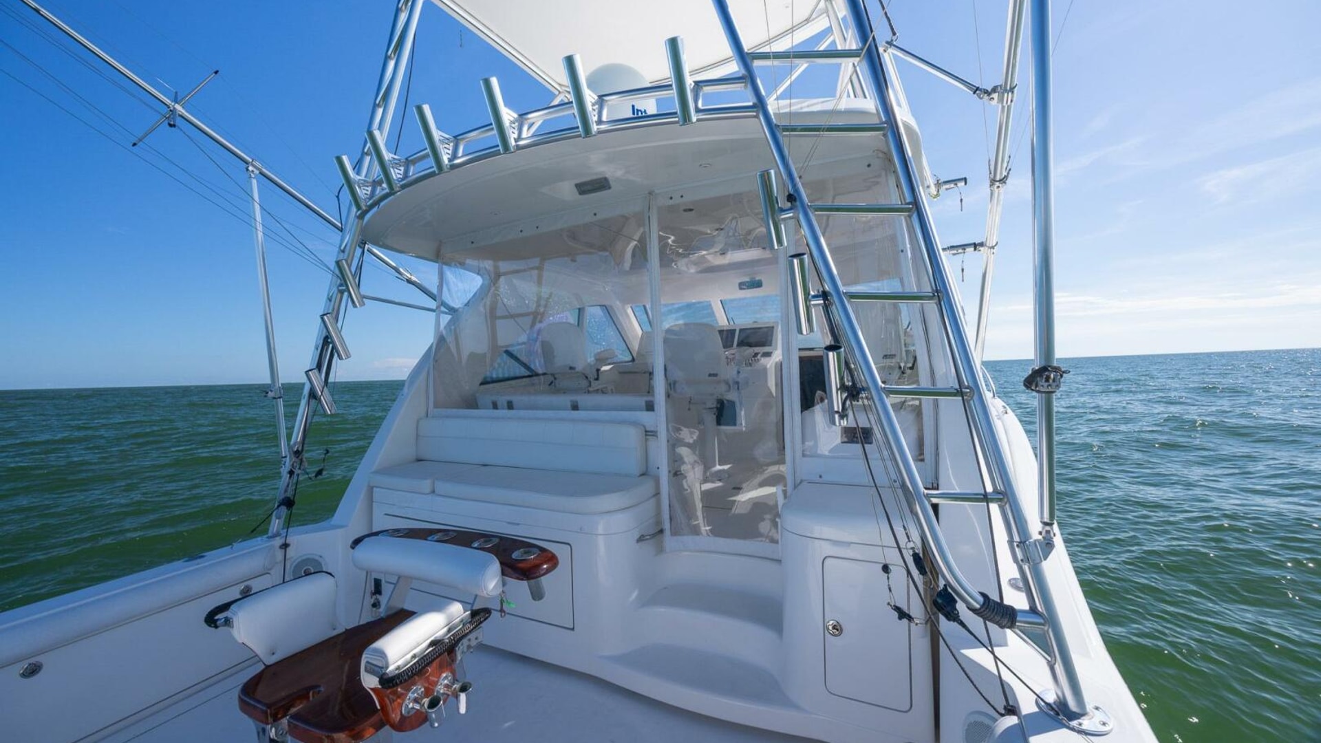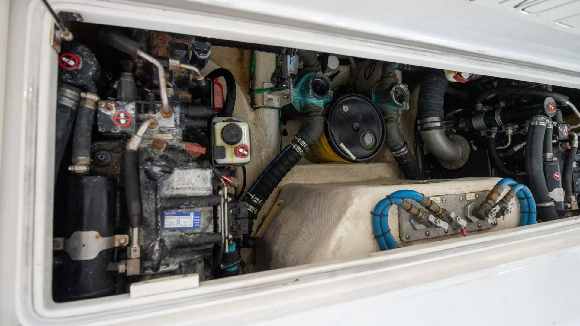 “True Story” is the total package and is equipped for serious offshore action and maintained to impress. She features a full suite of updated Garmin electronics, including dual touchscreen displays, radar, autopilot, and CHIRP sounder for pinpoint fish-finding and navigation. Zipwake dynamic trim tabs deliver a smoother, more efficient ride, while the custom tower with full controls adds elevated visibility when chasing fish. A Seakeeper gyro ensures unmatched stability at sea, and the teak fighting chair for serious sportfishing. Stored in a covered slip, she stands out with her clean lines, clean finish, and overall excellent condition. A true standout in the express sportfish market—turnkey and tournament-ready.