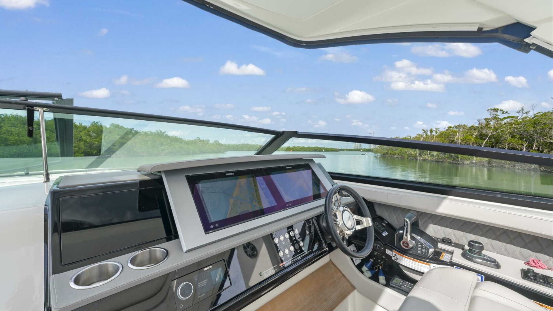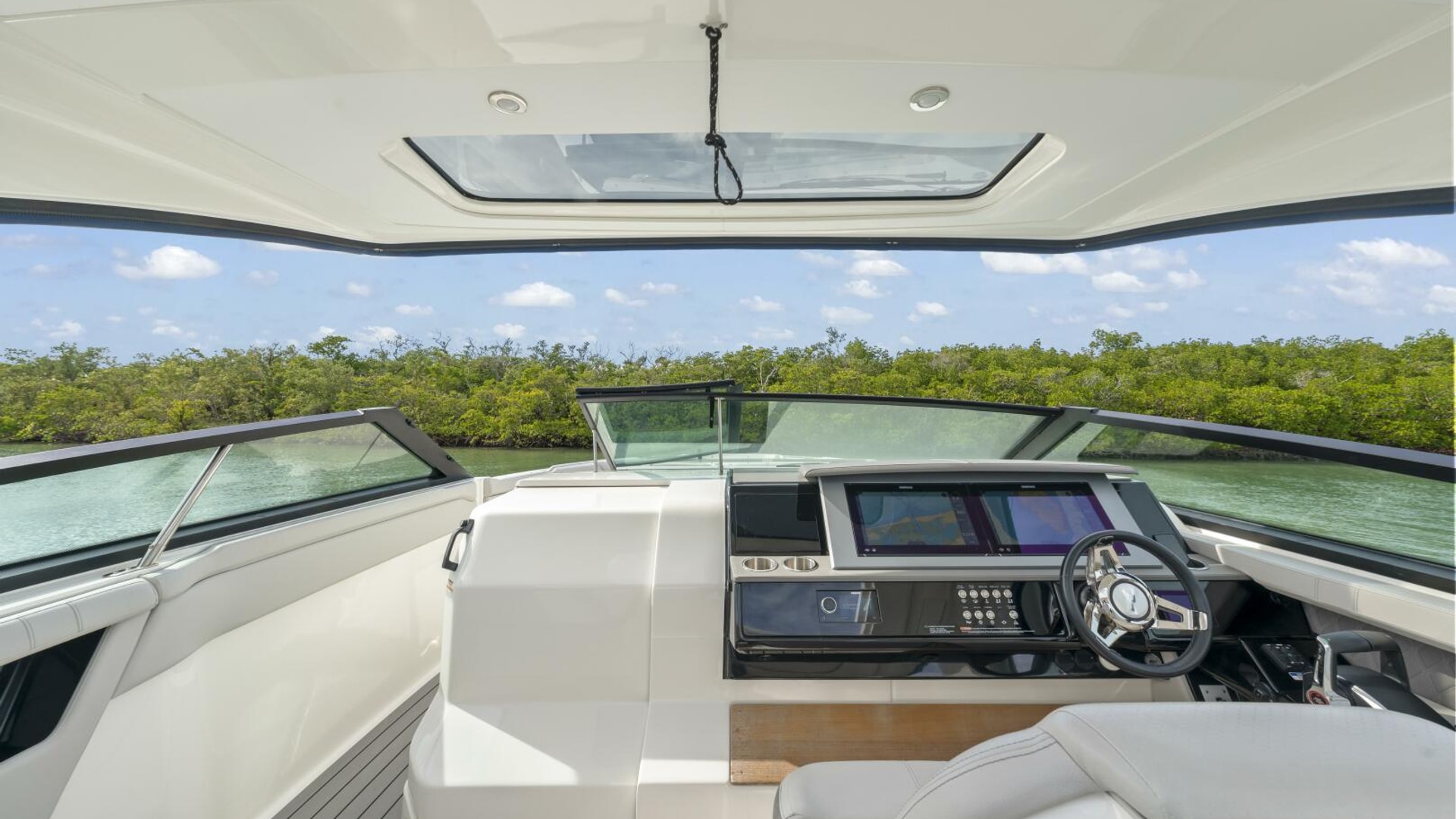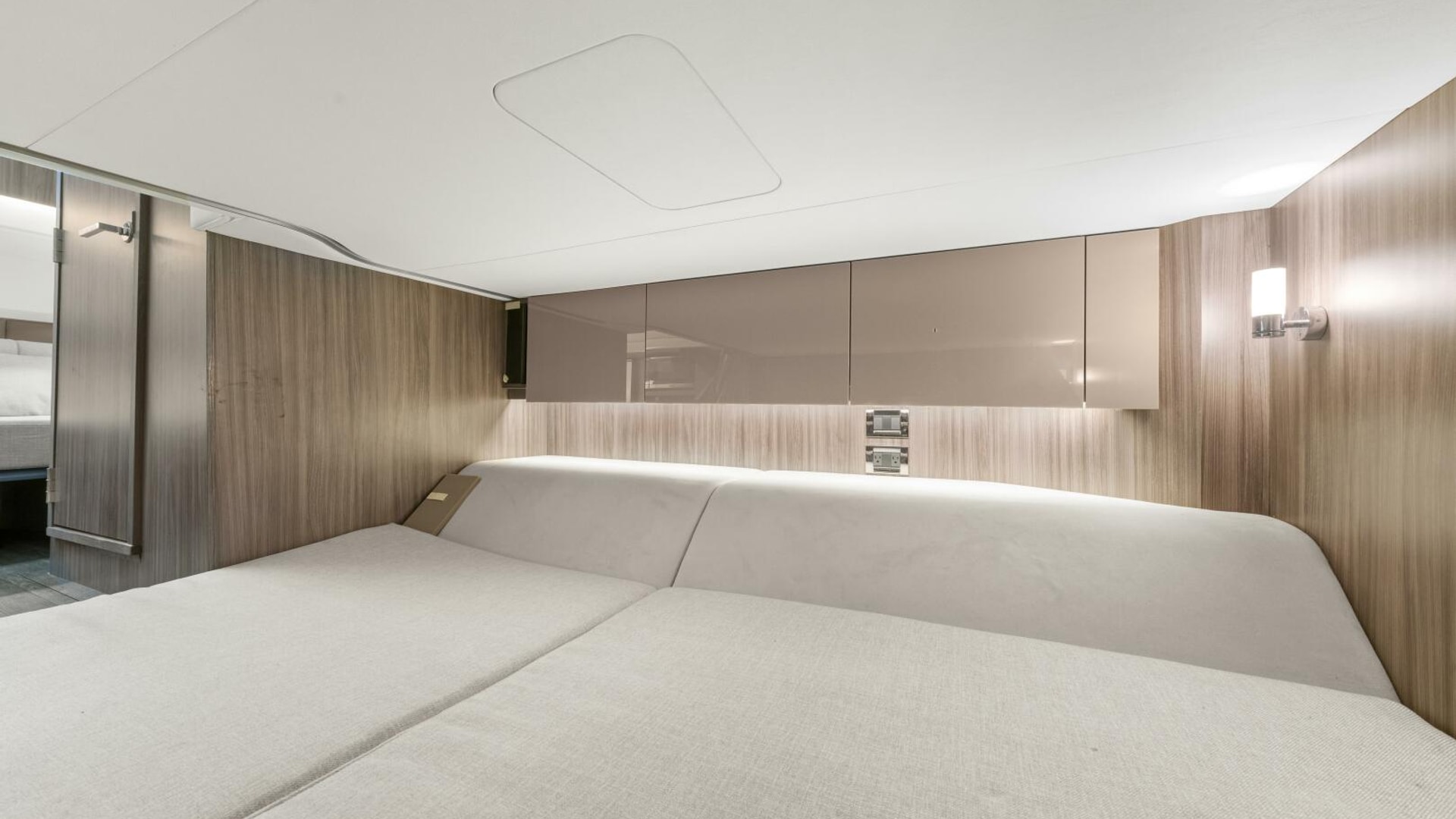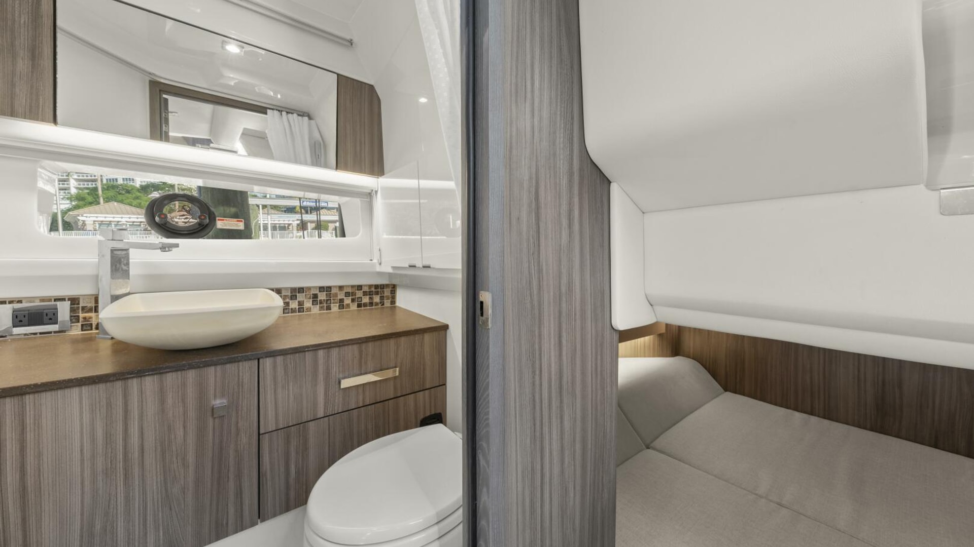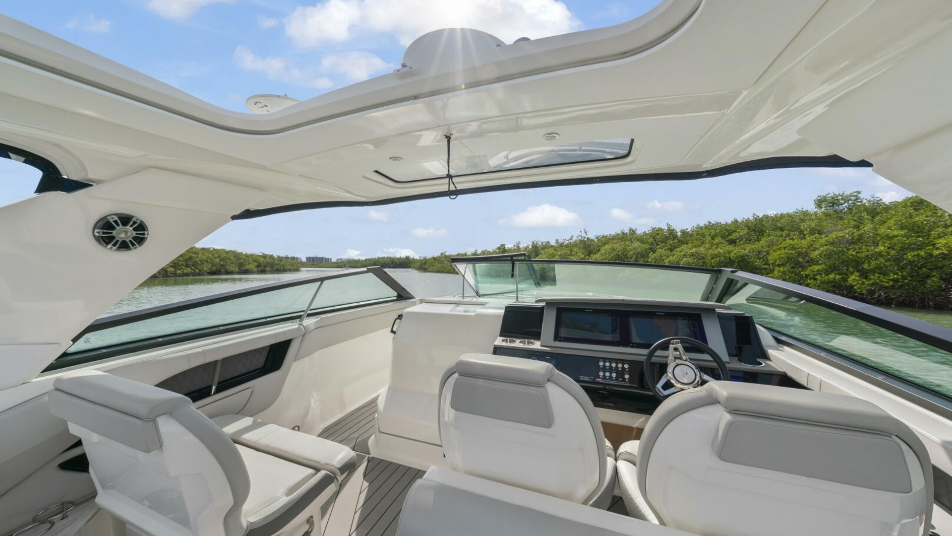 Excellence. An expansive cockpit social zone has a well-appointed wet bar with refrigerator, sink and available dual grills while the innovative fold-down swim terrace opens to extend the cockpit all the way to the water. Innovations, found throughout, include Joystick Piloting and Dual Digital Dash with standard 16” Simrad Touchscreen displays. Bring your friends... all of them. The SLX 400 Outboard has a generous cabin and expansive bow and cockpit seating. All of this and amenities for entertainment means hours and days of fun aboard this award-winning boat.