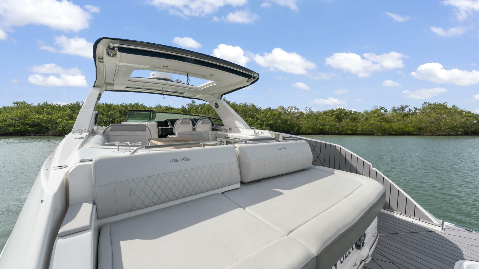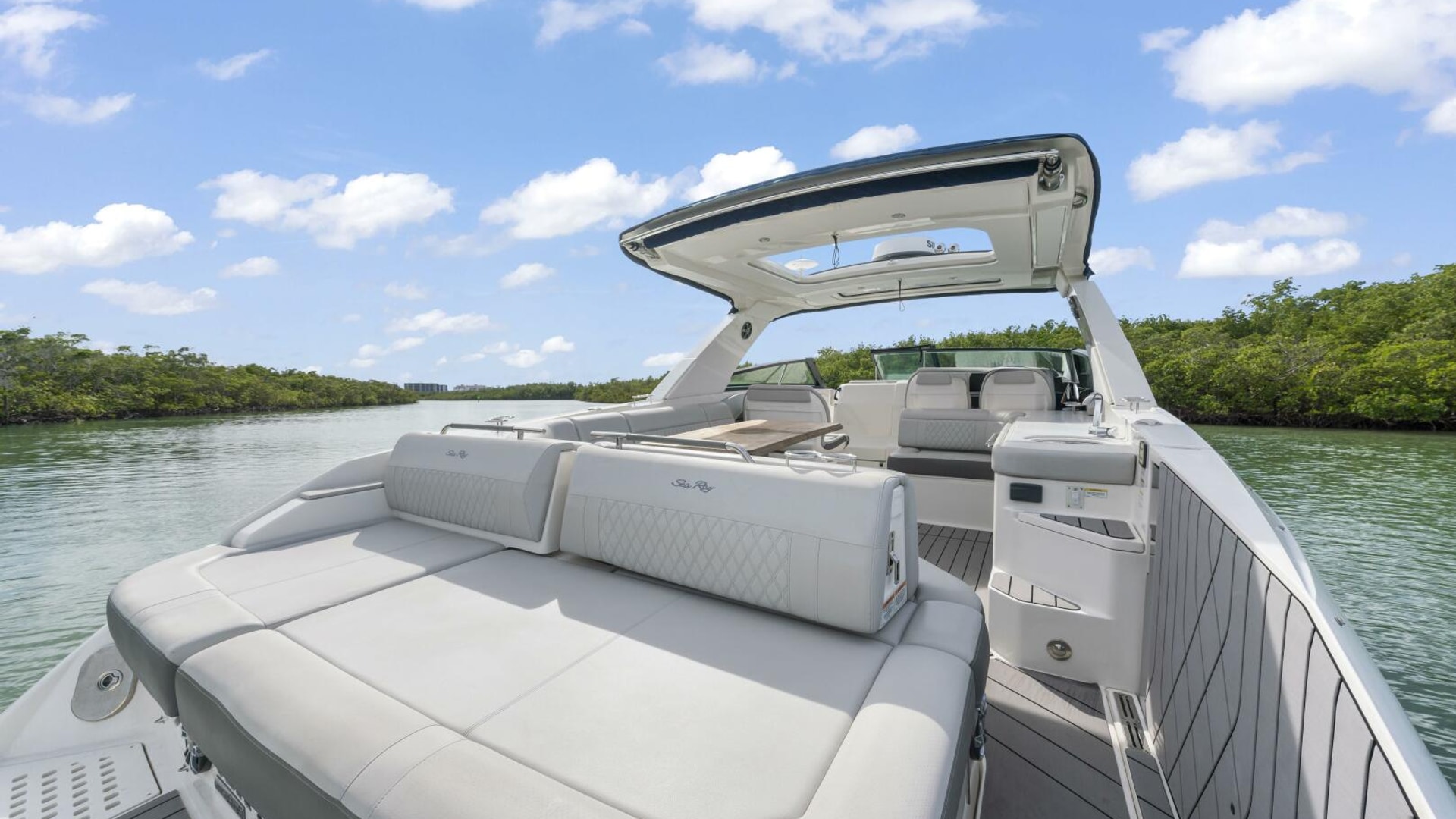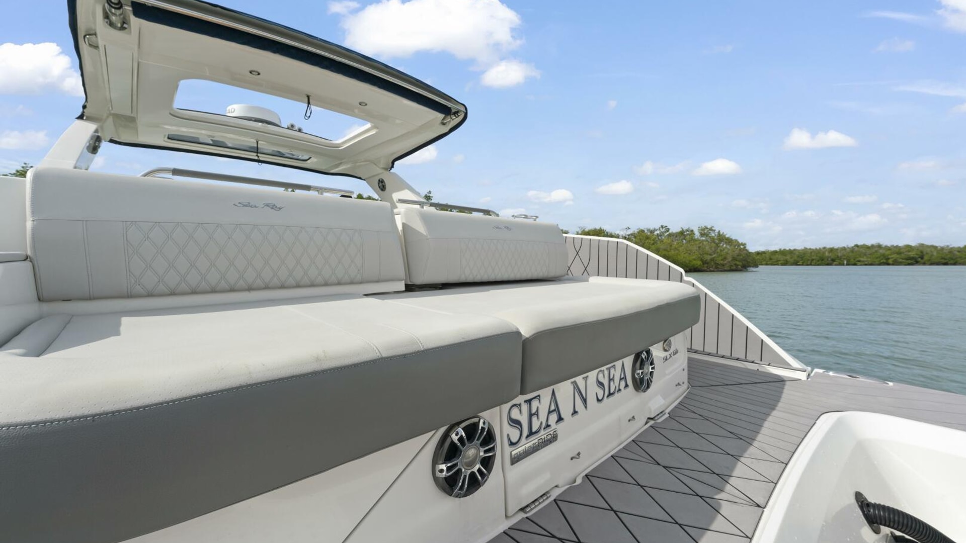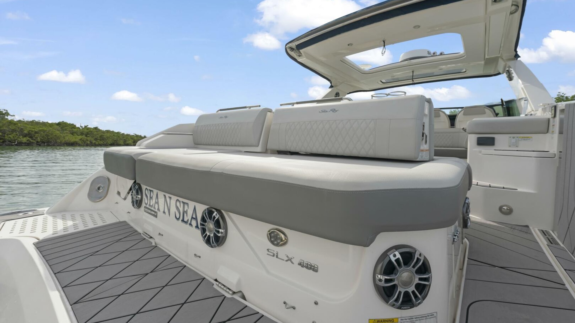 This Sea Ray 2022 SLX 400 Outboard "SEA N SEA" is an outboard variant with massive capacity, deluxe amenities, breakthrough design and incredible versatility for the total freedom to design your own adventure. From the ingenious fold-down swim terrace to the robust cabin, to the amenity-rich cockpit, the SLX 400 Outboard is the consummate entertainer and a superior all-around performer - and the epitome of Orchestrated