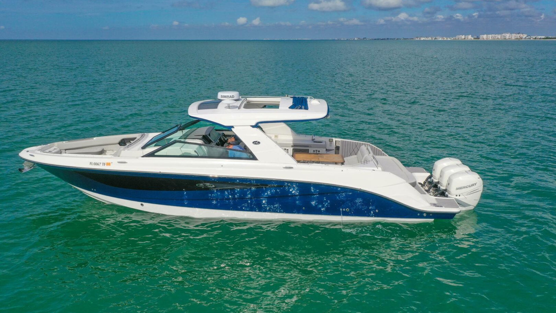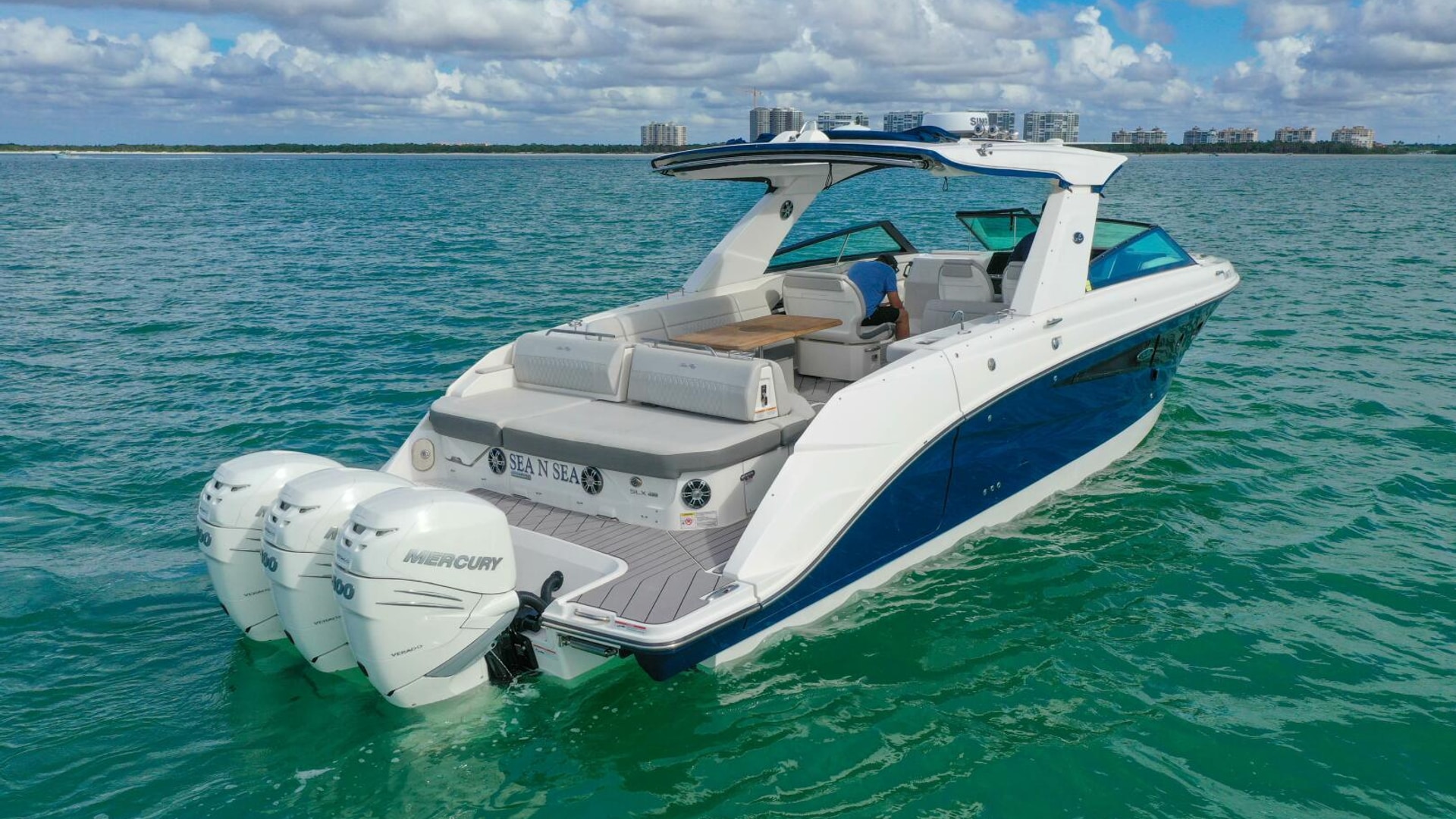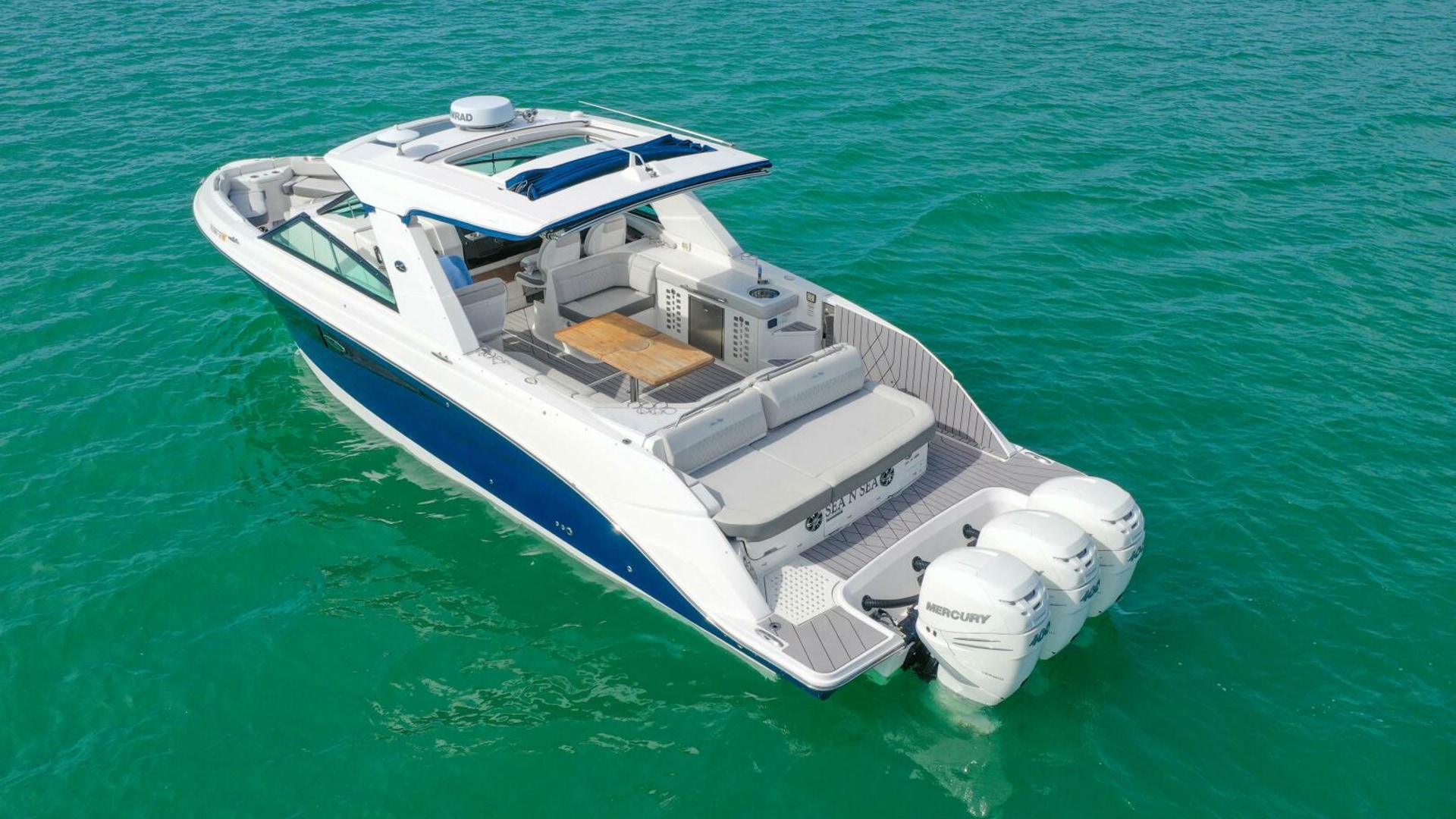 This Sea Ray 2022 SLX 400 Outboard "SEA N SEA" is an outboard variant with massive capacity, deluxe amenities, breakthrough design and incredible versatility for the total freedom to design your own adventure. From the ingenious fold-down swim terrace to the robust cabin, to the amenity-rich cockpit, the SLX 400 Outboard is the consummate entertainer and a superior all-around performer - and the epitome of Orchestrated