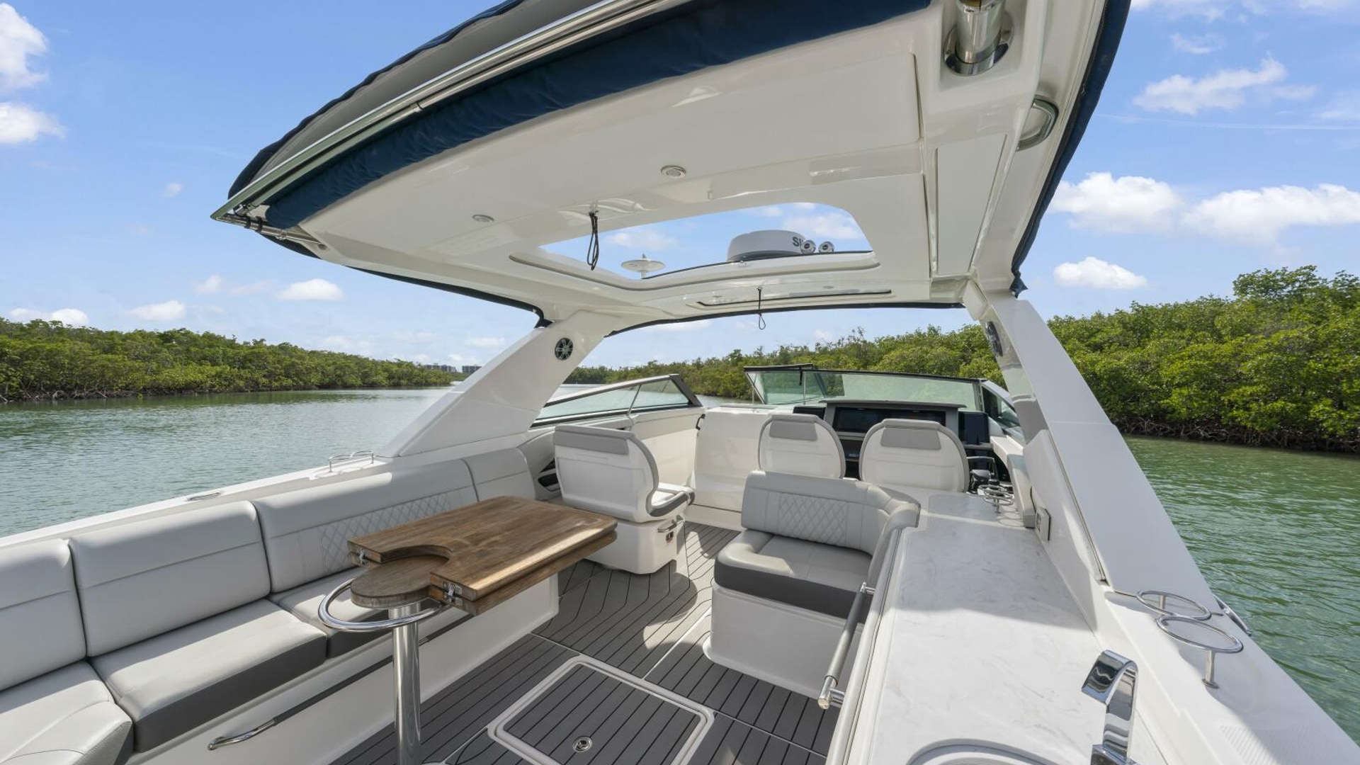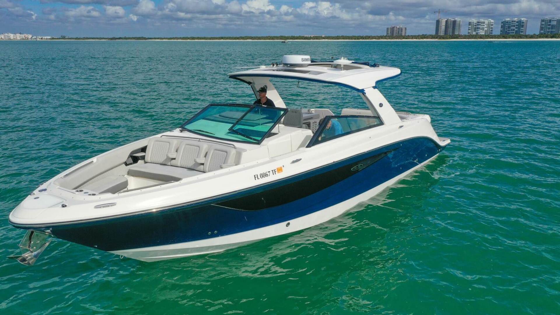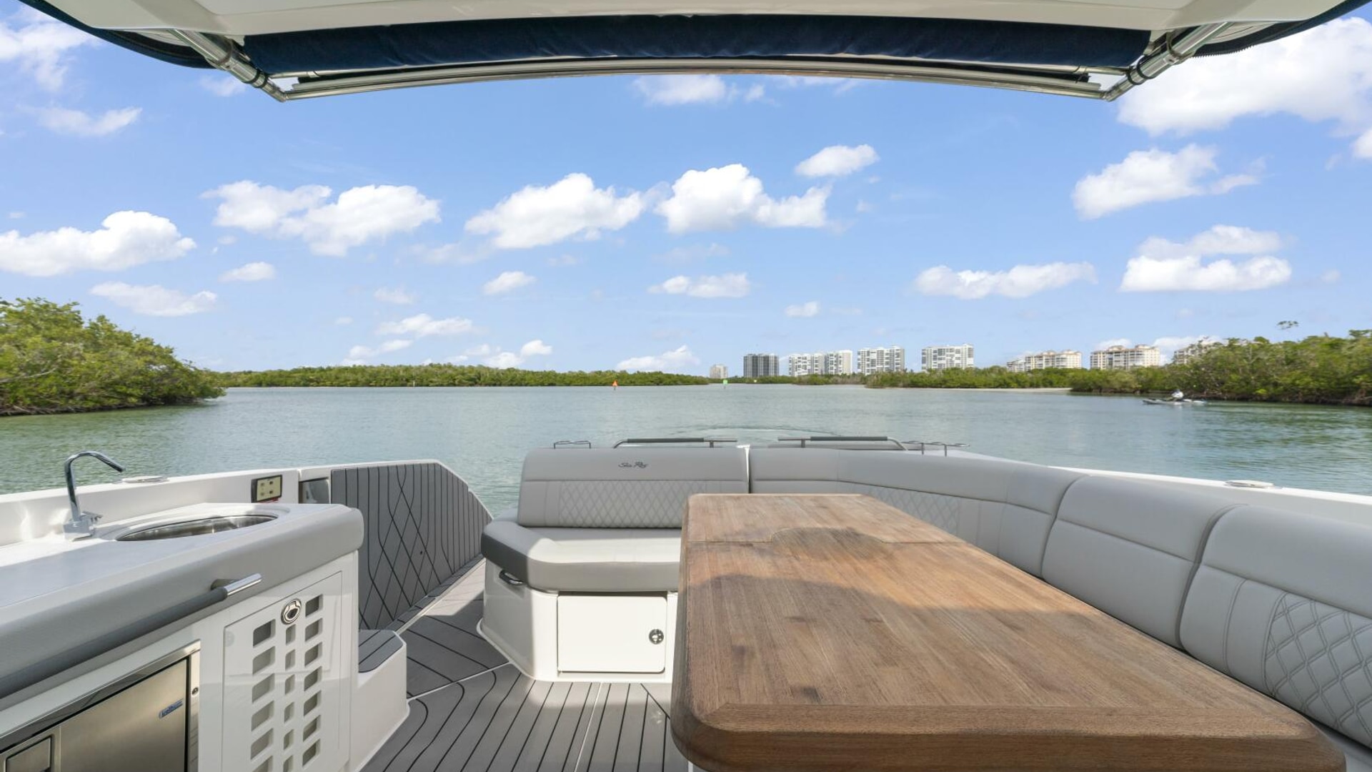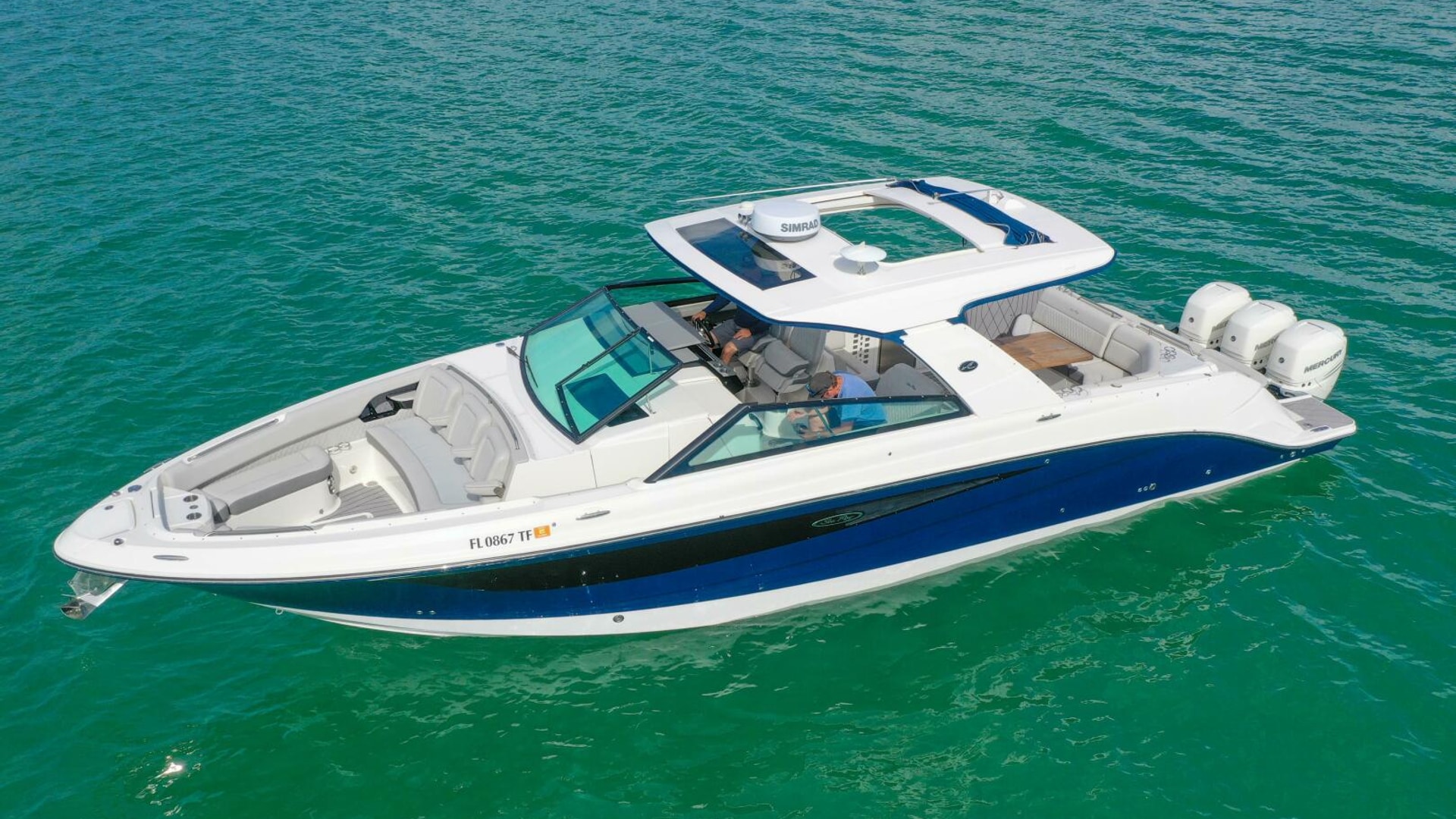 This Sea Ray 2022 SLX 400 Outboard "SEA N SEA" is an outboard variant with massive capacity, deluxe amenities, breakthrough design and incredible versatility for the total freedom to design your own adventure. From the ingenious fold-down swim terrace to the robust cabin, to the amenity-rich cockpit, the SLX 400 Outboard is the consummate entertainer and a superior all-around performer - and the epitome of Orchestrated