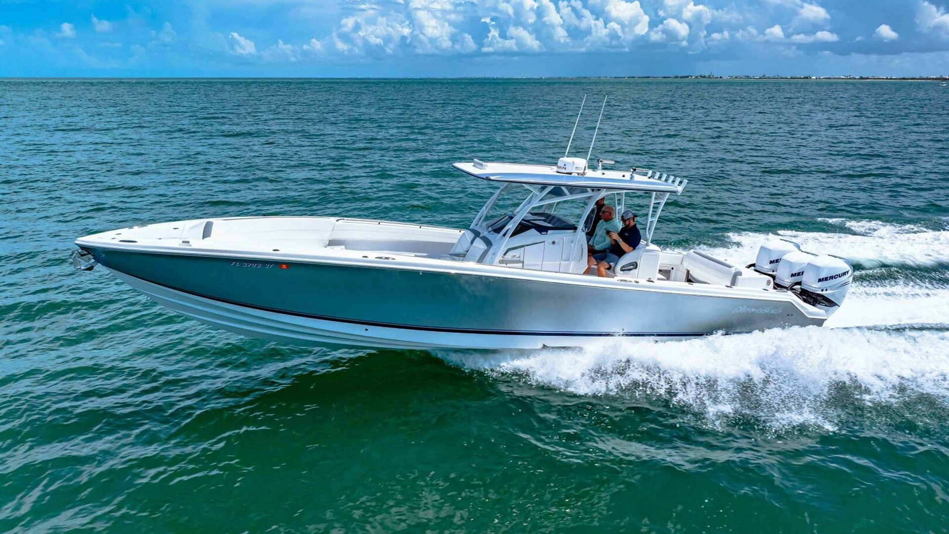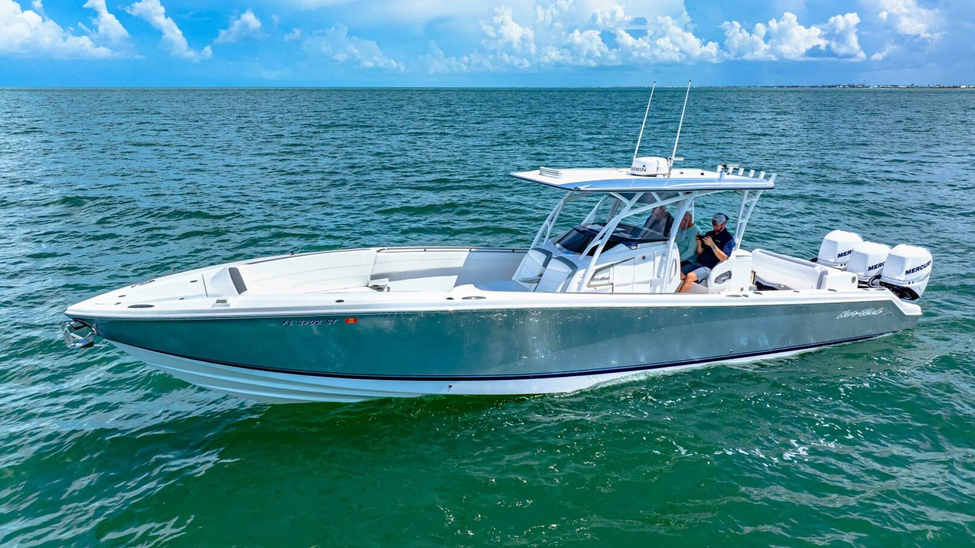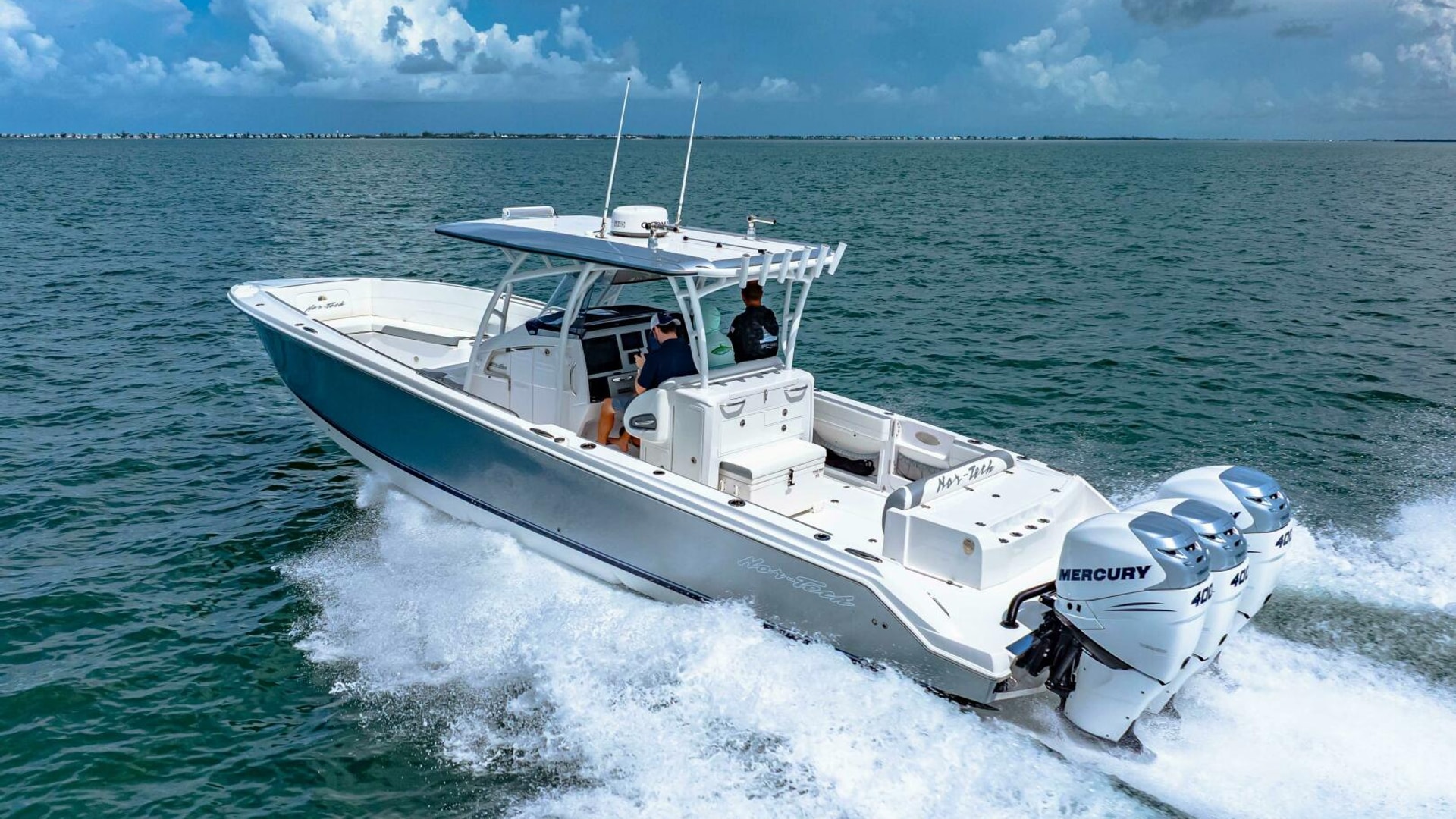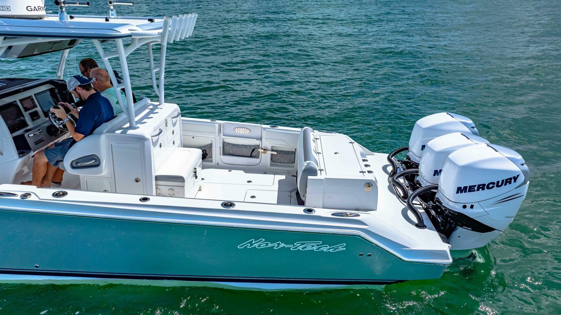 The 39 Nor-Tech offers the best of all worlds. 2021 390 Sport, Super Clean and Loaded for Fishing. Triple Mercury Racing 400 R's with only 164 Hours. 8616 Garmins, GSD 26 CHIRP Sonar, Auto Pilot, 18" Radar, VHF, Sirius XM, Tackle Center Helm Seat, Live well, Outrigger Mounts, Trolling Motor Mount, Electric Reel Outlets, 85 Gallon Additional Fuel Tank.