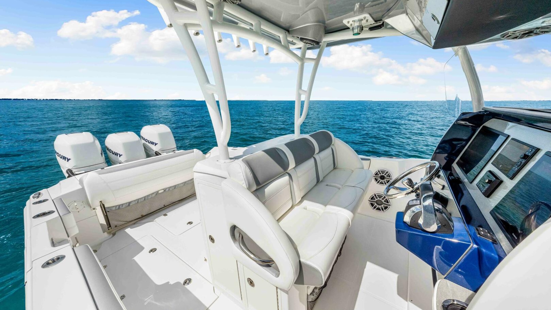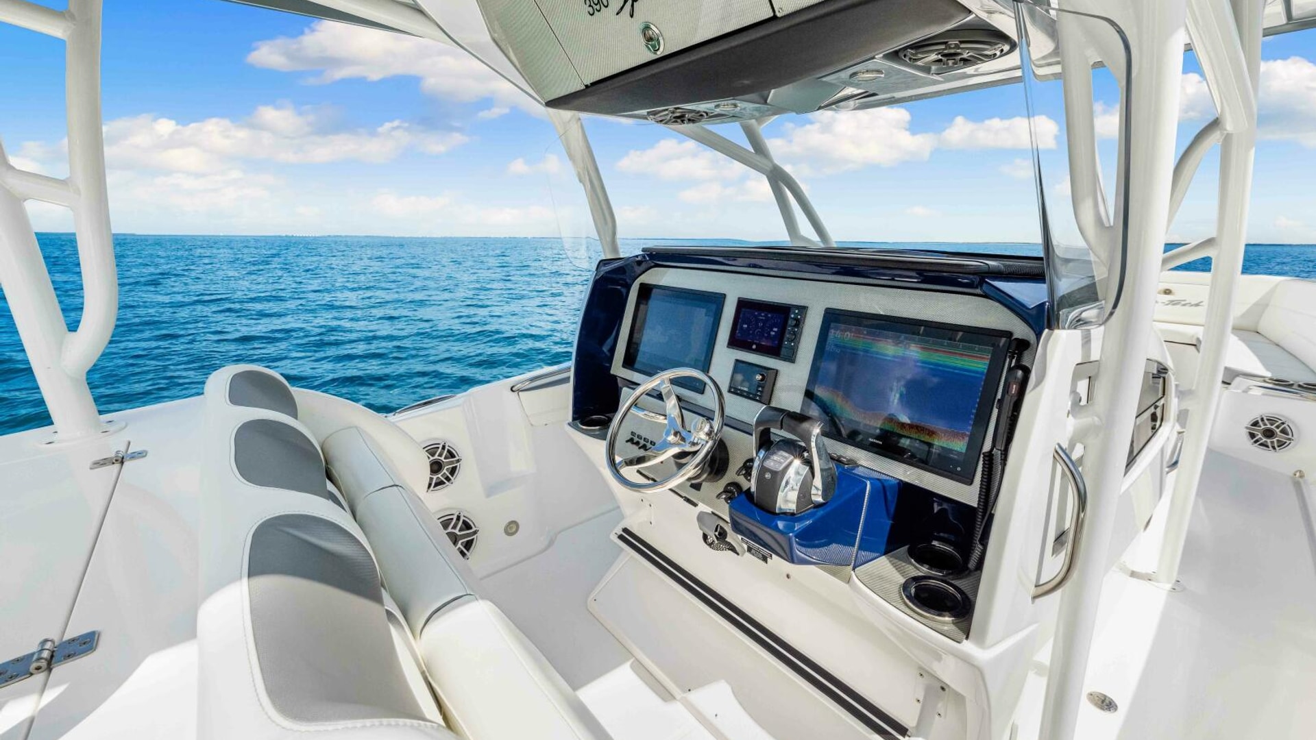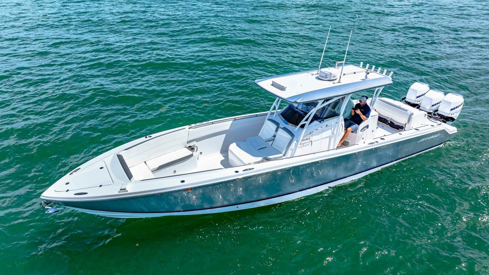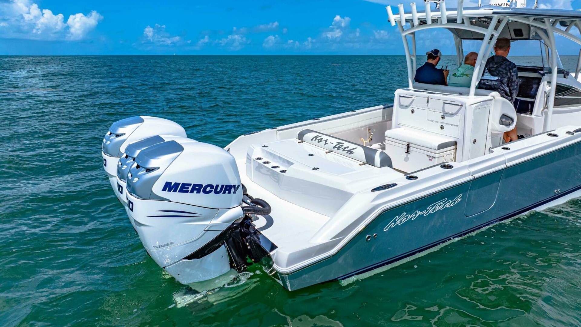 The 39 Nor-Tech offers the best of all worlds. 2021 390 Sport, Super Clean and Loaded for Fishing. Triple Mercury Racing 400 R's with only 164 Hours. 8616 Garmins, GSD 26 CHIRP Sonar, Auto Pilot, 18" Radar, VHF, Sirius XM, Tackle Center Helm Seat, Live well, Outrigger Mounts, Trolling Motor Mount, Electric Reel Outlets, 85 Gallon Additional Fuel Tank.