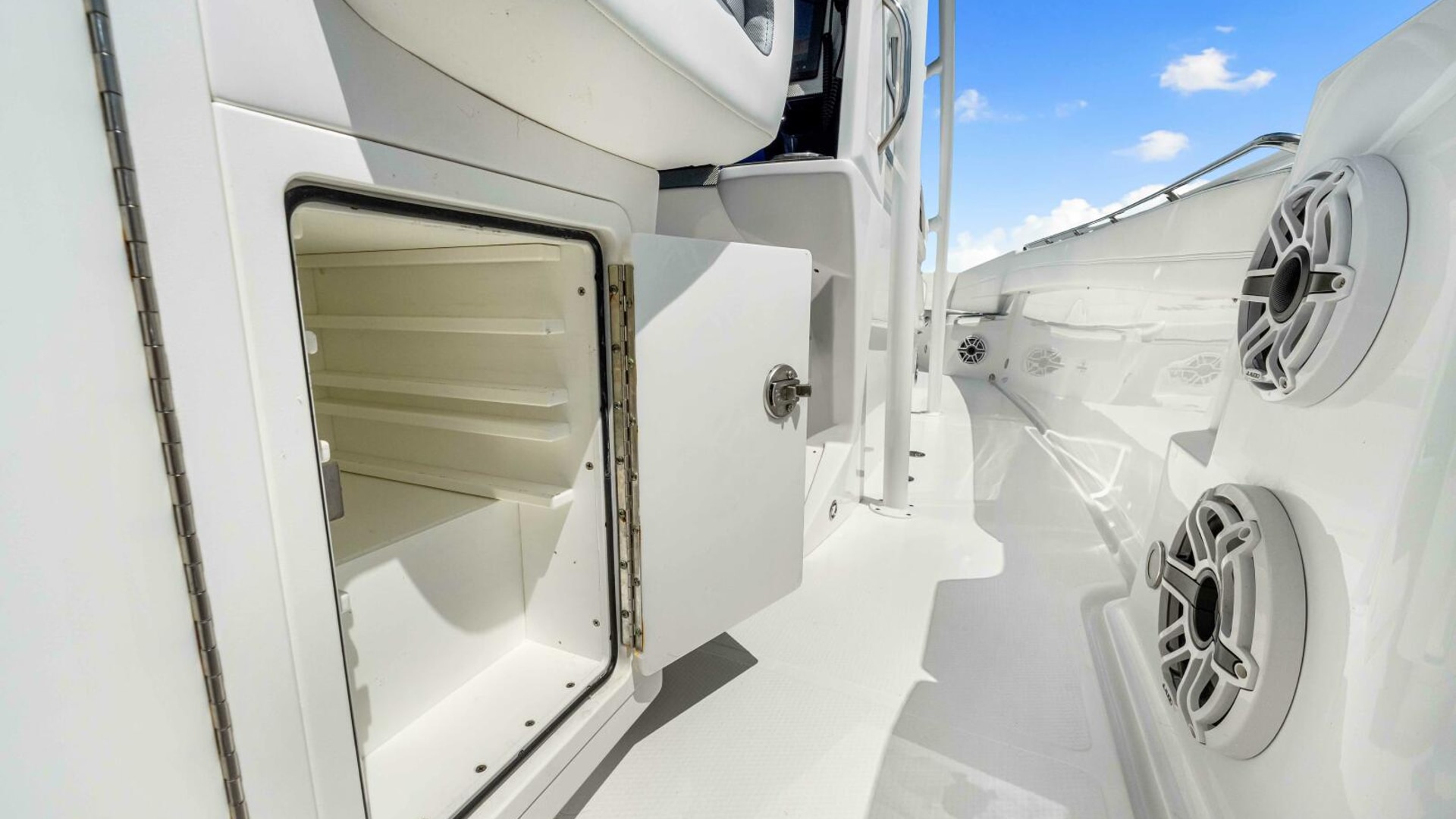 One owner boat where the pride of ownership is seen as soon as you walk out on the dock. The boat lives on a lift that has a full cover that protects the whole hull from the Florida Sun.
